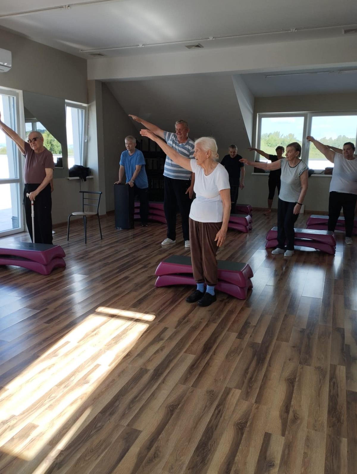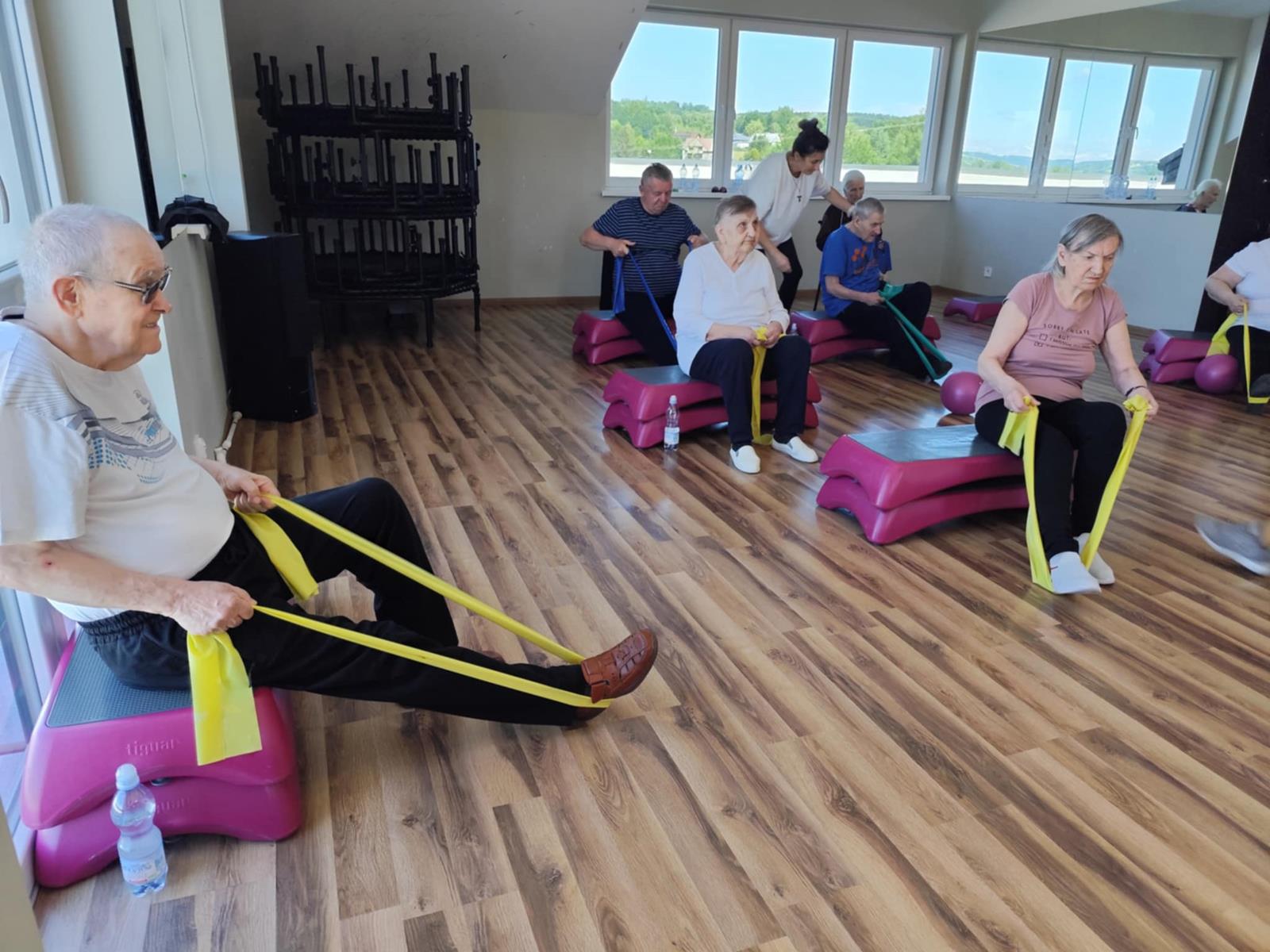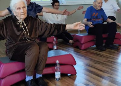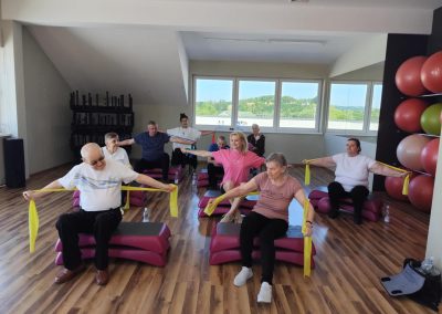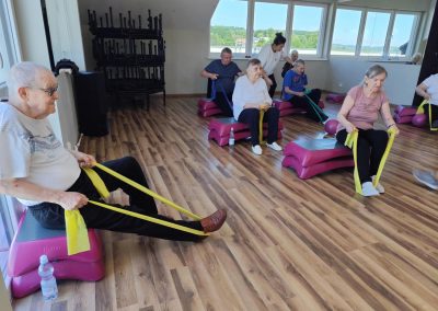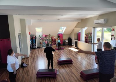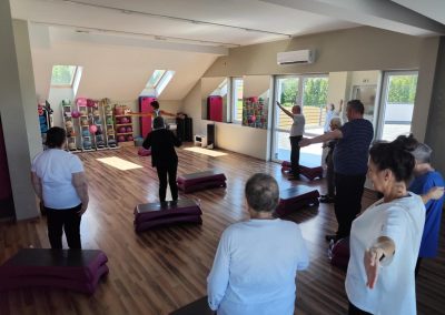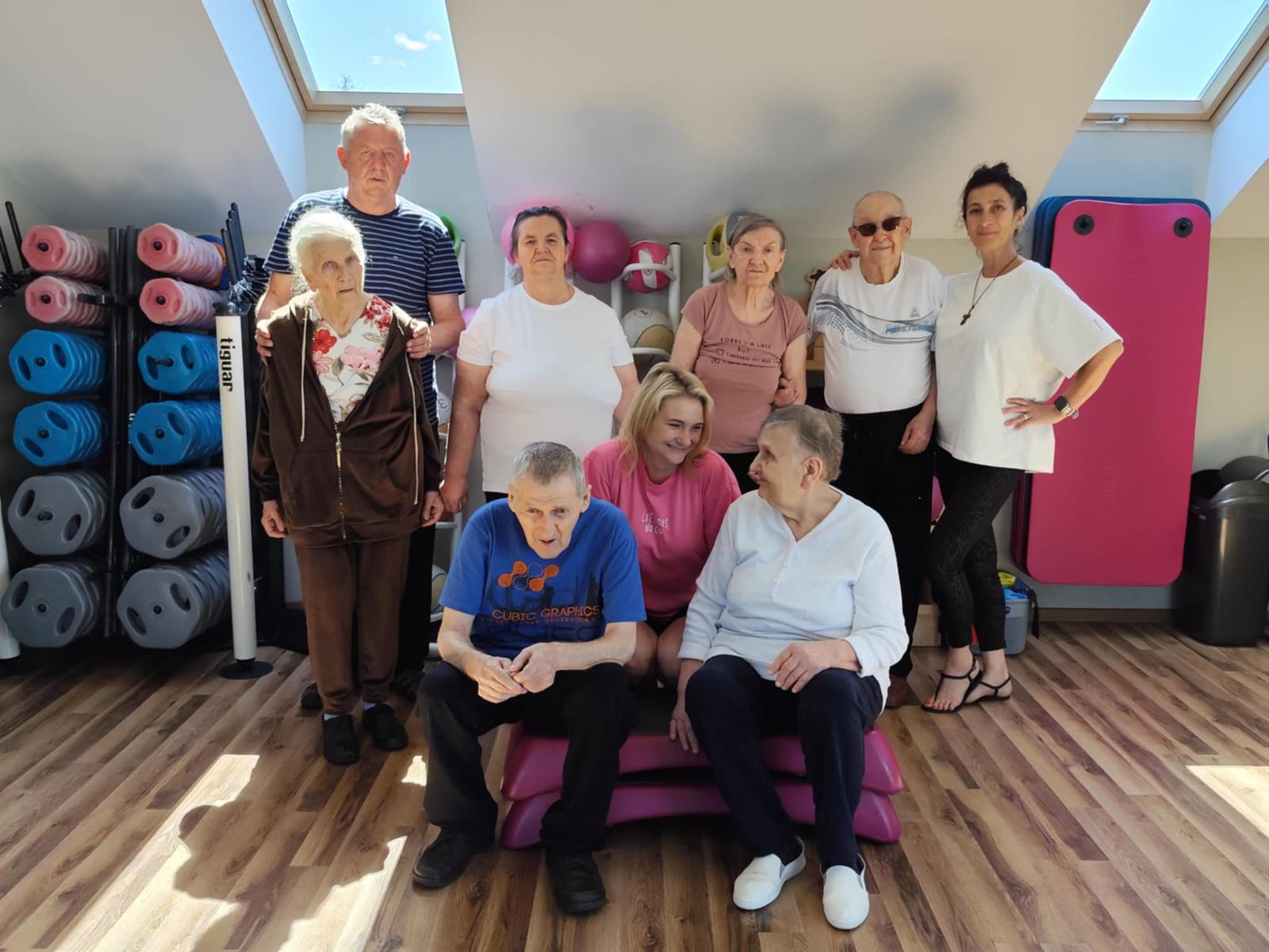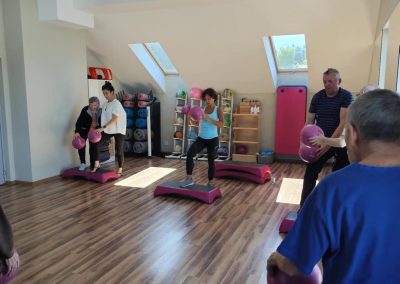 To już po raz drugi ( 23.07.2025 ) i trzeci ( 18.08.2025 ), grupa seniorów, w tym mieszkańcy DPJ udała się do Siłowni Pro Gym w Tuchowie. W drogę …po zdrowie wybrało się 7 kobiet i 5 mężczyzn. Sympatyczne powitanie Kamila Kawy ( właściciela siłowni) i trenerki Anety Raputy Słowik zapowiadało świetną atmosferę godzinnych zajęć. Z każdym wyjściem do Pro Gym seniorzy zadziwiają większą energią i zapałem, nawet sami…skracają sobie pauzy na picie wody. Na uwagę zasługuje umiejętność bezpośredniego, a zarazem profesjonalnego kontraktu trenerki z uczestnikami ćwiczeń. Karnety miesięczne wykupione w ramach realizacji Zadania Publicznego „Aktywni w Złotym Wieku” przewidują jeszcze jeden taki wyjazd.