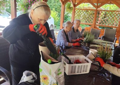 Praca z roślinami dostarczyła wielu pozytywnych emocji, sprzyjała relaksowi oraz rozwijała zdolności manualne. Wspólne działanie stało się także okazją do integracji i radości z tworzenia czegoś pięknego.