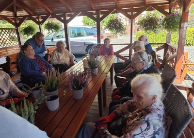 W środę, 20.08.br. mieszkańcy naszego Domu wzięli udział w zajęciach hortiterapii, prowadzonej przez terapeutkę zajęciową Paulinę i stażystkę Martę.
