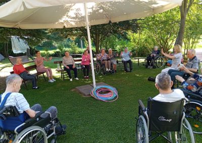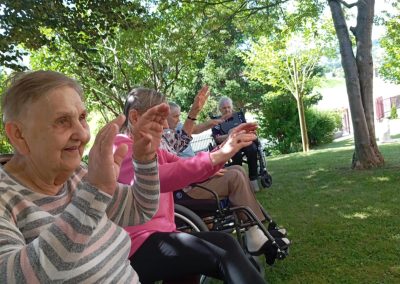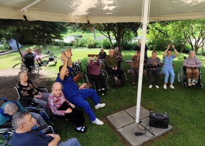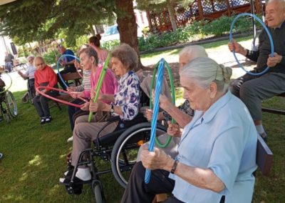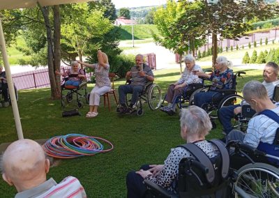 Przedpołudniowy relaks rozpoczynał się od zajęć gimnastycznych na świeżym powietrzu ( jeśli pogoda na to pozwalała) lub na sali rehabilitacji. Ćwiczenia ruchowe nie tylko poprawiają sprawność fizyczną, ale również są doskonałą okazją do integracji i wspólnego spędzenia czasu w atmosferze pełnej śmiechu i wsparcia.