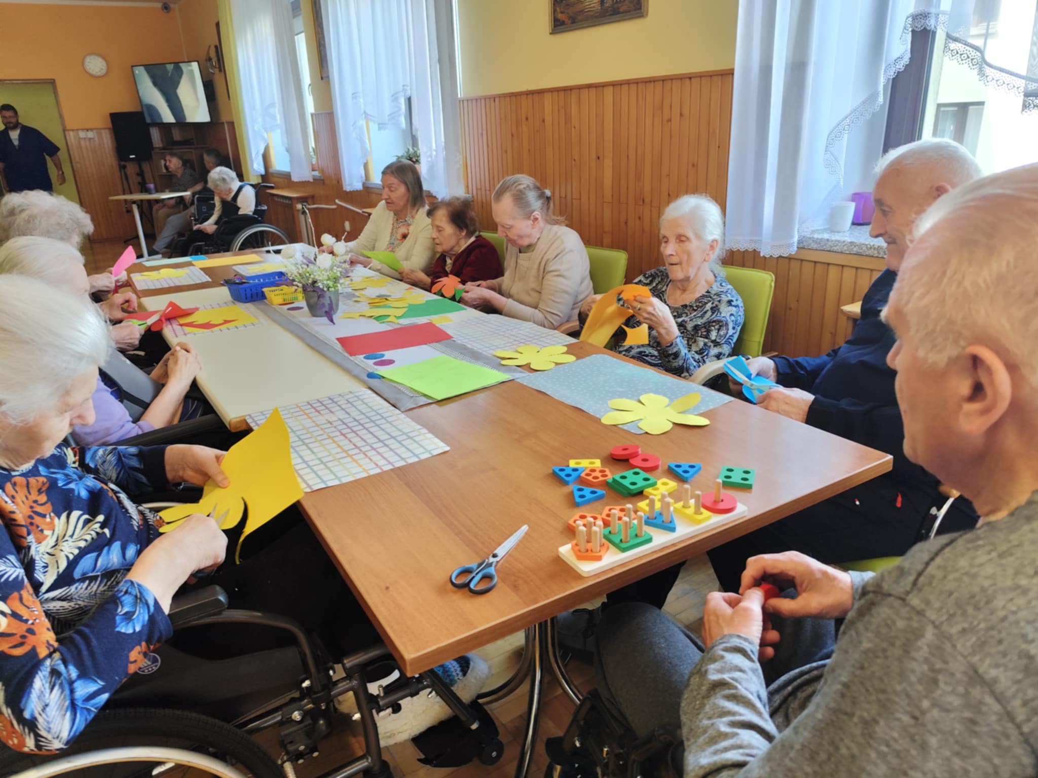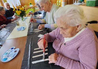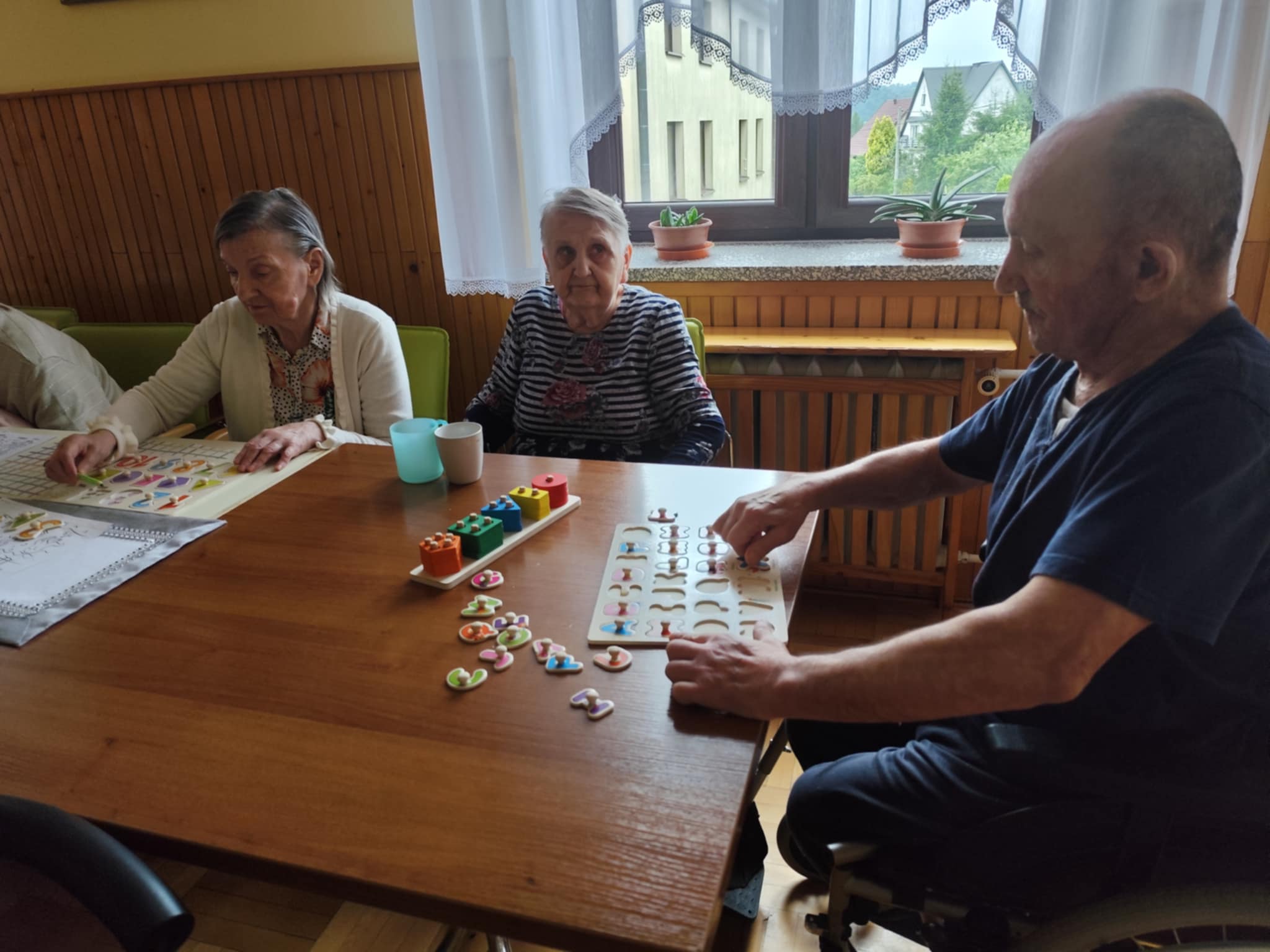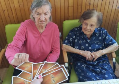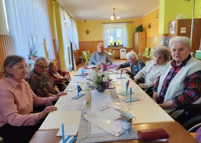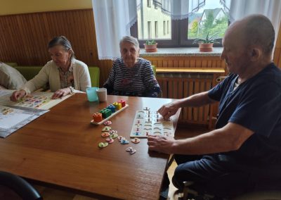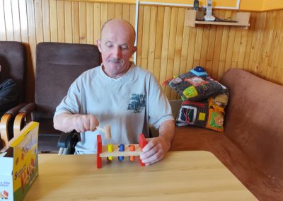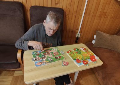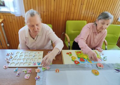 W ciągu dnia mieszkańcy chętnie brali udział w różnego rodzaju zajęciach terapii – spotykali się przy różnego typu grach – szachach, warcabach, grach planszowych; rozwiązywali krzyżówki, układali drewniane puzzle, śpiewali, słuchali muzyki… itp.; wszystkie wyżej wymienione formy zajęć rozwijają pamięć i sprzyjają budowaniu więzi międzyludzkich. Nie brakowało również zajęć artystycznych, podczas których uczestnicy mogli dać upust swojej kreatywności, tworząc piękne prace plastyczne, rękodzieło czy dekoracje sezonowe.