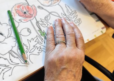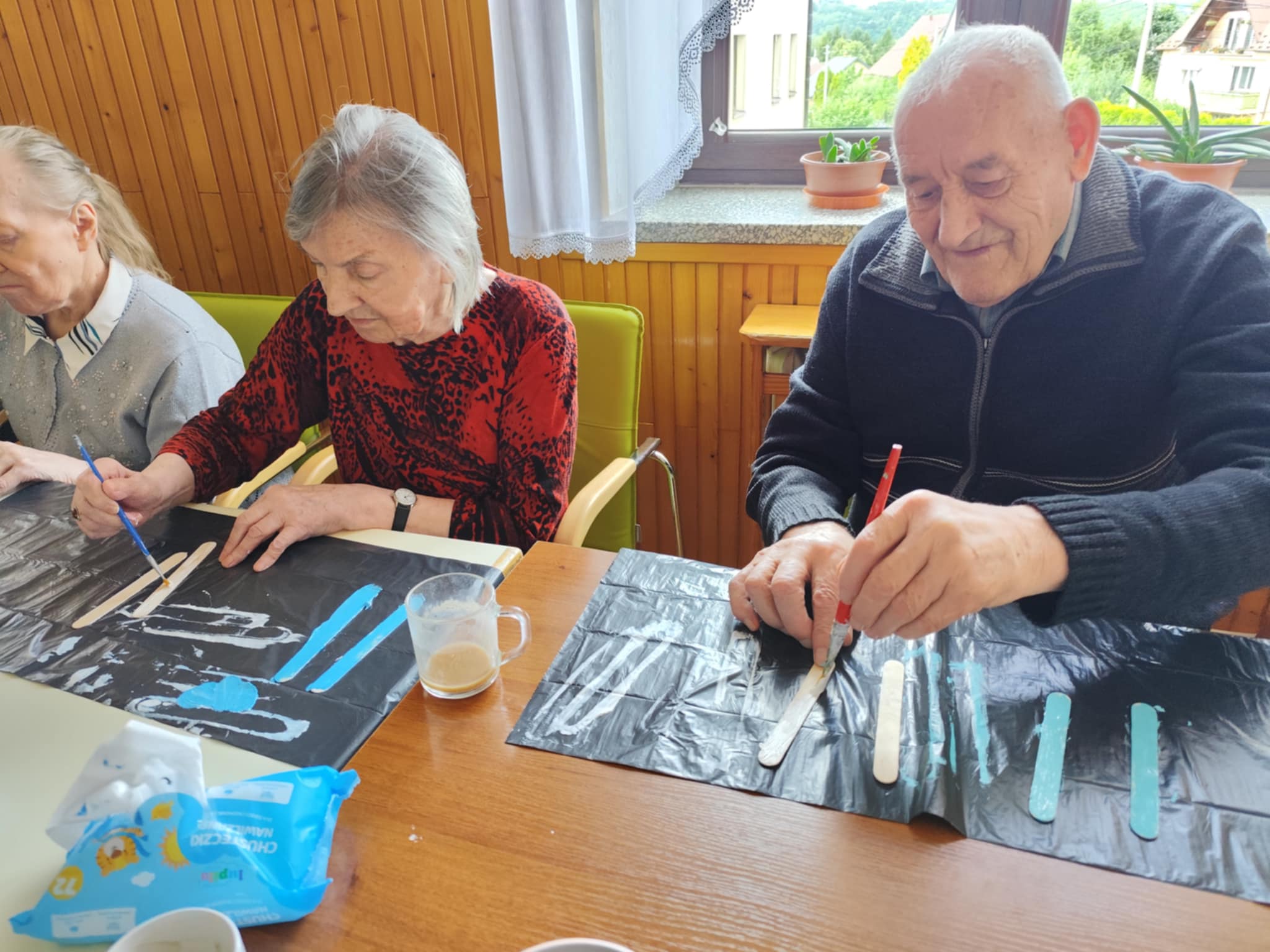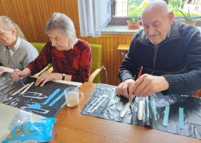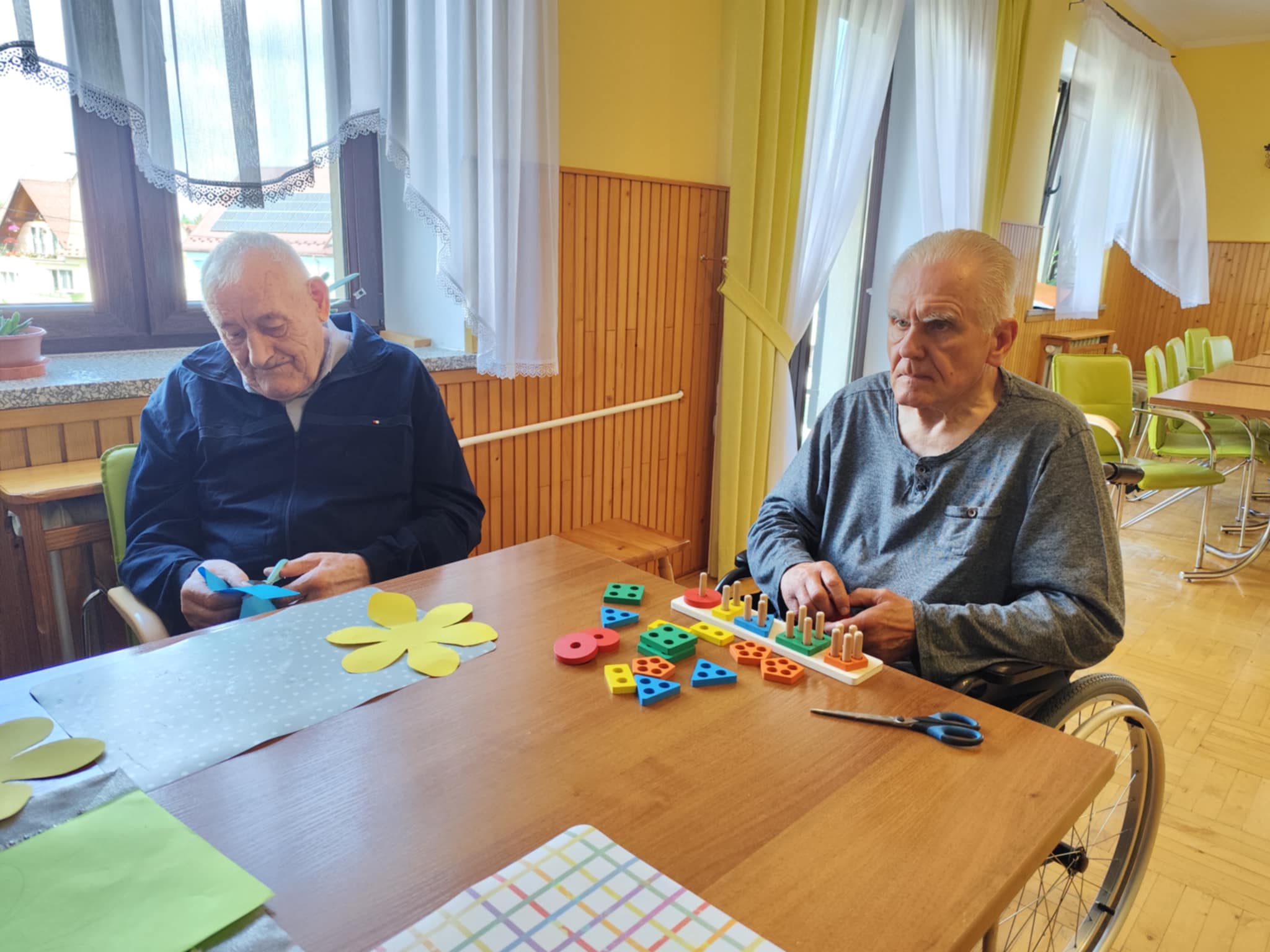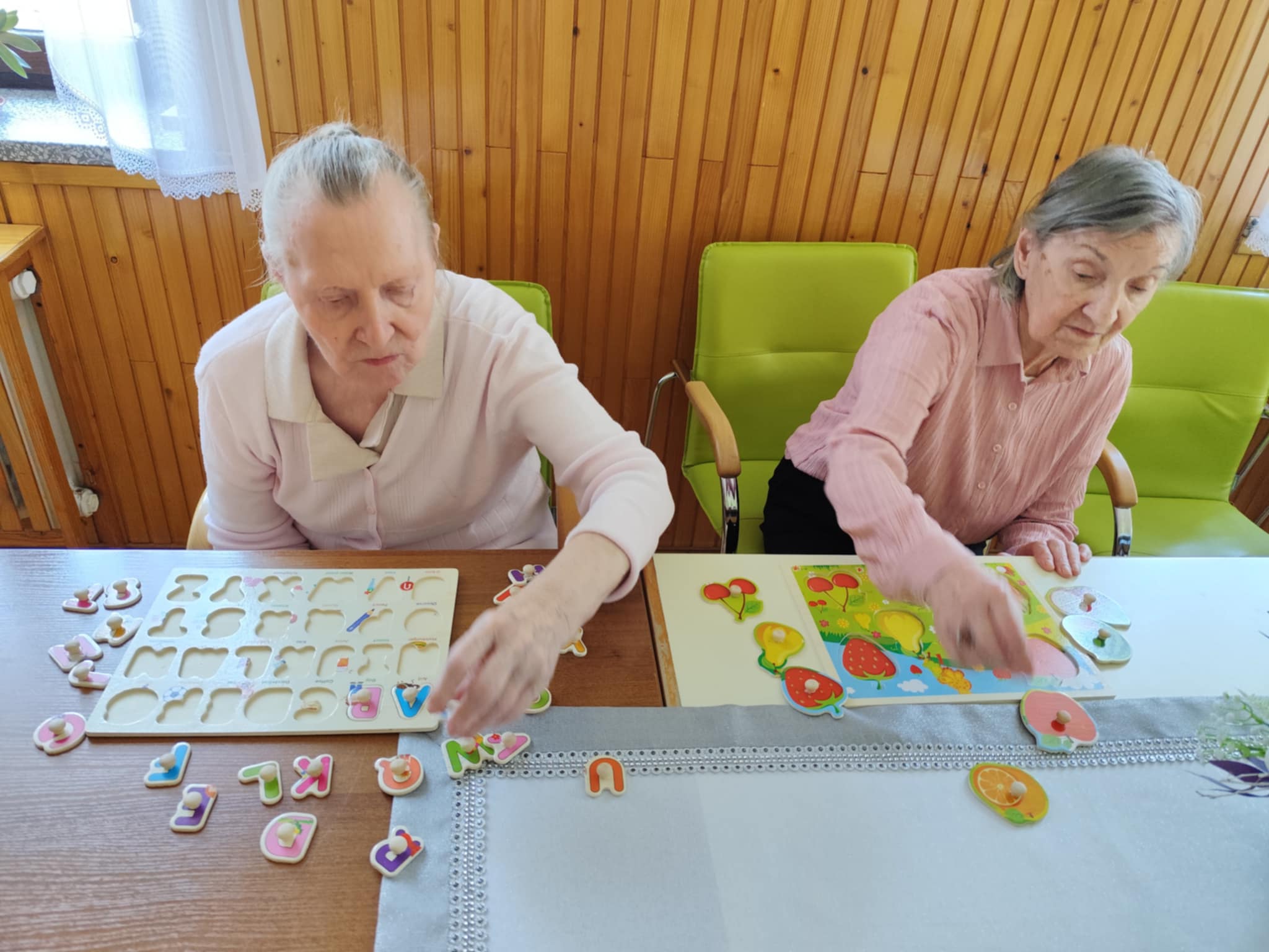 W ciągu dnia mieszkańcy chętnie brali udział w różnego rodzaju zajęciach terapii – spotykali się przy różnego typu grach – szachach, warcabach, grach planszowych; rozwiązywali krzyżówki, układali drewniane puzzle, śpiewali, słuchali muzyki… itp.; wszystkie wyżej wymienione formy zajęć rozwijają pamięć i sprzyjają budowaniu więzi międzyludzkich. Nie brakowało również zajęć artystycznych, podczas których uczestnicy mogli dać upust swojej kreatywności, tworząc piękne prace plastyczne, rękodzieło czy dekoracje sezonowe.
