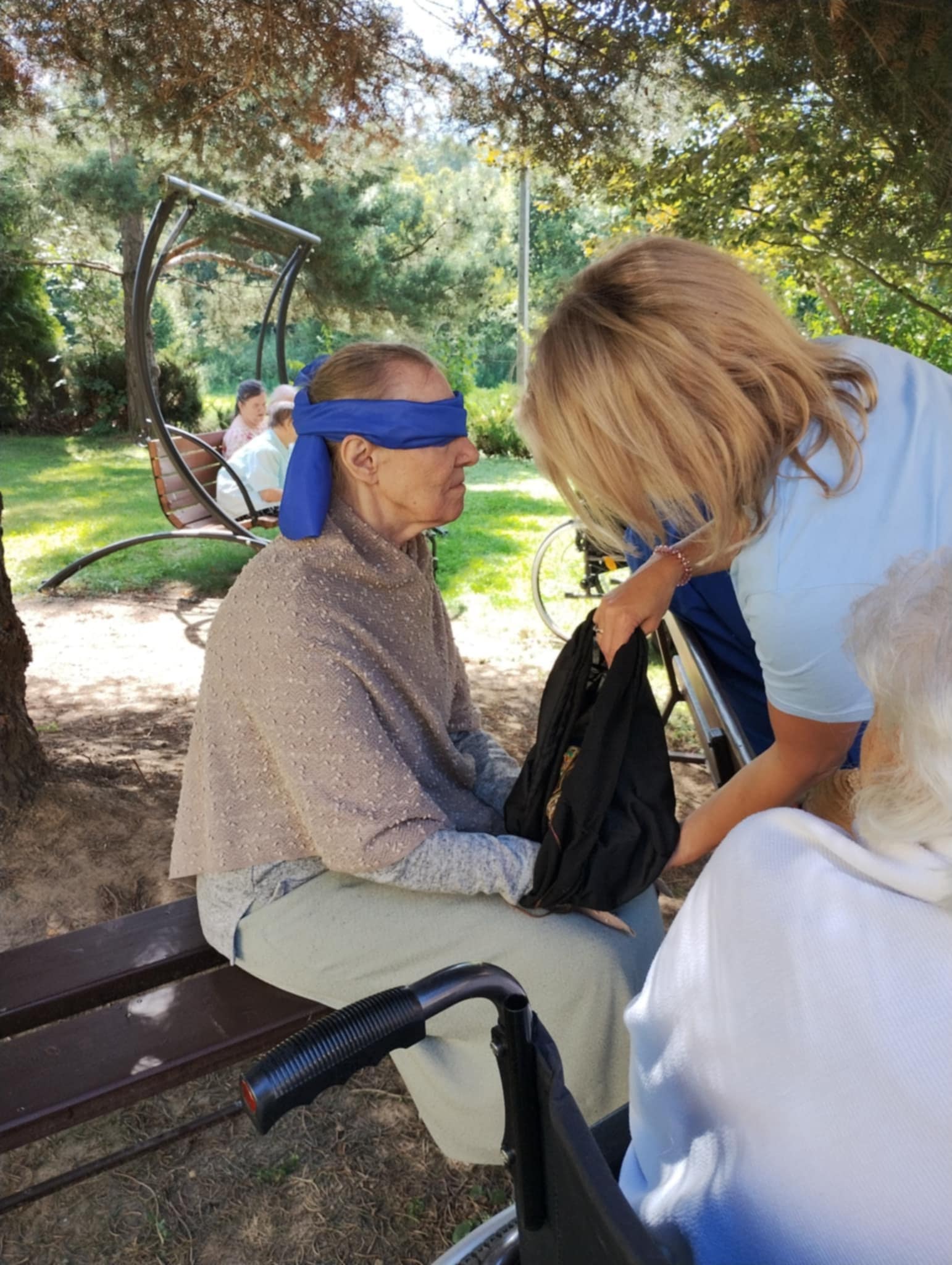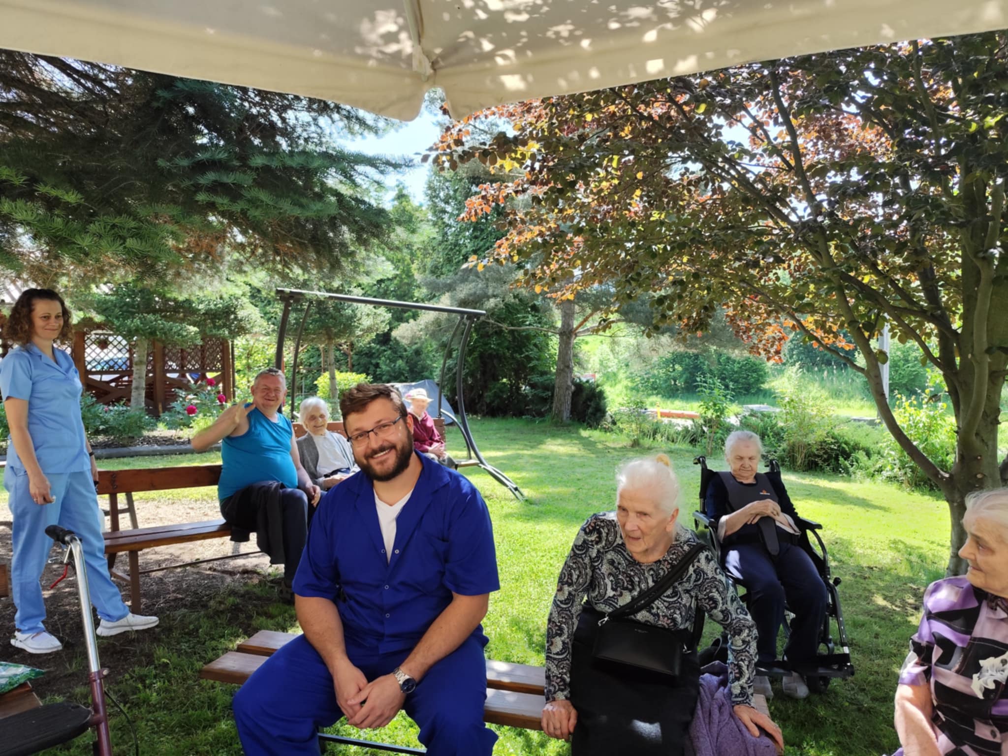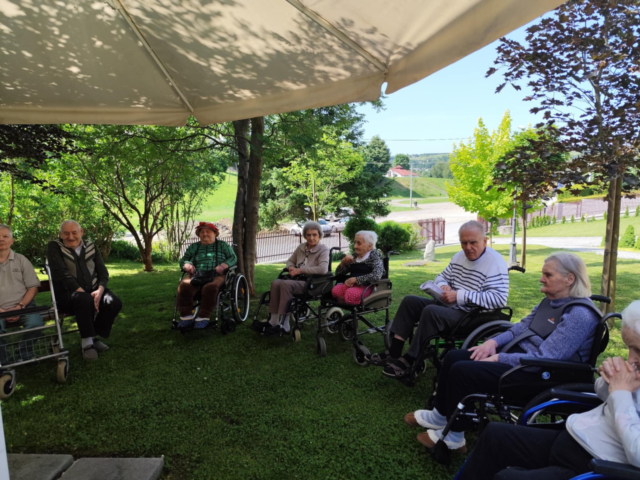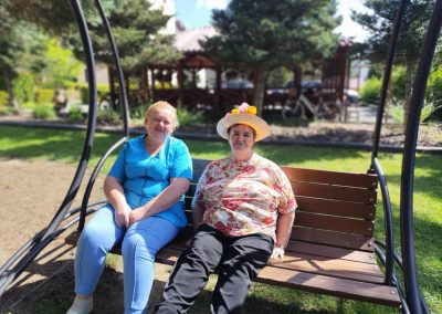 Ciepłe dni sprzyjały również spacerom po ogrodzie a zacienione ławki zachęcały do odpoczynku z książką w ręku. Lektura ulubionych powieści czy wspólne czytanie prasy to dla wielu mieszkańców ulubiona forma relaksu.
