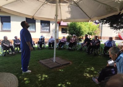 Chociaż wakacje już za nami…nie zwalniamy tempa, póki jeszcze pogoda pozwoli nadal będzie można nas zobaczyć i usłyszeć w pięknym ogrodzie na terenu Domu Pogodnej Jesieni.