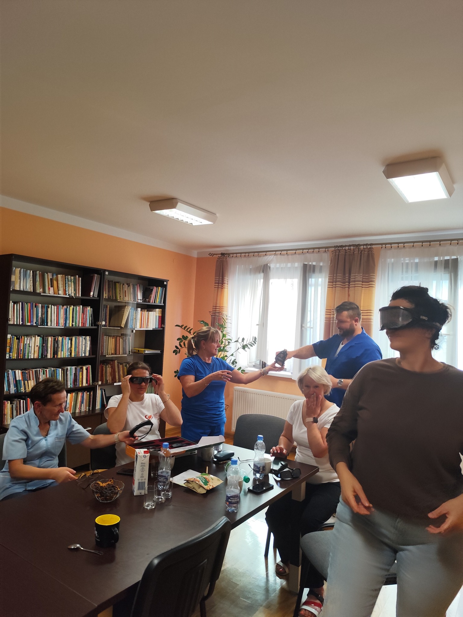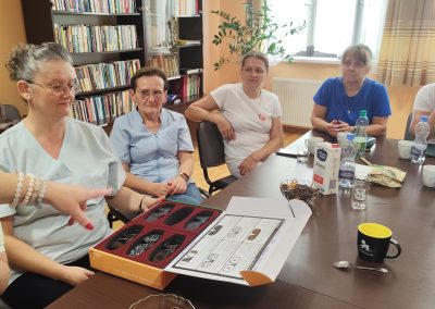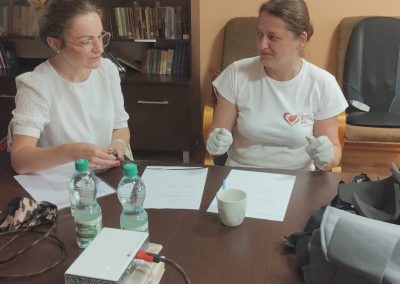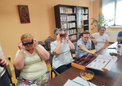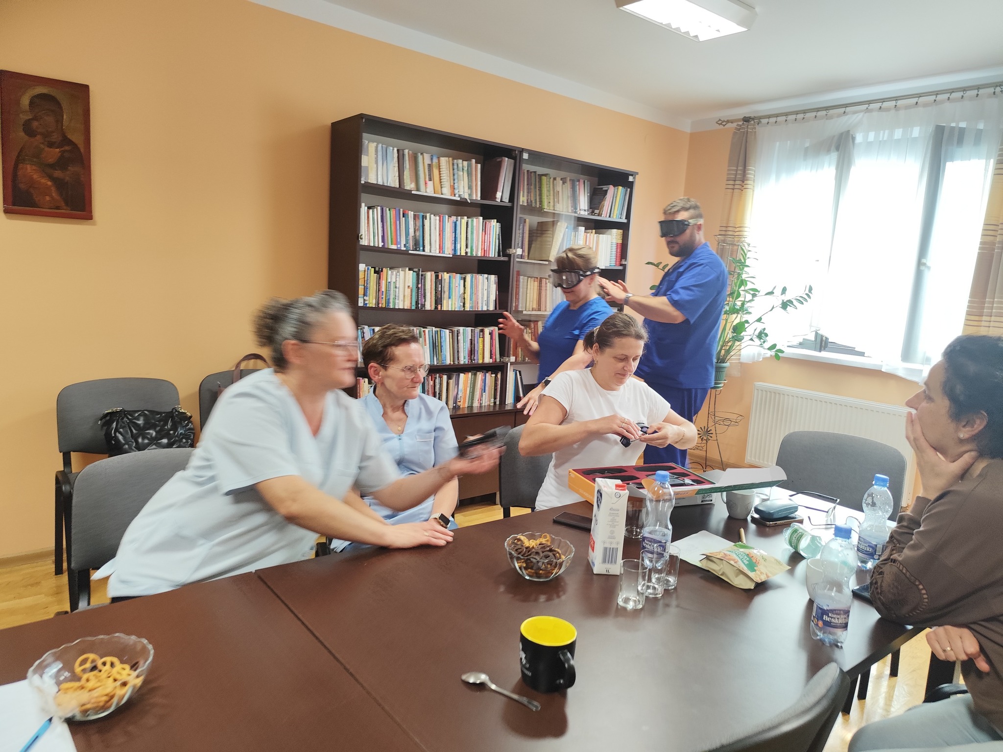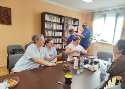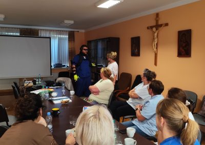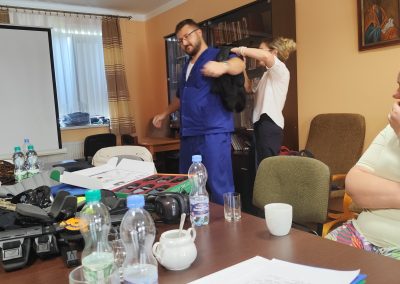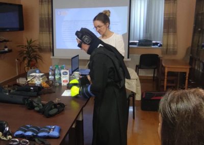 Szkolenie miało dwa moduły: pierwszy teoretyczny – w jego skład wchodziła między innymi definicja starości, charakterystyka tego okresu, miejsce starzejącego się człowieka w systemie rodzinnym i instytucjonalnym . Drugi moduł: praktyczny – polegał na warsztatach z użyciem symulatora starości. Uczestnicy mogli poczuć na własnej skórze co czuje człowiek z chorobą Parkinsona, z różnymi chorobami wzroku i innymi obciążeniami fizycznymi między innymi takimi jak ograniczenia ruchomości stawów. Wszyscy zgodnie stwierdzili, że szkolenie było bardzo pouczające a największe wrażenie zrobiły rękawiczki, w których można było poczuć to, co czuje człowiek z chorobą Parkinsona…. drżenie, ból i niemoc.