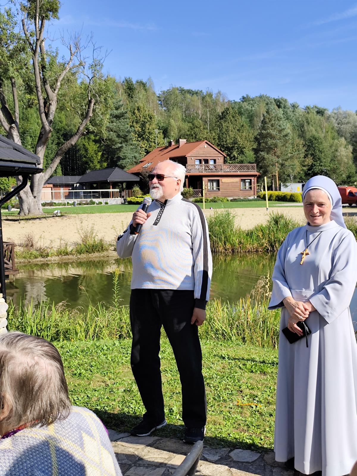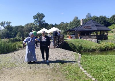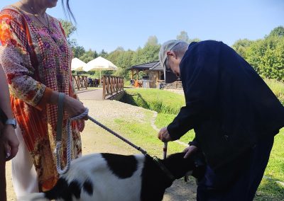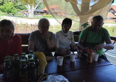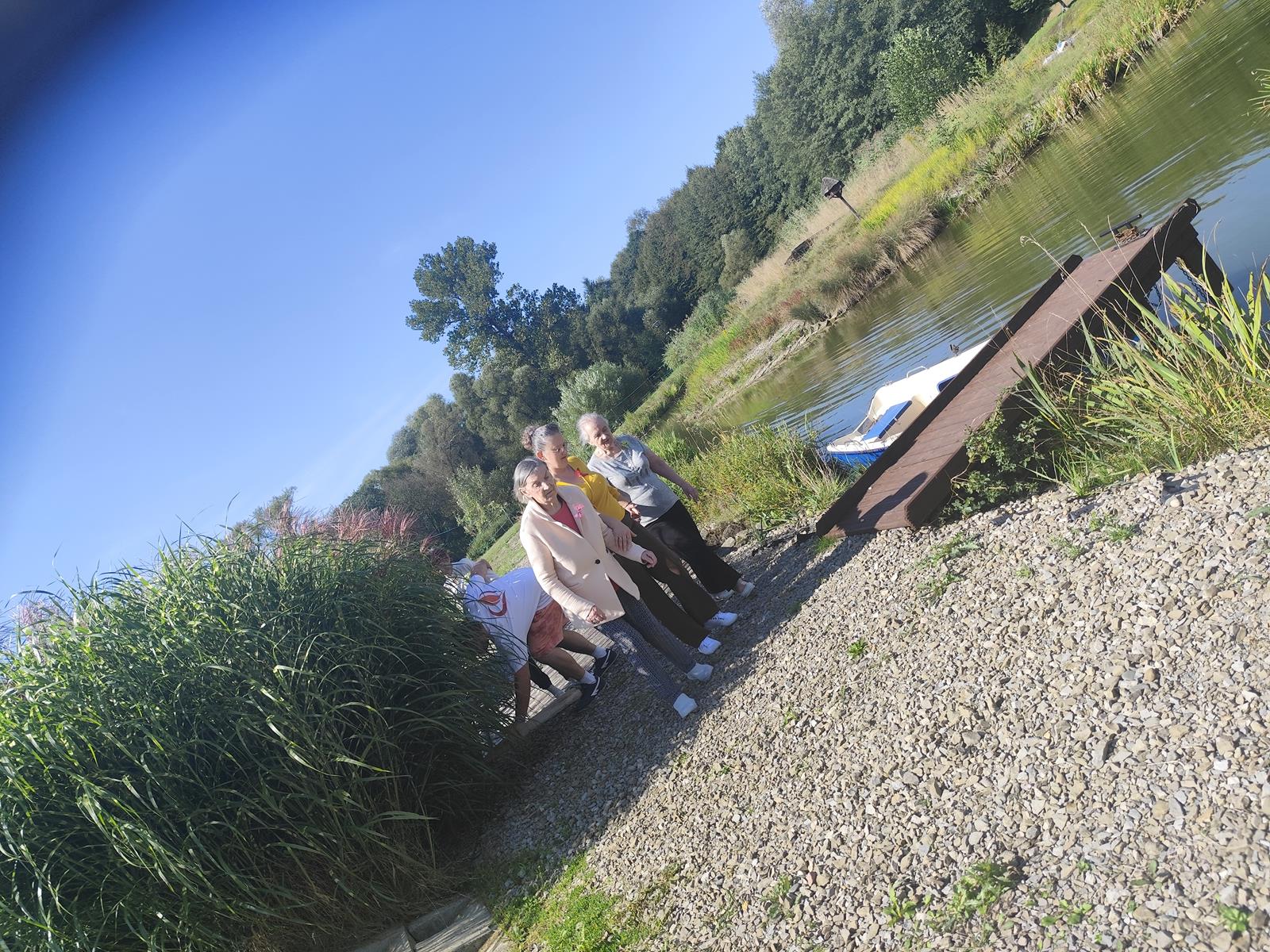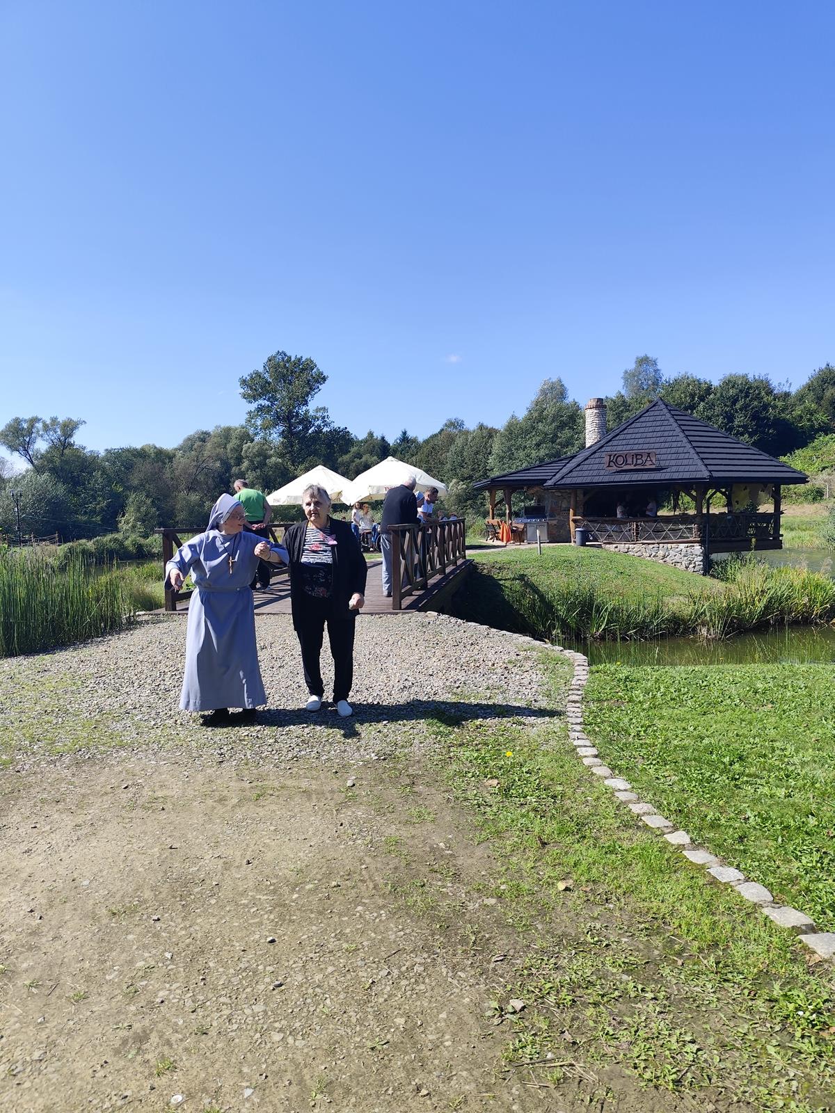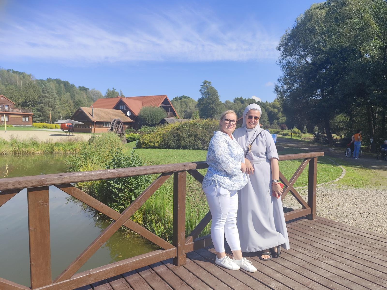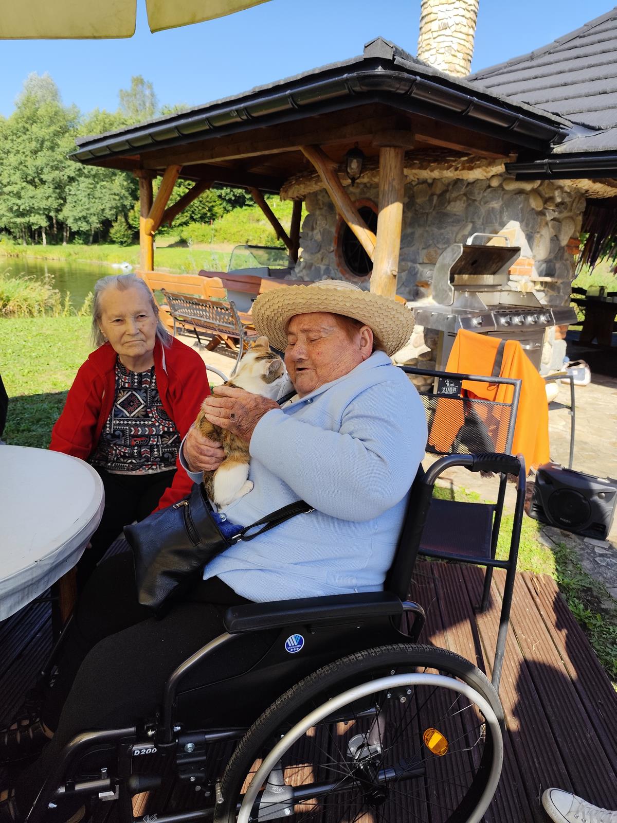 Słoneczna pogoda, piękna sceneria przyrody sprzyjała relaksowi i wspólnemu spędzaniu czasu. Mieszkańcy mogli podziwiać otaczającą zieleń oraz zalew, po którym można było popływać na rowerku wodnym – z tej atrakcji skorzystały najodważniejsze – s. Alfonsa – pracownik socjalny  oraz dwie Renaty (opiekunki). Urok miejsca dopełniały zwierzęta: konie, kozy, które z ciekawością podchodziły do uczestników, sprawiając im wiele radości, króliki, świnki morskie oraz kotki.