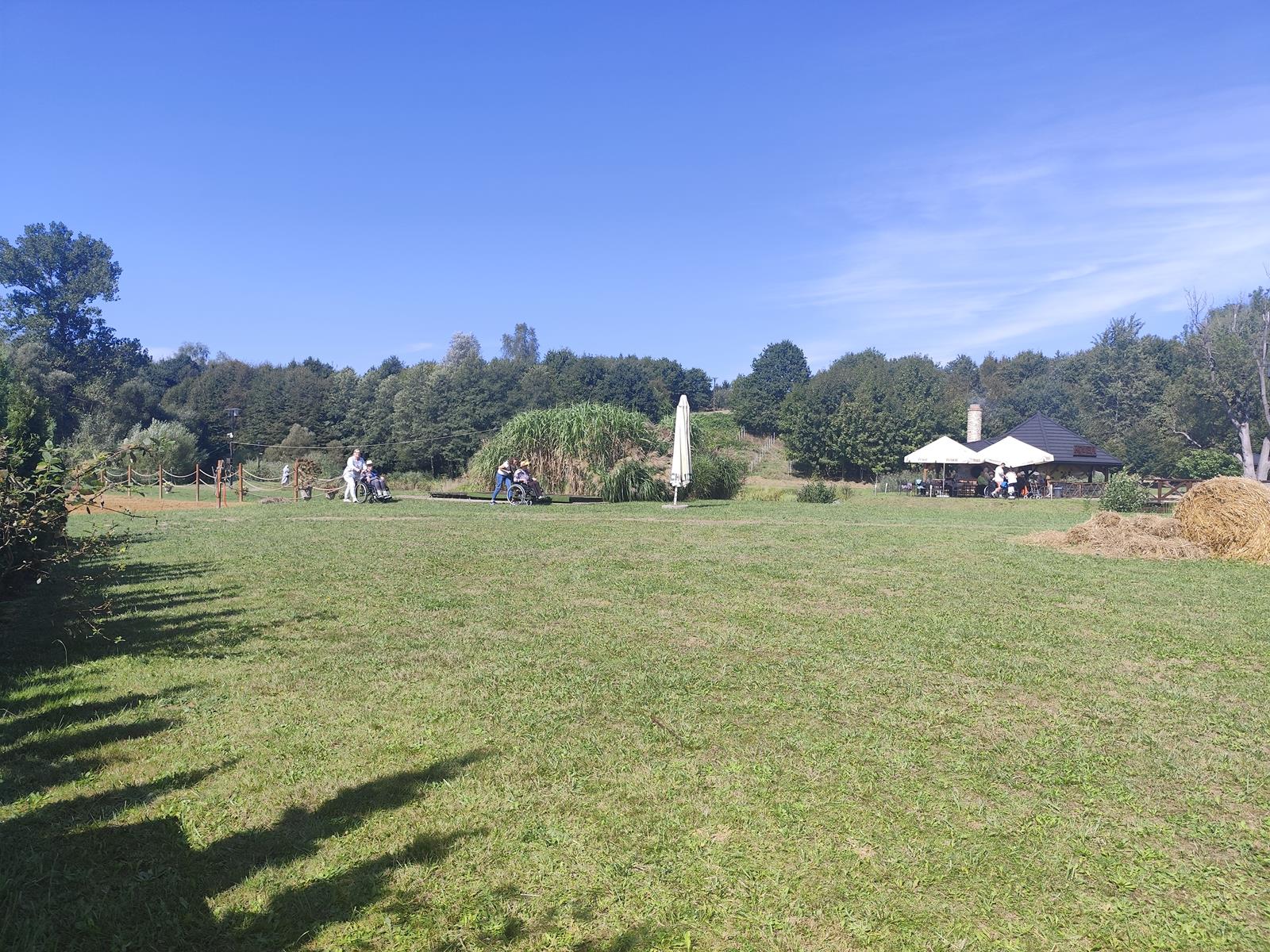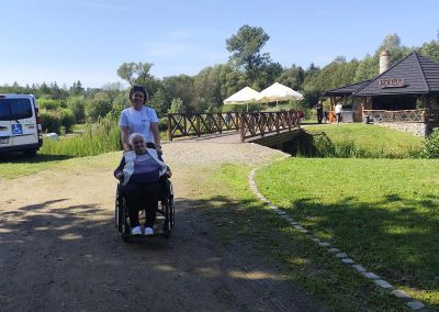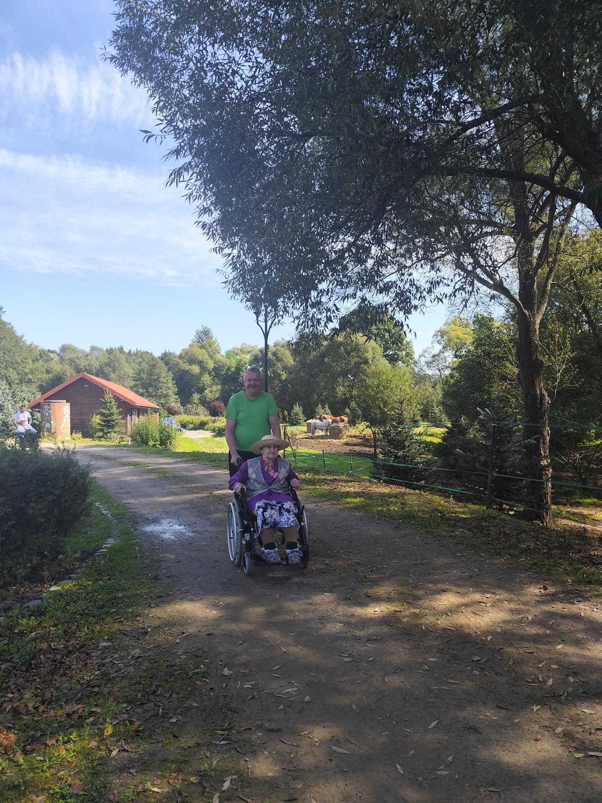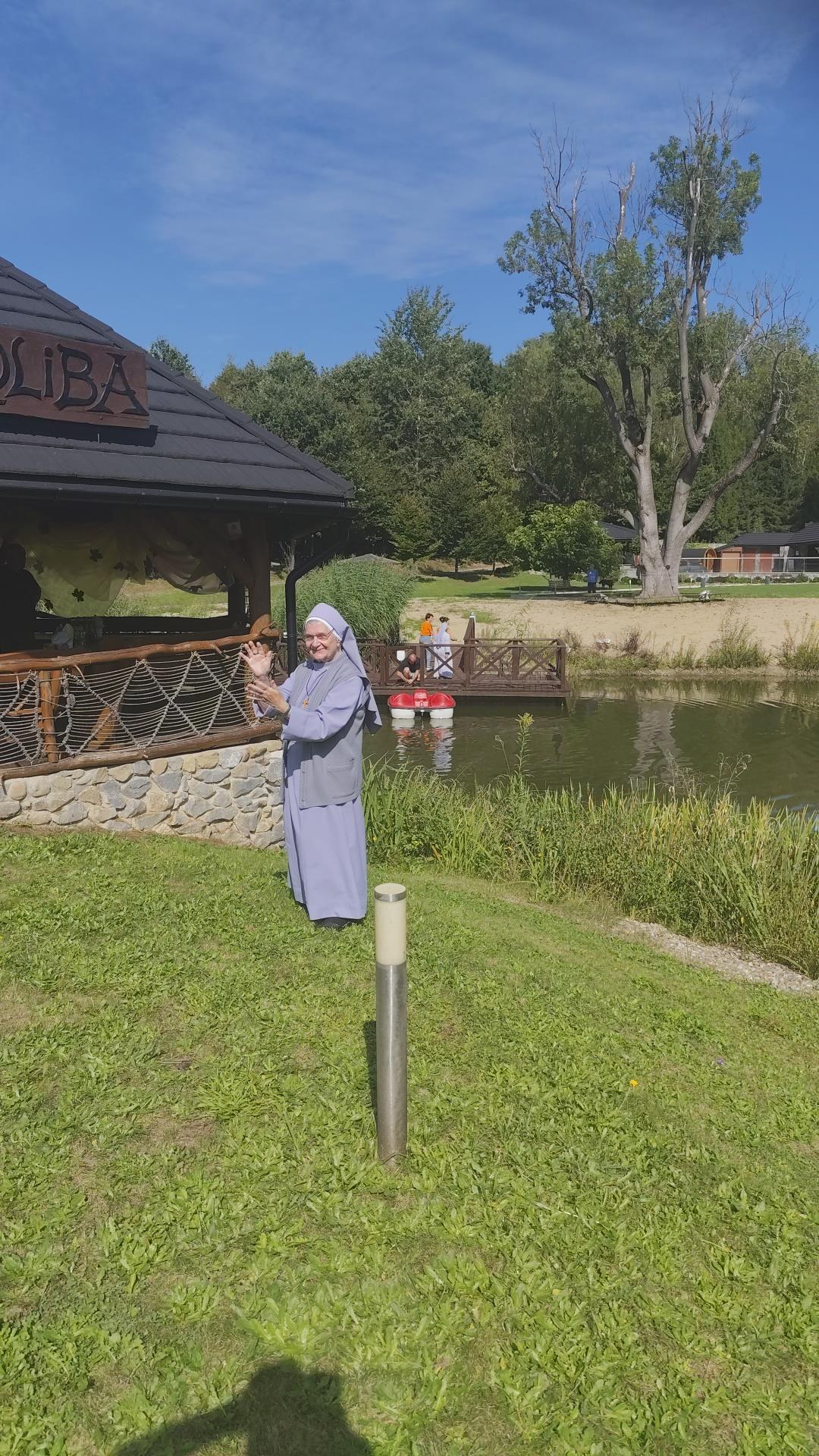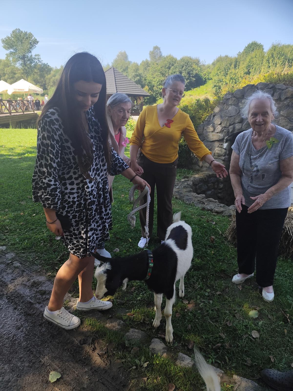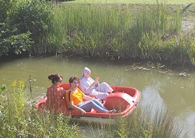Słoneczna pogoda, piękna sceneria przyrody sprzyjała relaksowi i wspólnemu spędzaniu czasu. Mieszkańcy mogli podziwiać otaczającą zieleń oraz zalew, po którym można było popływać na rowerku wodnym – z tej atrakcji skorzystały najodważniejsze – s. Alfonsa – pracownik socjalny  oraz dwie Renaty (opiekunki). Urok miejsca dopełniały zwierzęta: konie, kozy, które z ciekawością podchodziły do uczestników, sprawiając im wiele radości, króliki, świnki morskie oraz kotki.