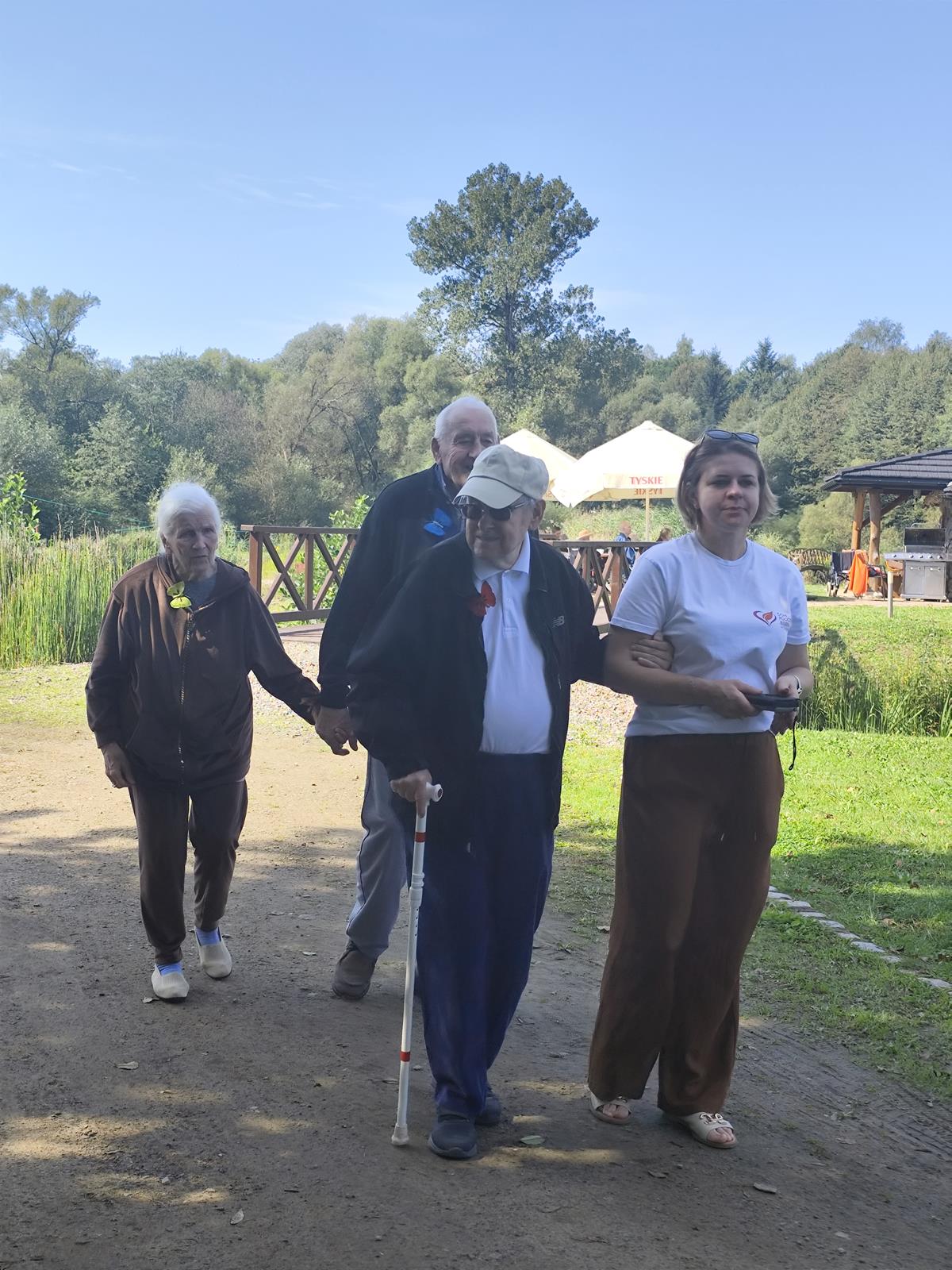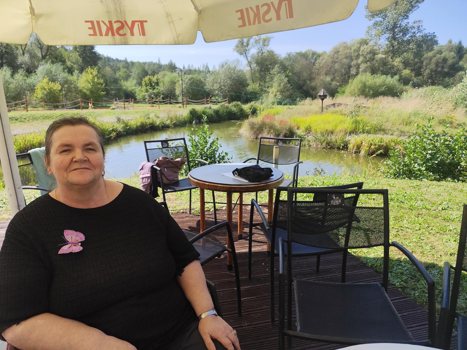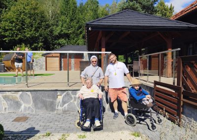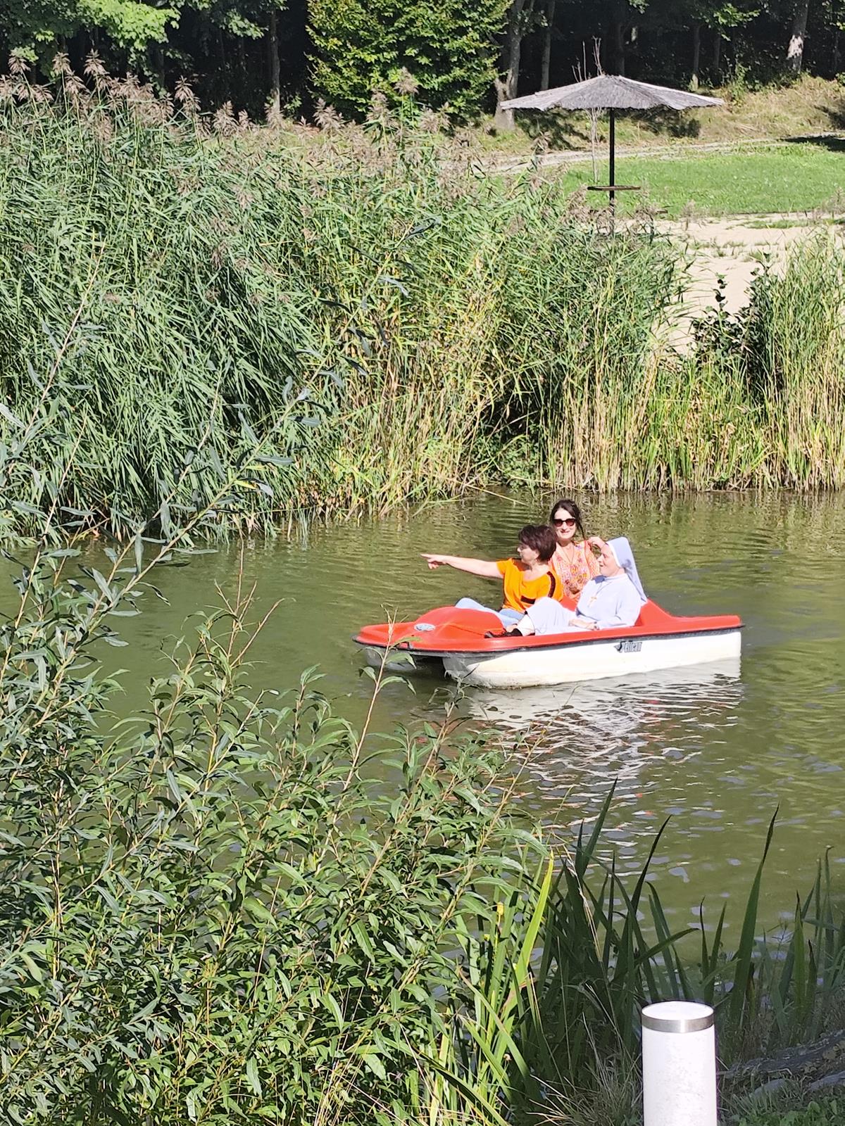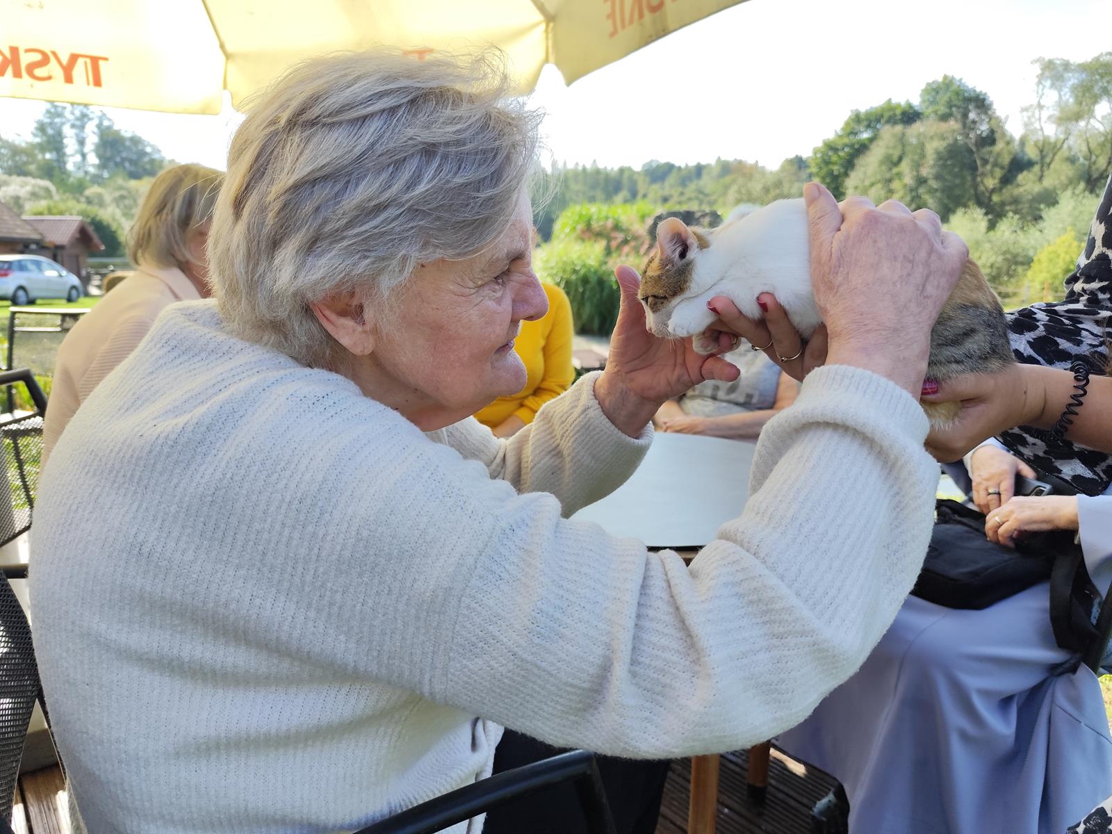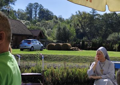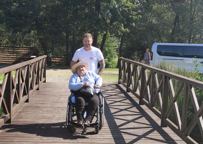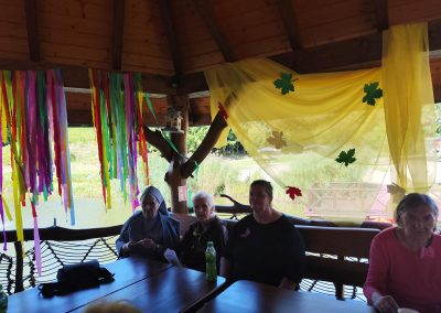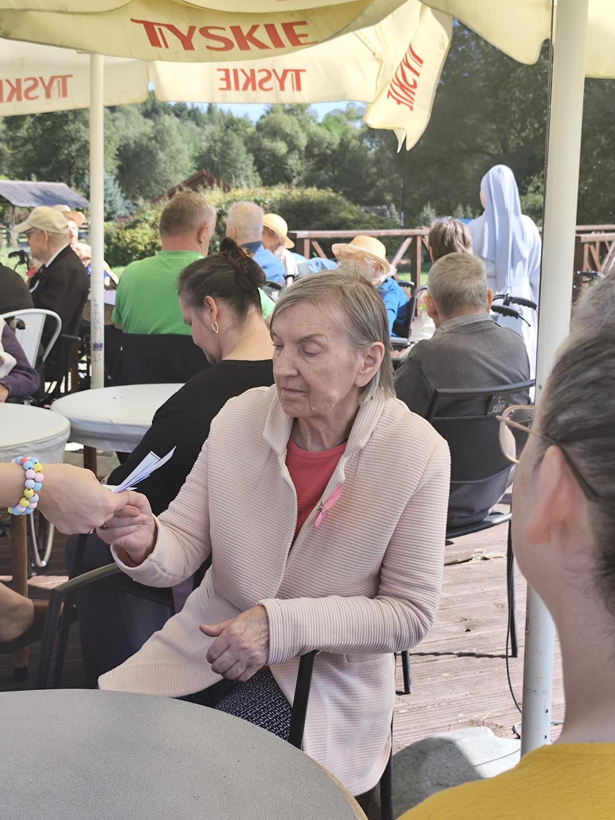 Słoneczna pogoda, piękna sceneria przyrody sprzyjała relaksowi i wspólnemu spędzaniu czasu. Mieszkańcy mogli podziwiać otaczającą zieleń oraz zalew, po którym można było popływać na rowerku wodnym – z tej atrakcji skorzystały najodważniejsze – s. Alfonsa – pracownik socjalny  oraz dwie Renaty (opiekunki). Urok miejsca dopełniały zwierzęta: konie, kozy, które z ciekawością podchodziły do uczestników, sprawiając im wiele radości, króliki, świnki morskie oraz kotki.