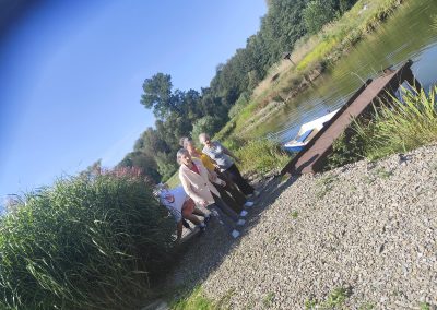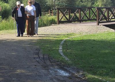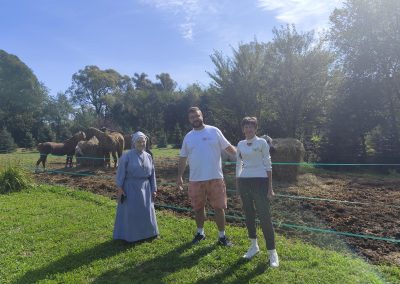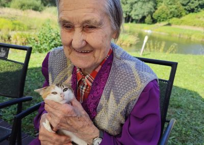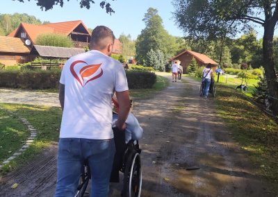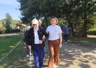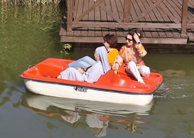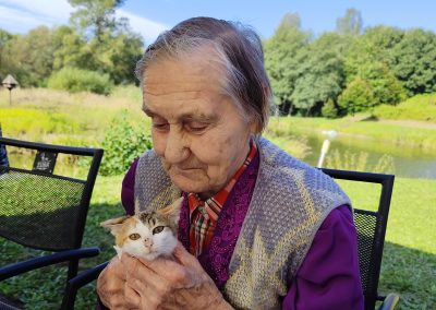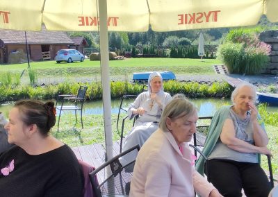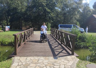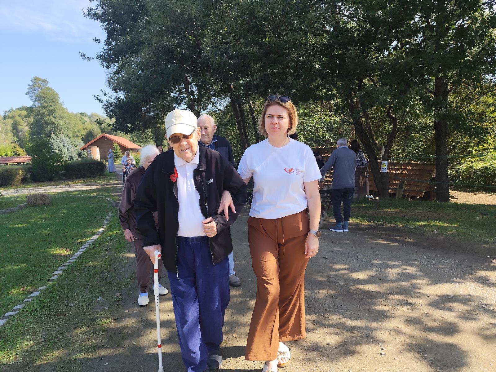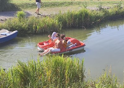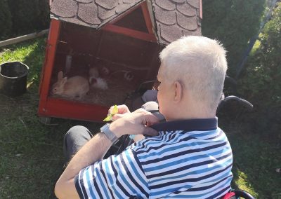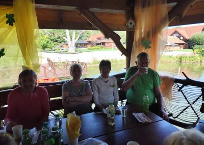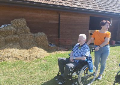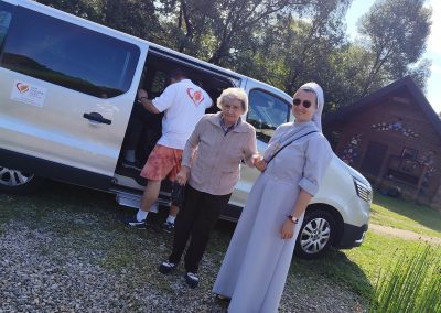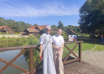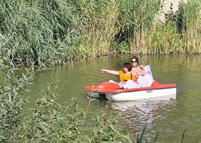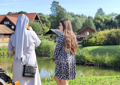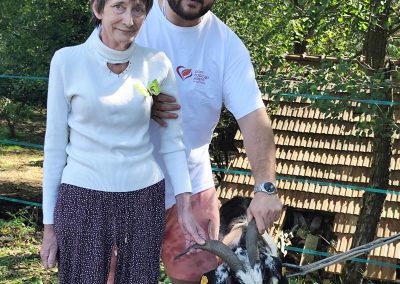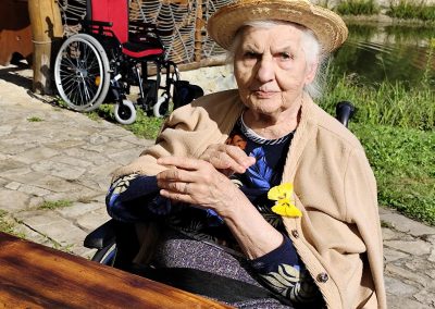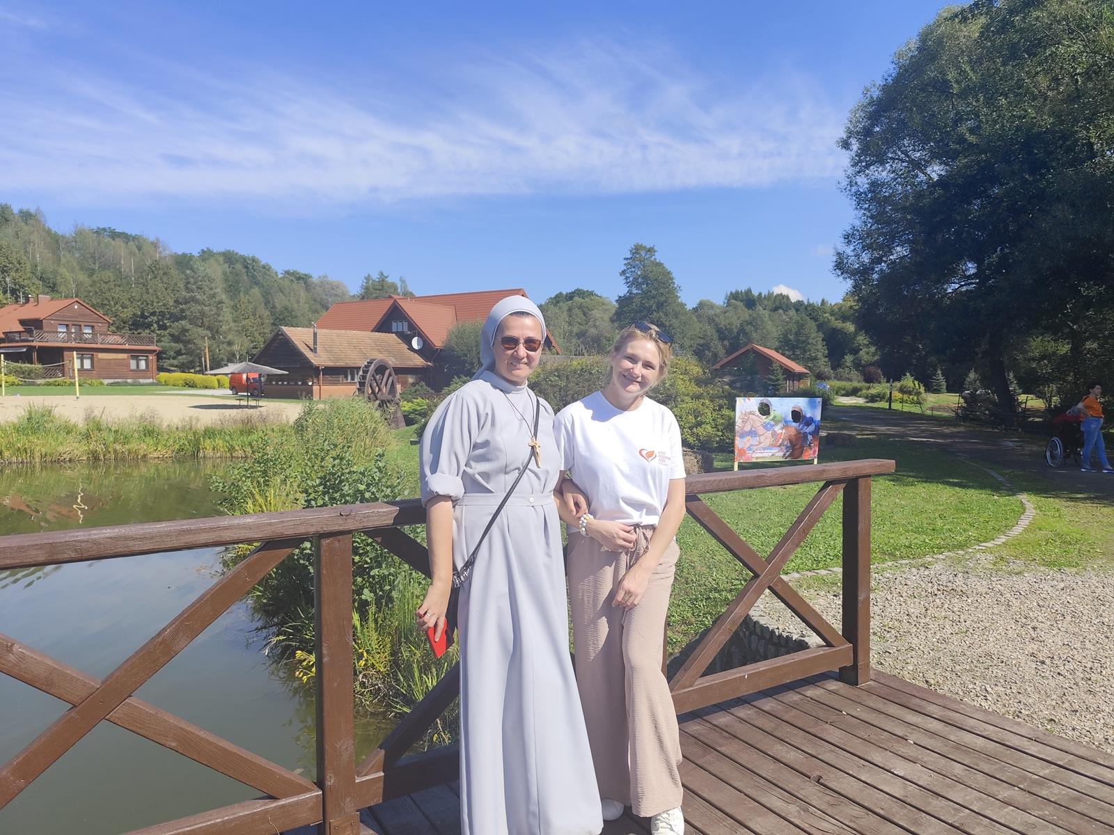 Słoneczna pogoda, piękna sceneria przyrody sprzyjała relaksowi i wspólnemu spędzaniu czasu. Mieszkańcy mogli podziwiać otaczającą zieleń oraz zalew, po którym można było popływać na rowerku wodnym – z tej atrakcji skorzystały najodważniejsze – s. Alfonsa – pracownik socjalny  oraz dwie Renaty (opiekunki). Urok miejsca dopełniały zwierzęta: konie, kozy, które z ciekawością podchodziły do uczestników, sprawiając im wiele radości, króliki, świnki morskie oraz kotki.