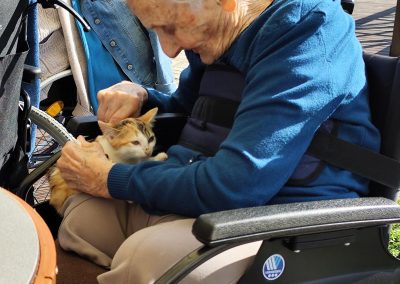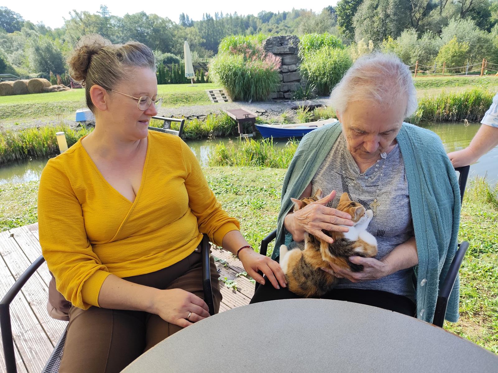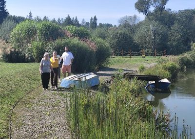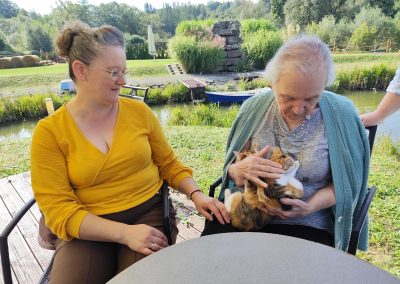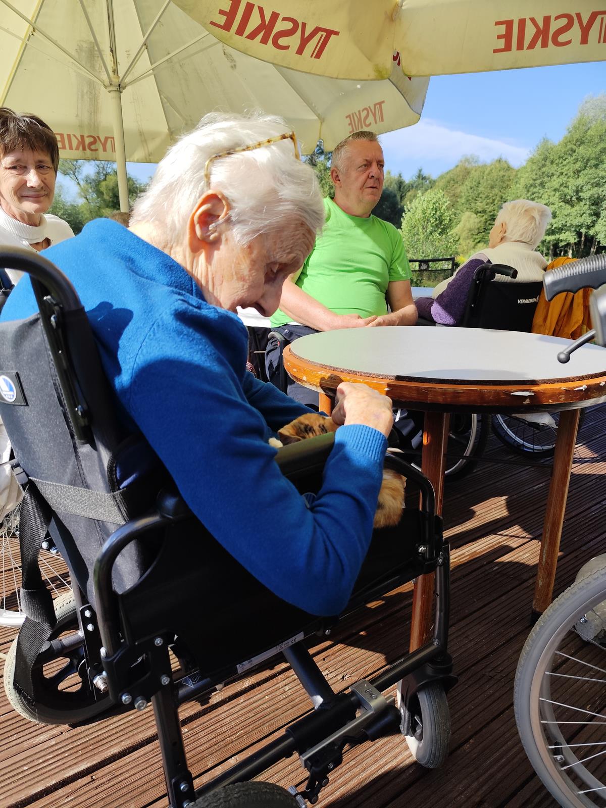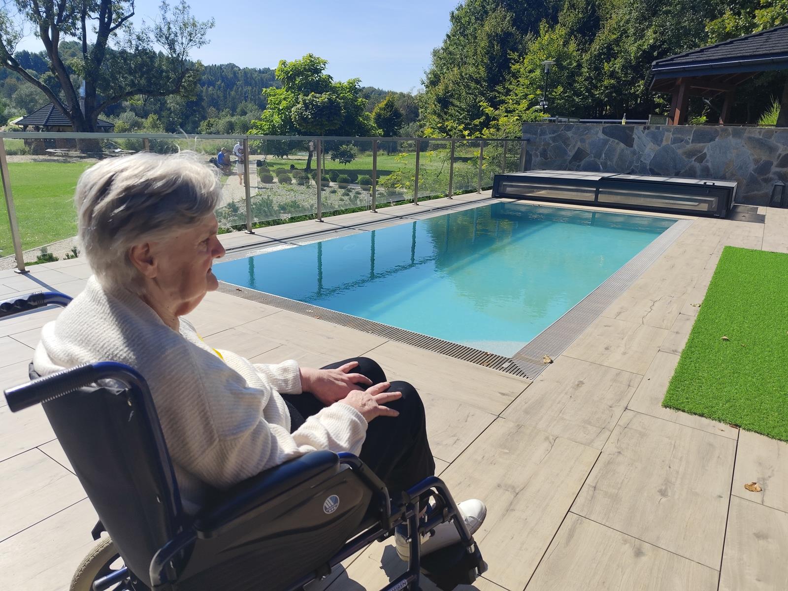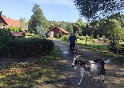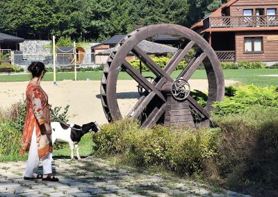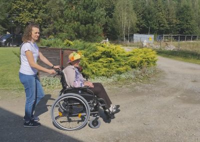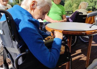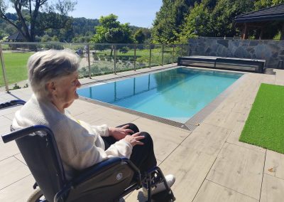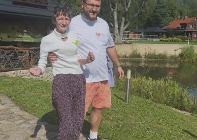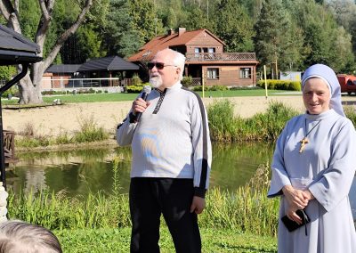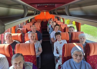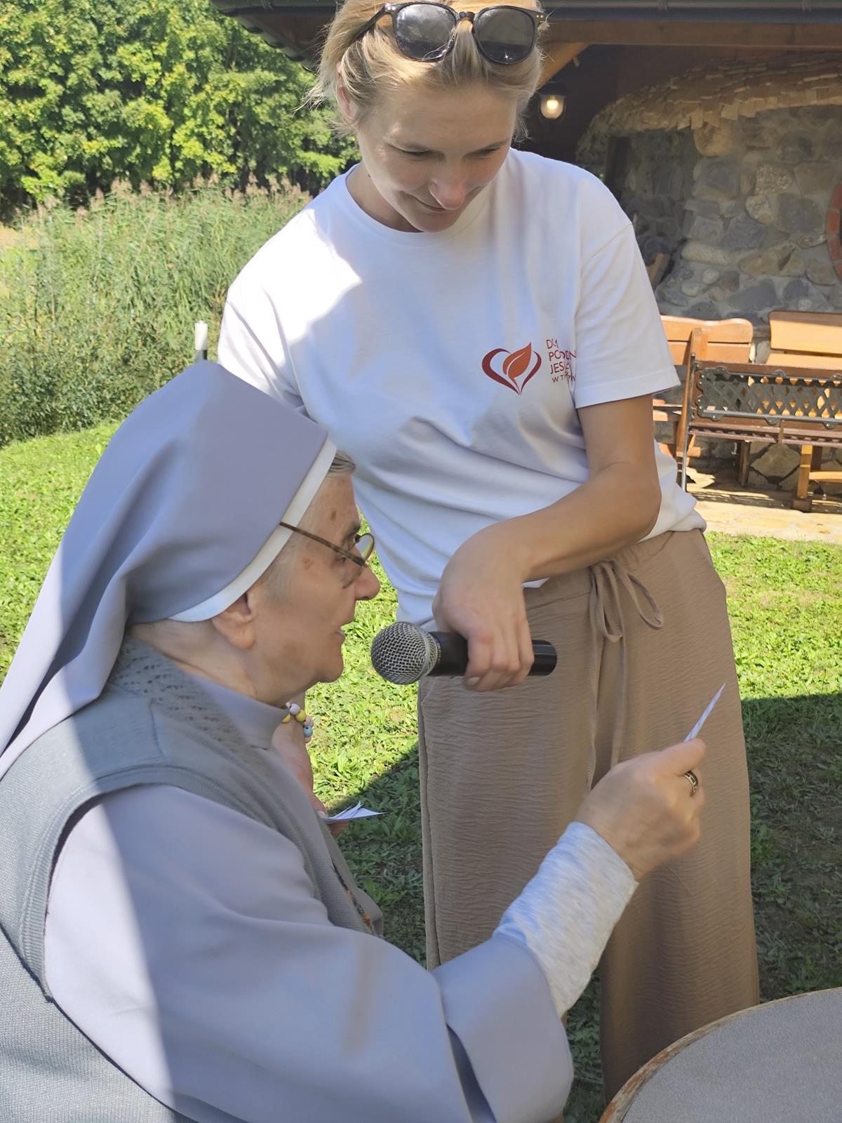 Słoneczna pogoda, piękna sceneria przyrody sprzyjała relaksowi i wspólnemu spędzaniu czasu. Mieszkańcy mogli podziwiać otaczającą zieleń oraz zalew, po którym można było popływać na rowerku wodnym – z tej atrakcji skorzystały najodważniejsze – s. Alfonsa – pracownik socjalny  oraz dwie Renaty (opiekunki). Urok miejsca dopełniały zwierzęta: konie, kozy, które z ciekawością podchodziły do uczestników, sprawiając im wiele radości, króliki, świnki morskie oraz kotki.