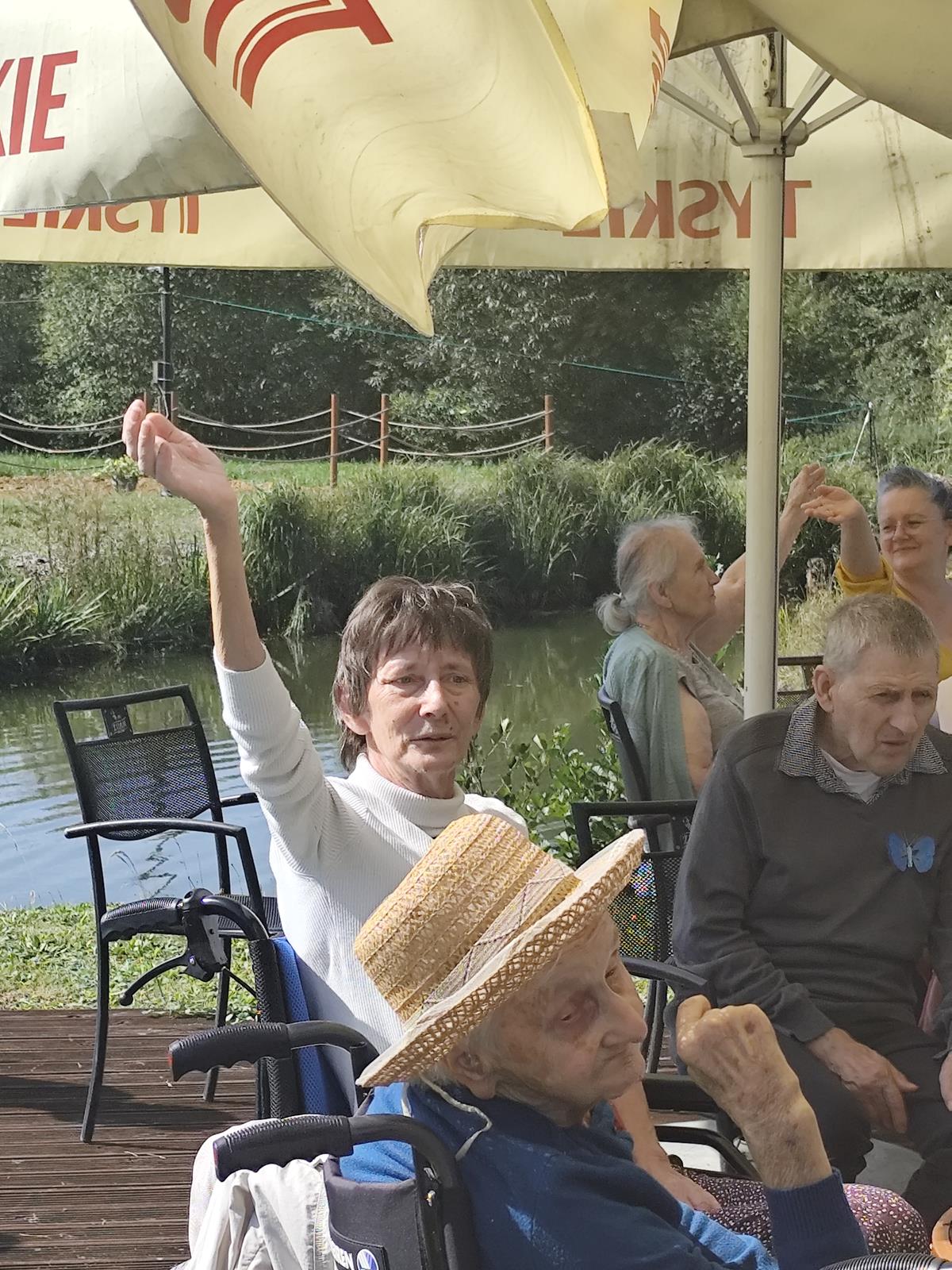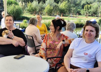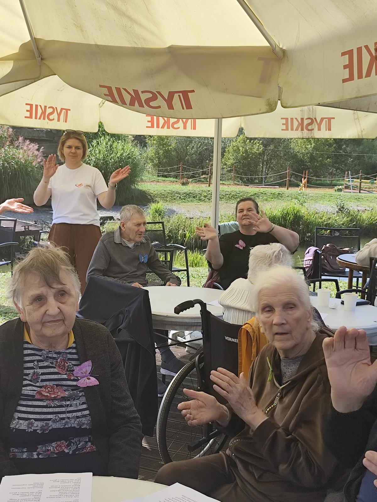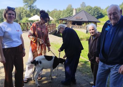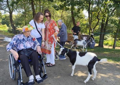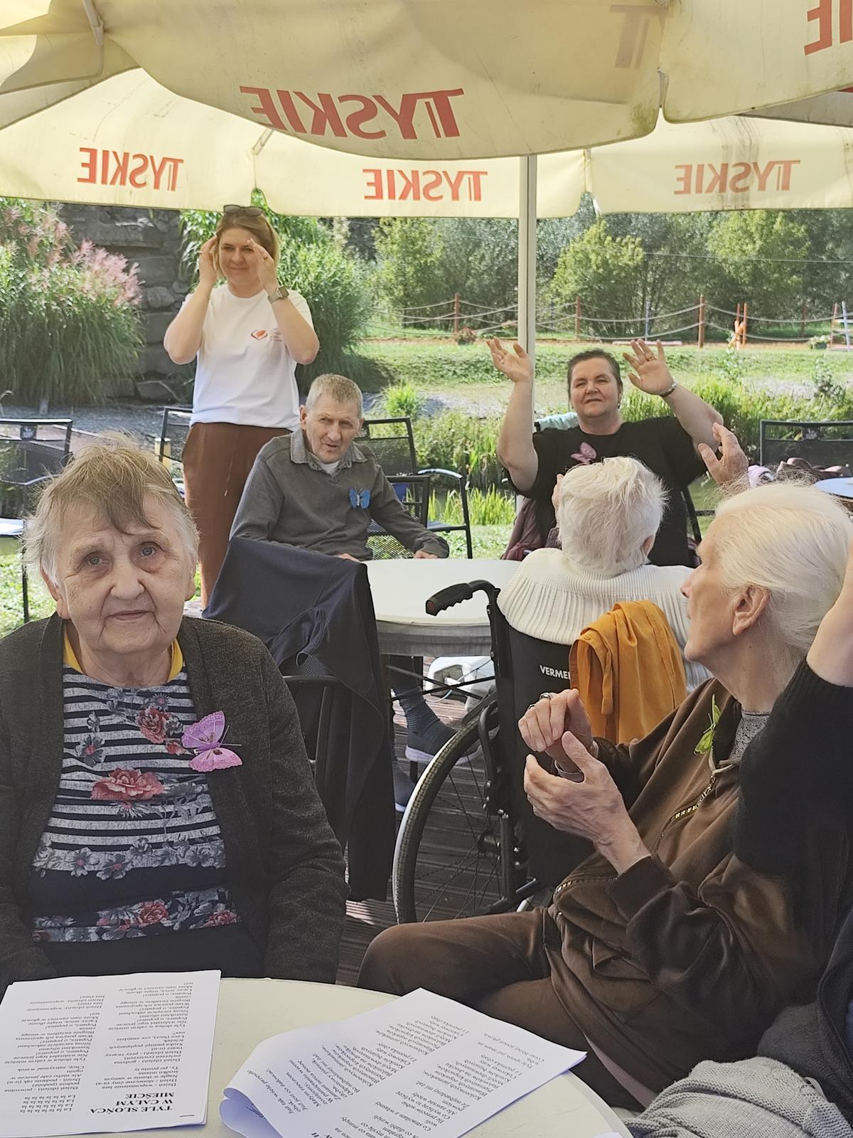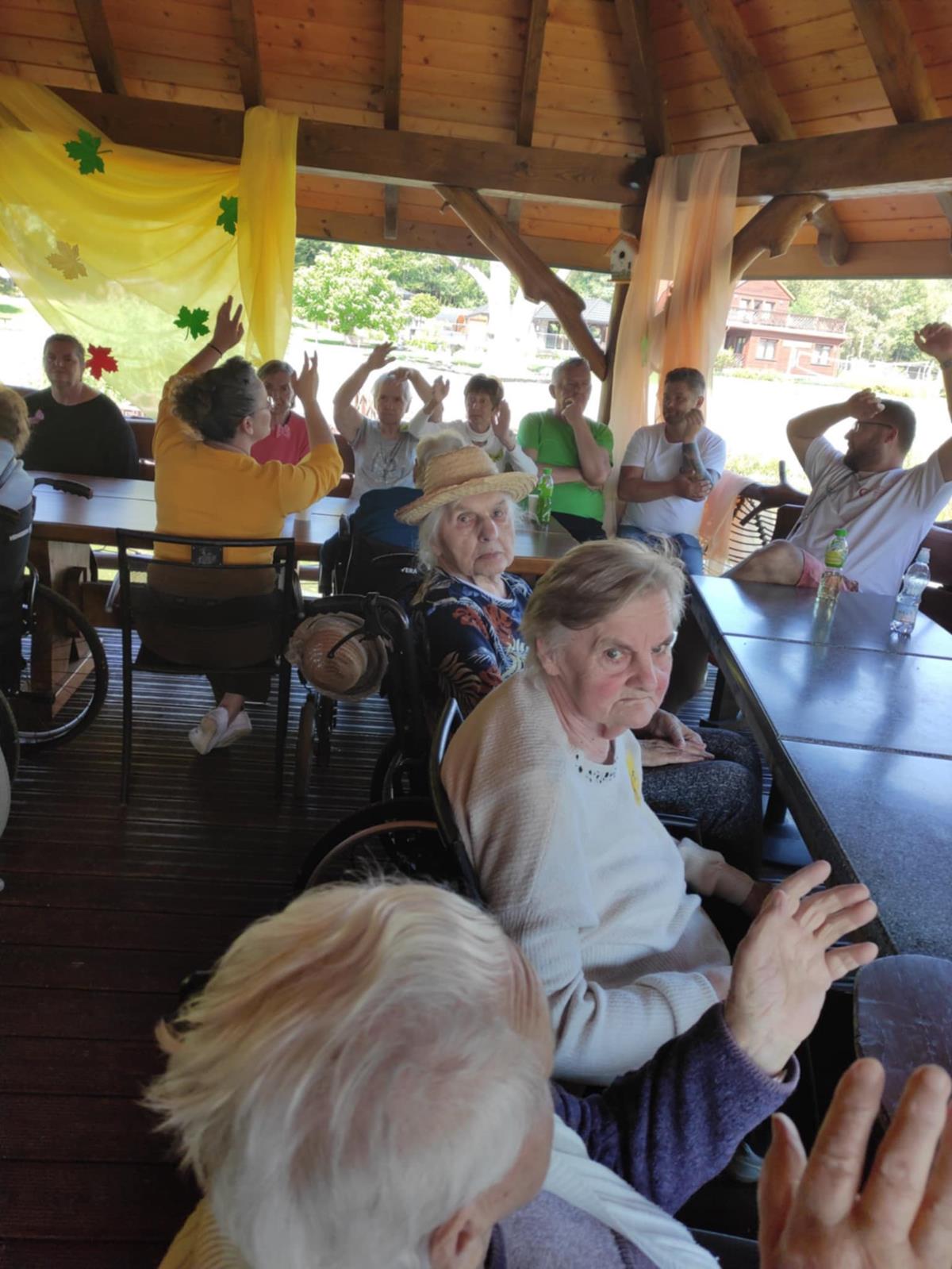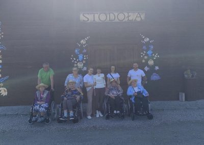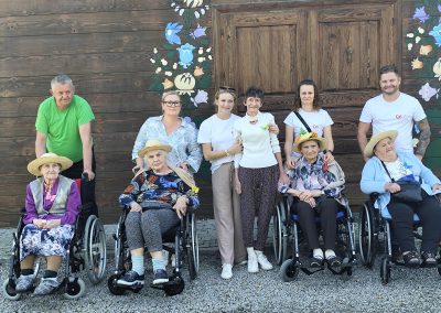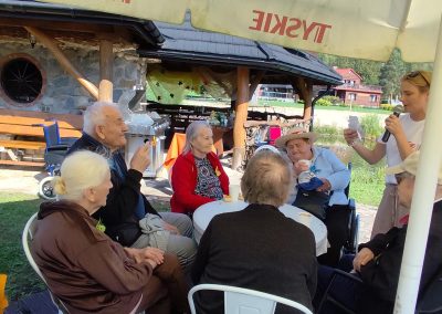 Spotkanie obfitowało w liczne atrakcje. Terapeutki zadbały o różnorodne zabawy integracyjne, które wywołały uśmiech i pozwoliły mieszkańcom aktywnie włączyć się we wspólną zabawę. Nie zabrakło również wspólnego śpiewania znanych i lubianych piosenek, co wprowadziło wszystkich w pogodny nastrój. Właściciel Eko-Sioło opowiedział uczestnikom o tym wyjątkowym miejscu, jego idei oraz codziennym funkcjonowaniu.