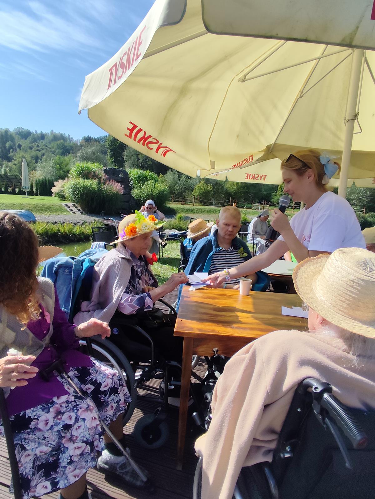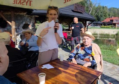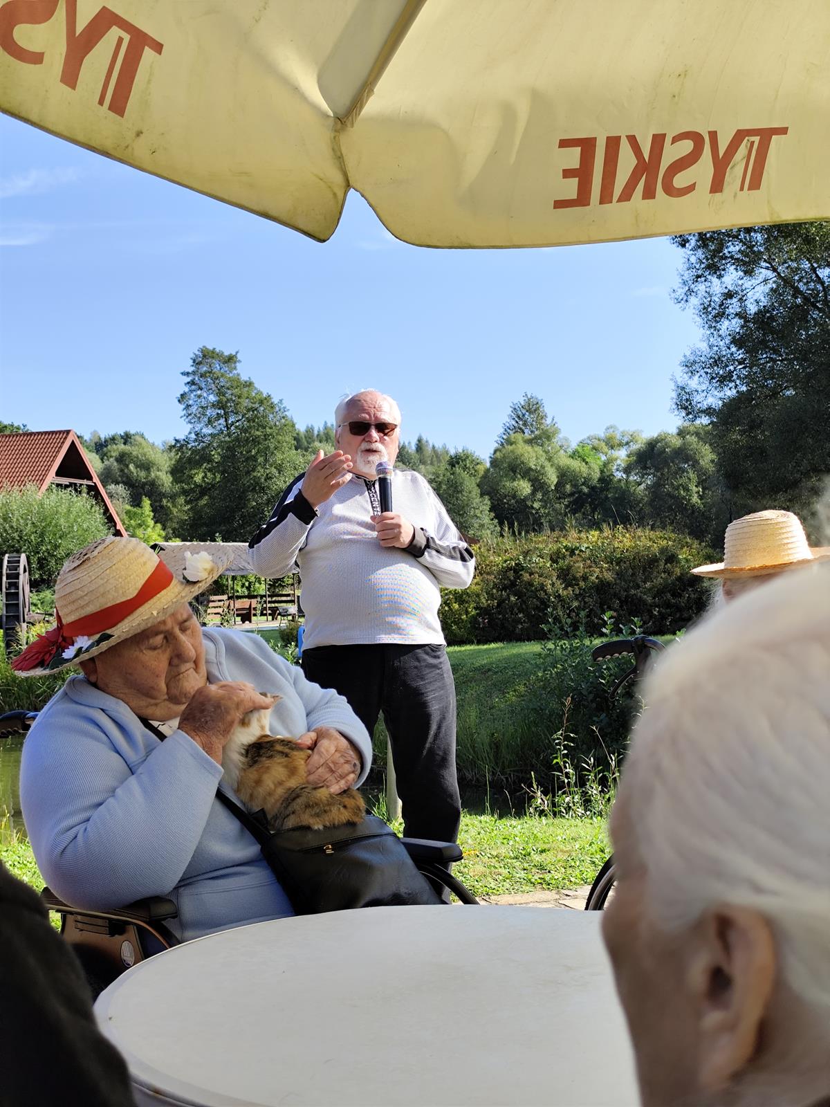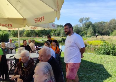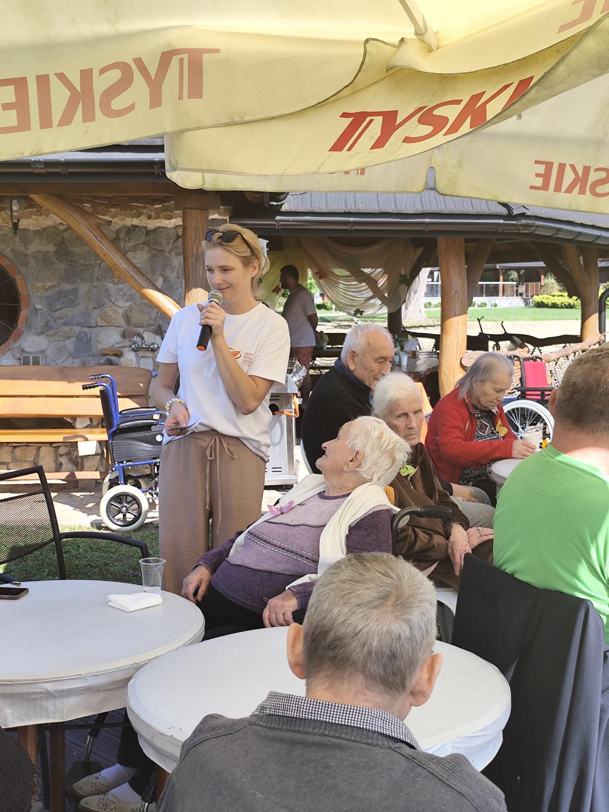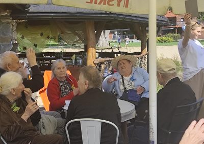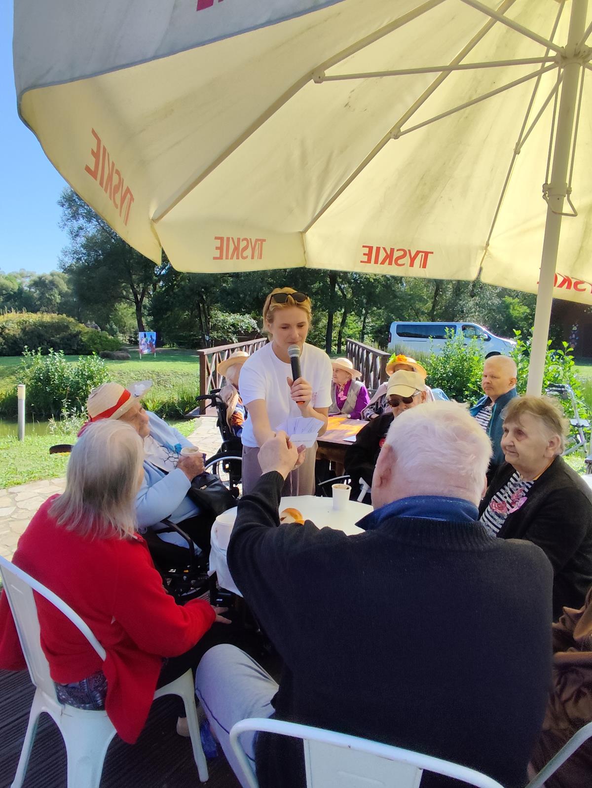 Spotkanie obfitowało w liczne atrakcje. Terapeutki zadbały o różnorodne zabawy integracyjne, które wywołały uśmiech i pozwoliły mieszkańcom aktywnie włączyć się we wspólną zabawę. Nie zabrakło również wspólnego śpiewania znanych i lubianych piosenek, co wprowadziło wszystkich w pogodny nastrój. Właściciel Eko-Sioło opowiedział uczestnikom o tym wyjątkowym miejscu, jego idei oraz codziennym funkcjonowaniu.