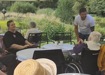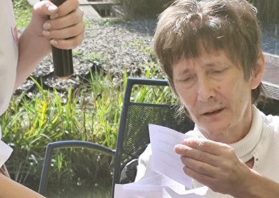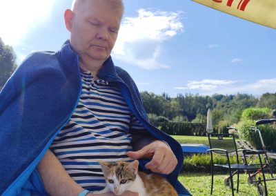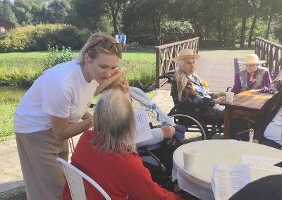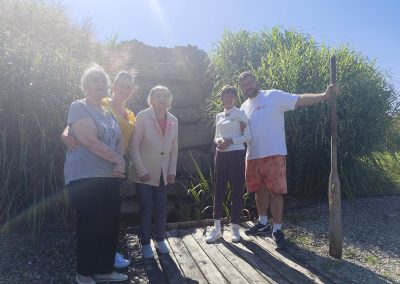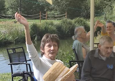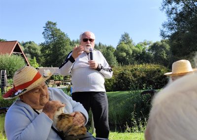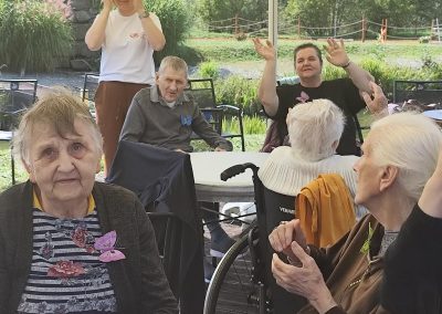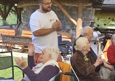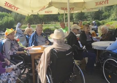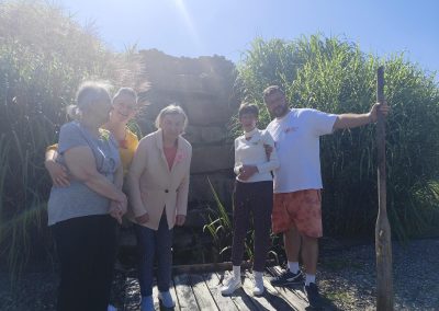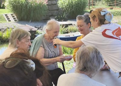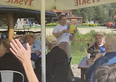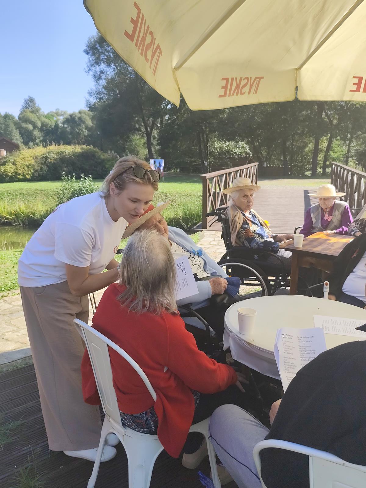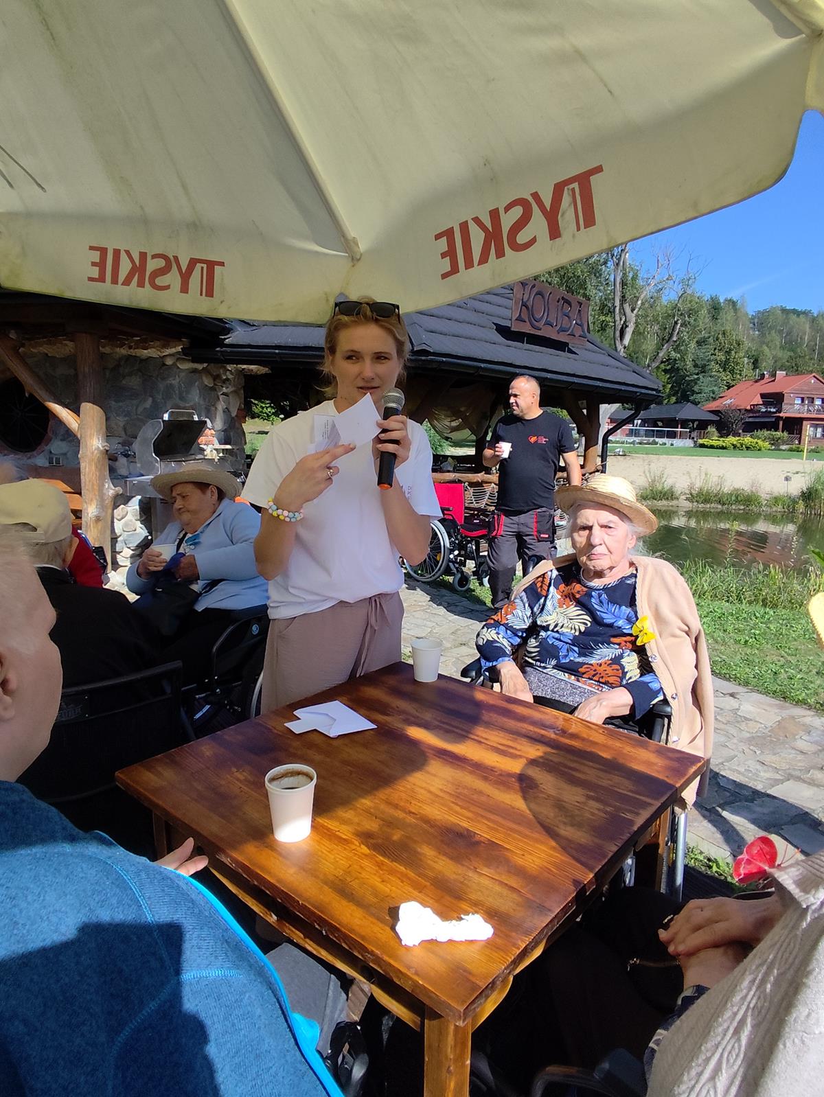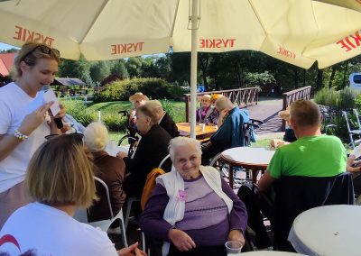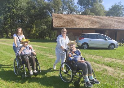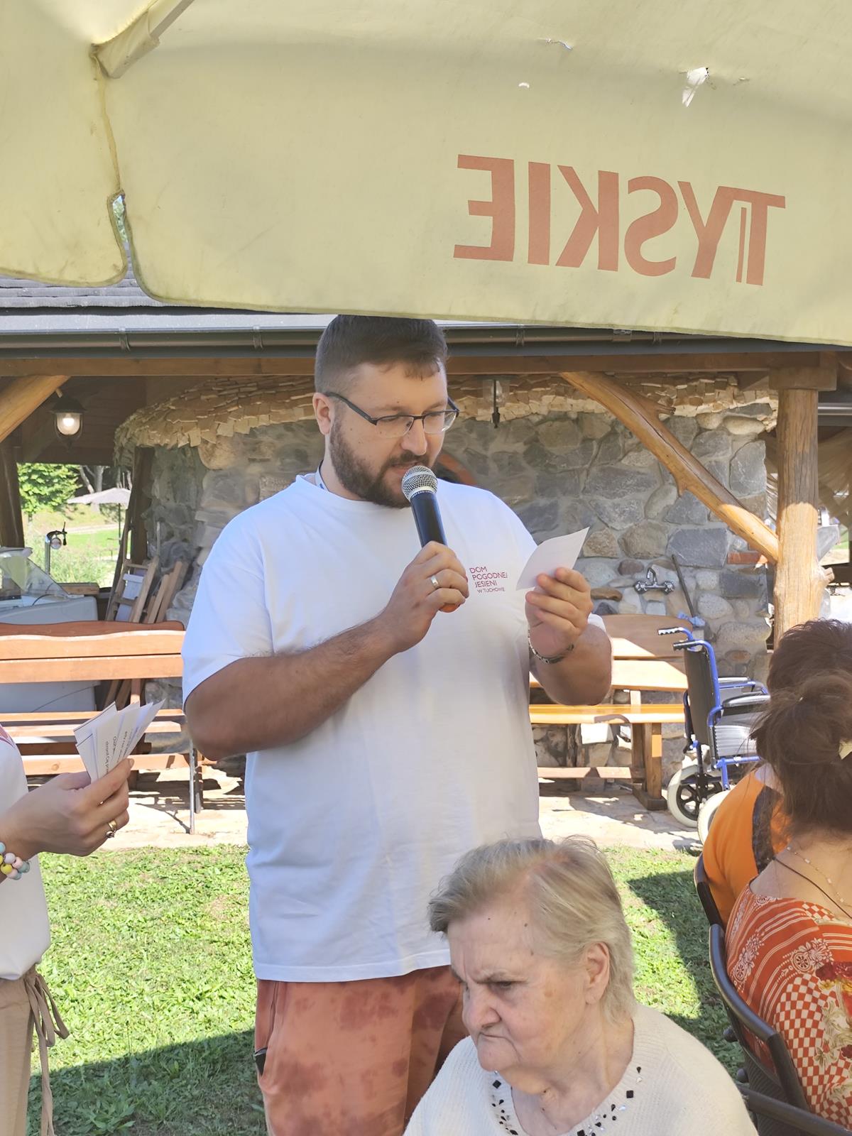 Spotkanie obfitowało w liczne atrakcje. Terapeutki zadbały o różnorodne zabawy integracyjne, które wywołały uśmiech i pozwoliły mieszkańcom aktywnie włączyć się we wspólną zabawę. Nie zabrakło również wspólnego śpiewania znanych i lubianych piosenek, co wprowadziło wszystkich w pogodny nastrój. Właściciel Eko-Sioło opowiedział uczestnikom o tym wyjątkowym miejscu, jego idei oraz codziennym funkcjonowaniu.