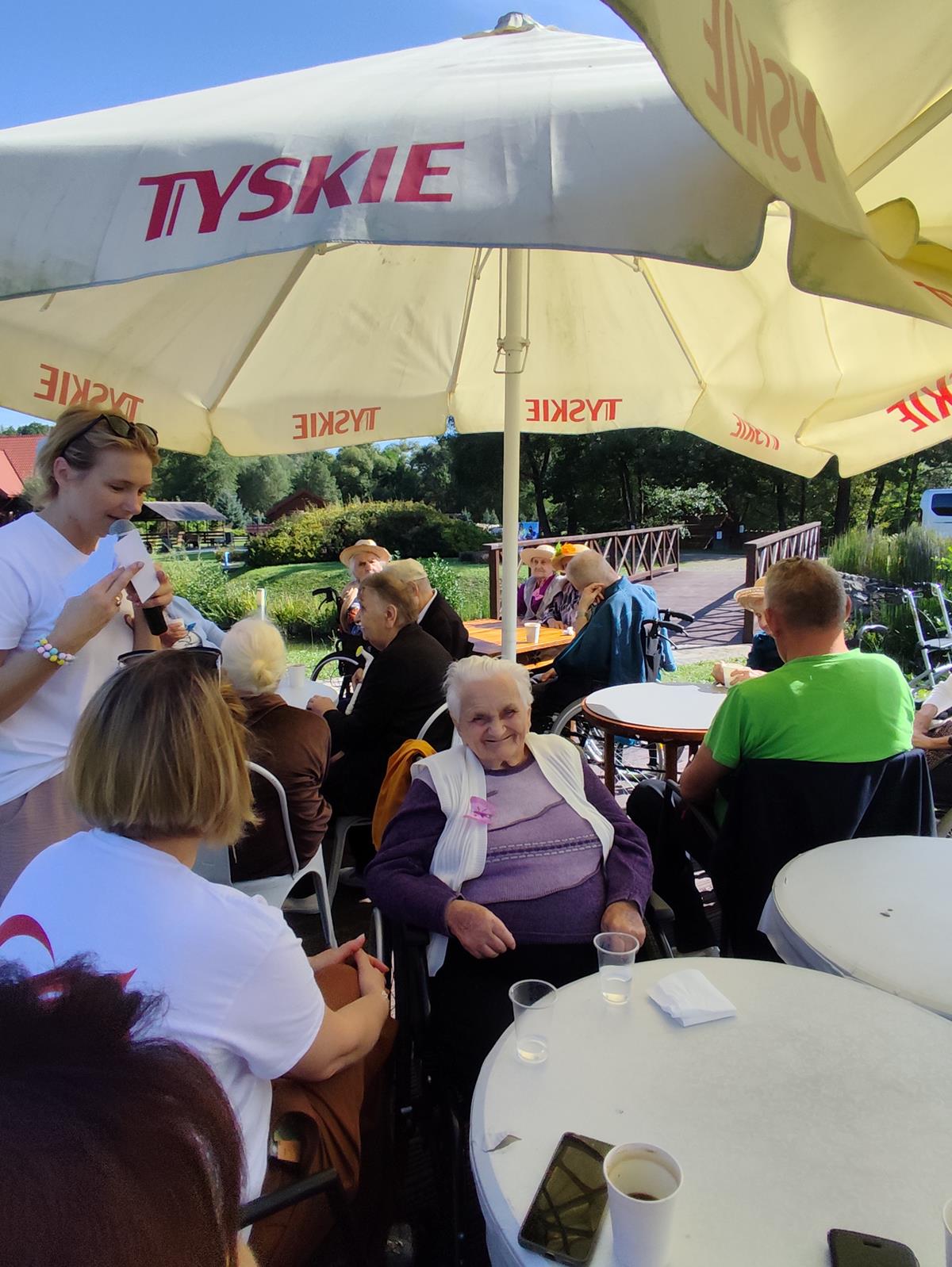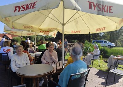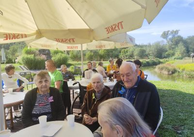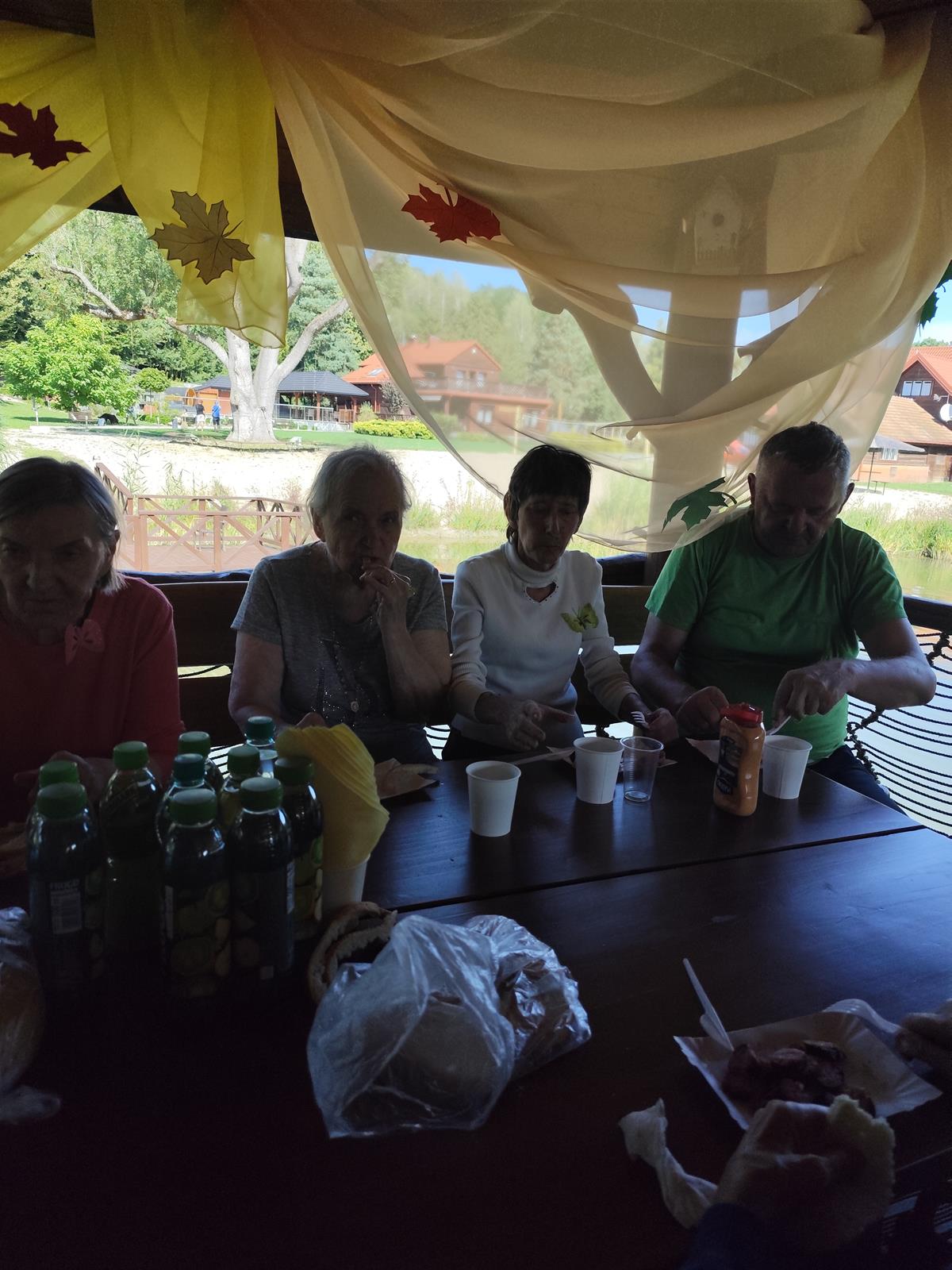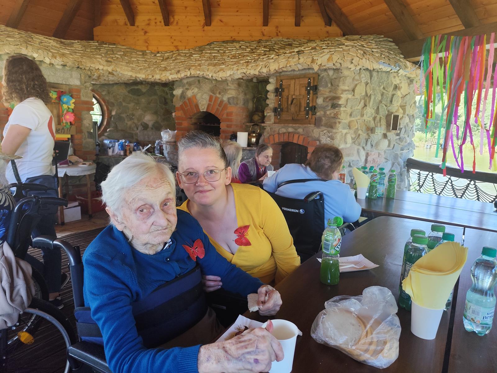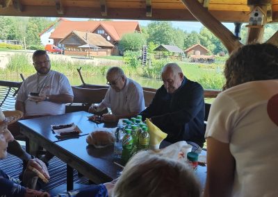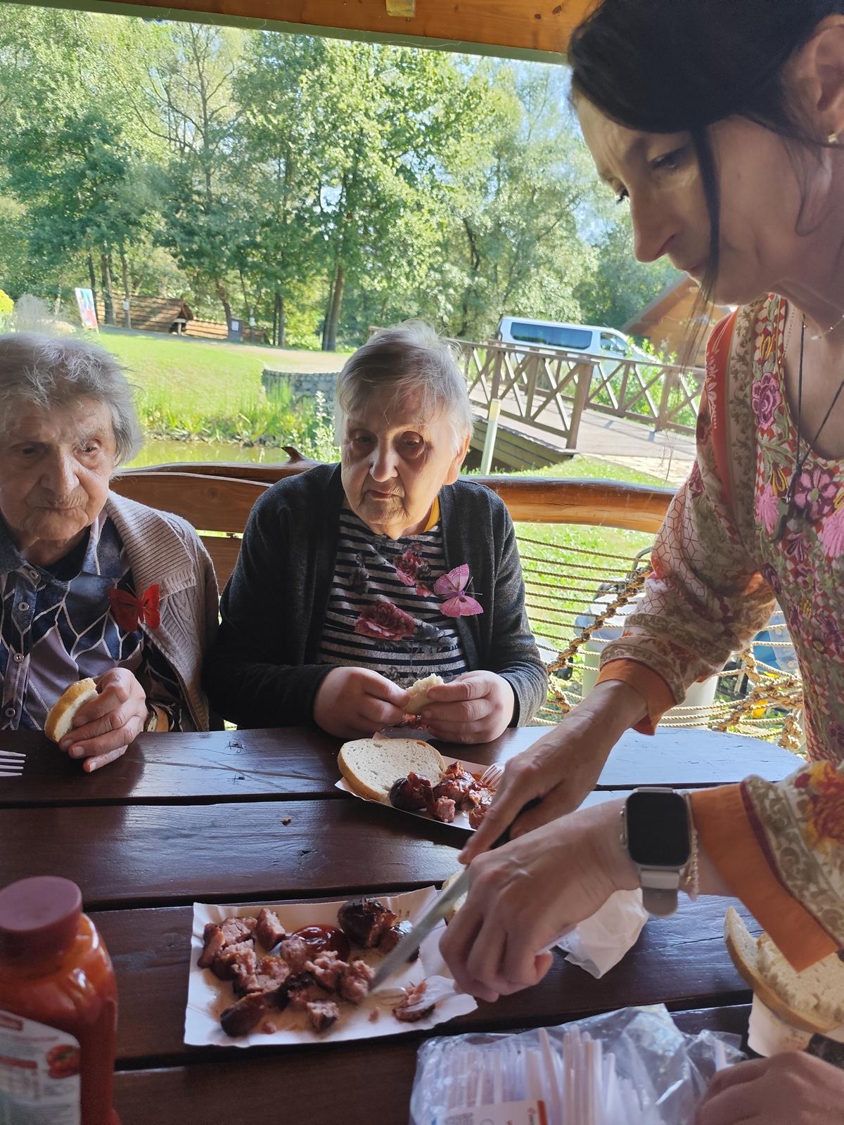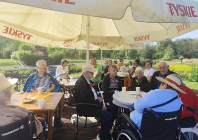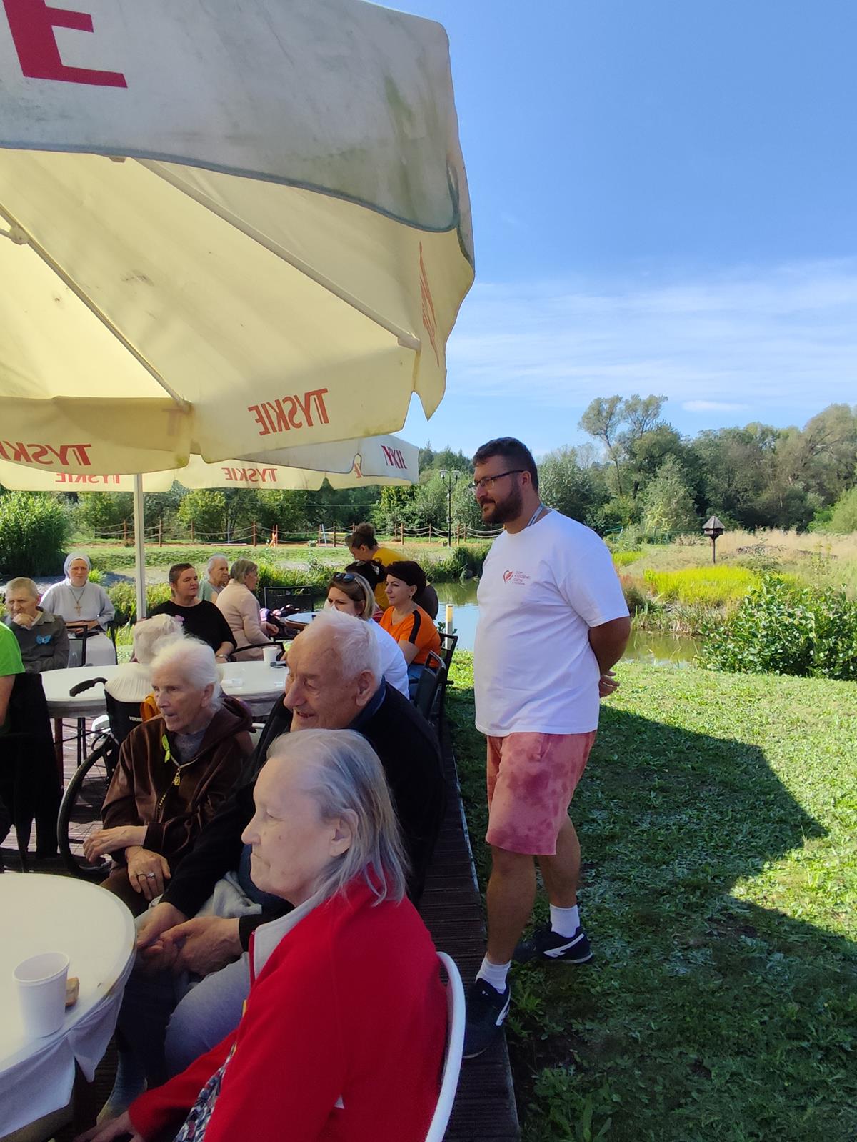 W przerwach uczestnicy mogli delektować się aromatyczną kawą i świeżą drożdżówką, a zwieńczeniem spotkania był wspólny grill, który stał się okazją do biesiadowania i radosnych rozmów przy smacznym posiłku. Spacer po terenie Eko-Sioło był doskonałą okazją do kontaktu z naturą, a także do dzielenia się wspomnieniami, do zobaczenia nowych rzeczy takich jak np. basen, jacuzzi, ponieważ dla niektórych seniorów była to zupełna nowość.  Wspólne przebywanie na świeżym powietrzu, w atmosferze spokoju i piękna przyrody, stało się źródłem wielu pozytywnych emocji i niezapomnianych wrażeń. Był to dzień pełen uśmiechu, relaksu, który na długo pozostanie w pamięci mieszkańców DPJ.