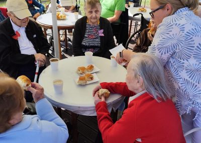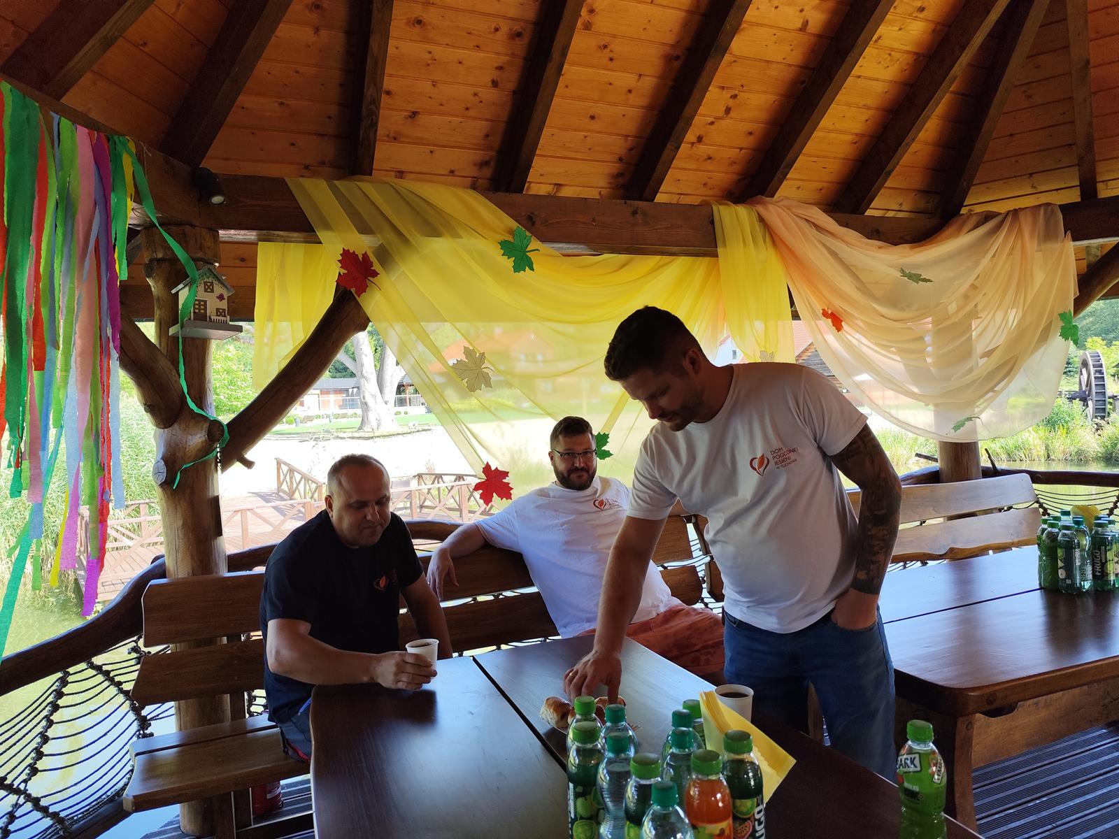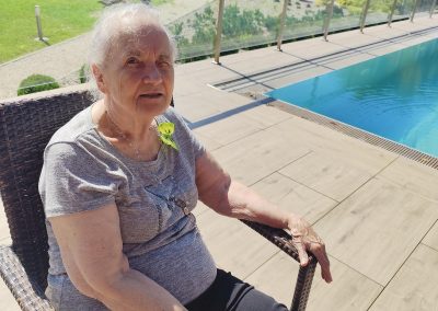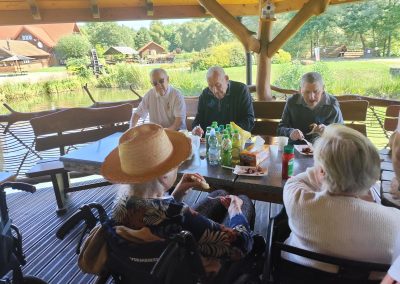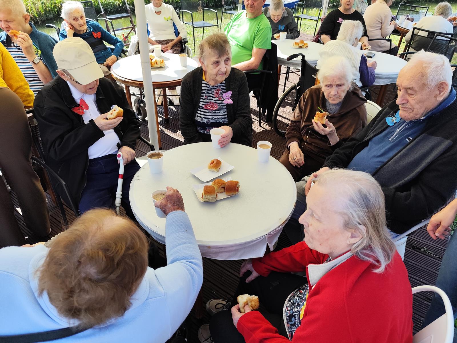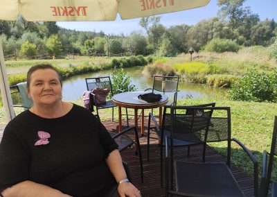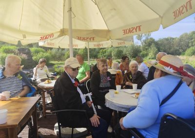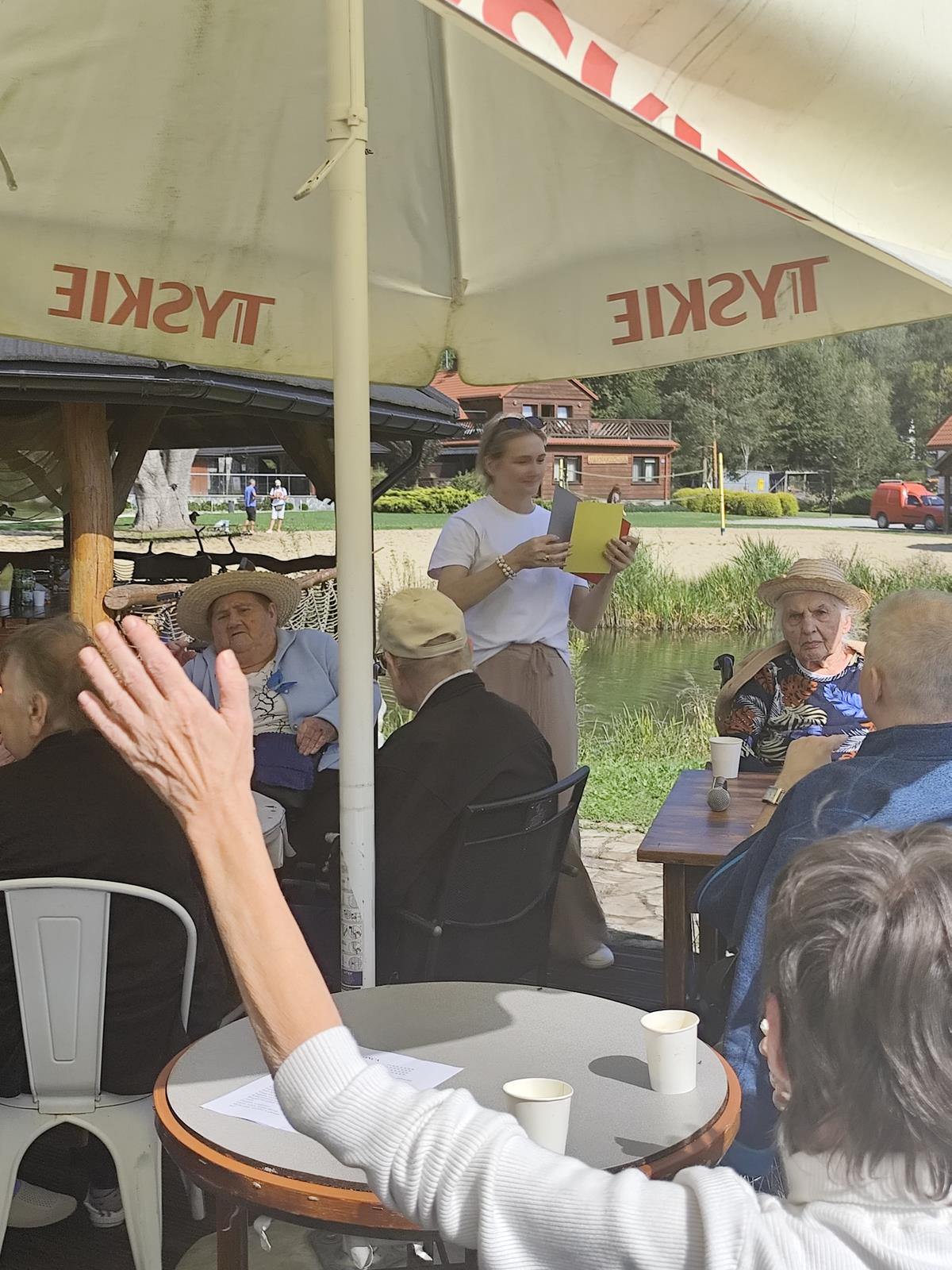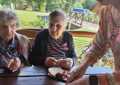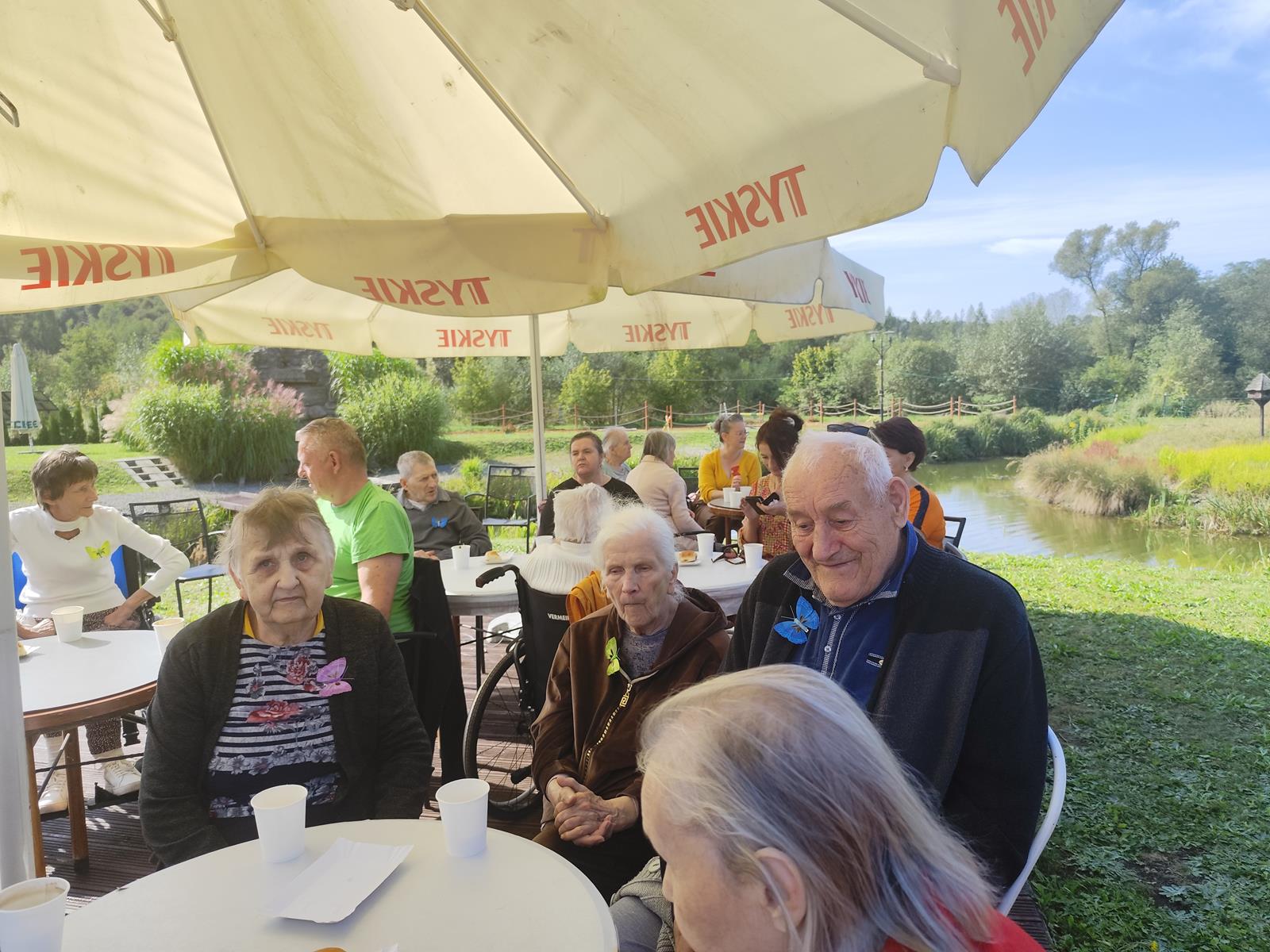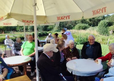W przerwach uczestnicy mogli delektować się aromatyczną kawą i świeżą drożdżówką, a zwieńczeniem spotkania był wspólny grill, który stał się okazją do biesiadowania i radosnych rozmów przy smacznym posiłku. Spacer po terenie Eko-Sioło był doskonałą okazją do kontaktu z naturą, a także do dzielenia się wspomnieniami, do zobaczenia nowych rzeczy takich jak np. basen, jacuzzi, ponieważ dla niektórych seniorów była to zupełna nowość.  Wspólne przebywanie na świeżym powietrzu, w atmosferze spokoju i piękna przyrody, stało się źródłem wielu pozytywnych emocji i niezapomnianych wrażeń. Był to dzień pełen uśmiechu, relaksu, który na długo pozostanie w pamięci mieszkańców DPJ.