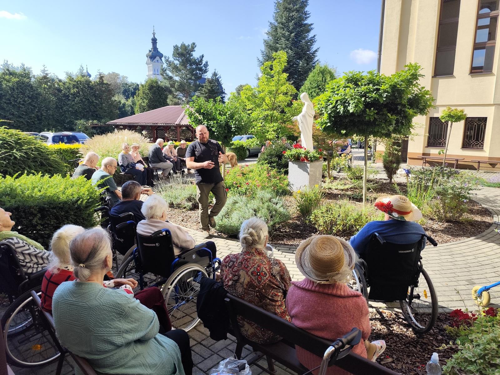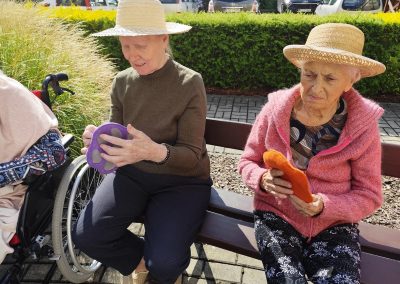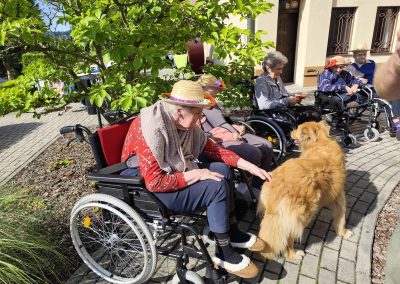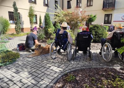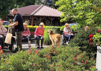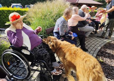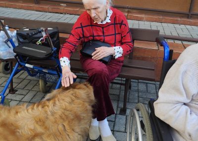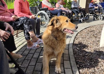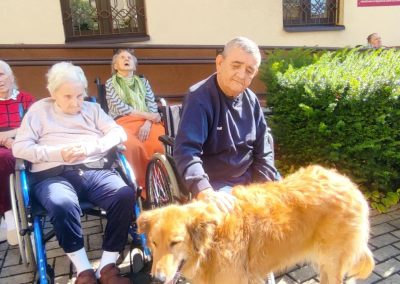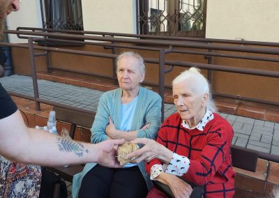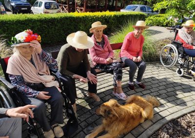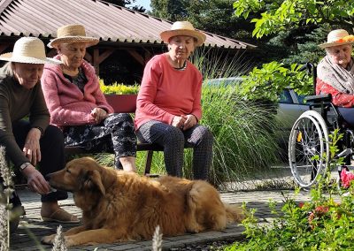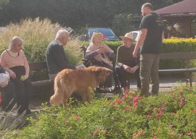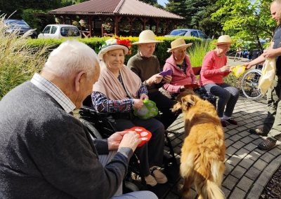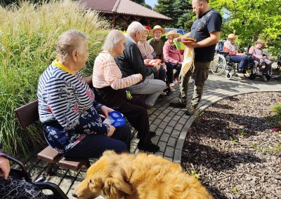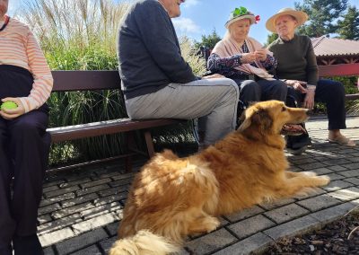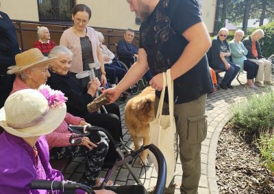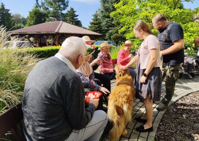 Zajęcia te połączyły elementy terapii sensorycznej i dogoterapii, co wpłynęło korzystnie na aktywizację seniorów, którzy chętnie angażowali się w kontakt z Kitą oraz chętnie odpowiadali na zadawane przez pana Piotra pytania.