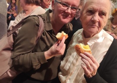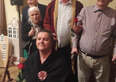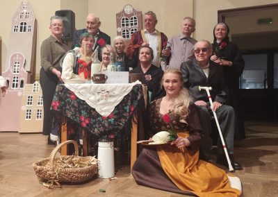 Dnia 29 listopada delegacja mieszkańców Domu Pogodnej Jesieni w Tuchowie, pod opieką s. Alfonsy Grybel – pracownika socjalnego oraz Agnieszki Maziarki – opiekunki wyruszyła do Domu Kultury w Tuchowie, aby wziąć udział w obchodach IV Tuchowskiego Dnia Seniora. Na miejscu czekała już na nich terapeutka zajęciowa Paulina Kordela, która przygotowywała się do występu w programie artystycznym. Dzięki zaproszeniu Domu Kultury w Tuchowie oraz pani Marii Wiśniowskiej – głównej scenarzystki pani Sylwia oraz pan Piotr – podopieczni DPJ, mogli wraz z terapeutką Pauliną współtworzyć na scenie to piękne wydarzenie.