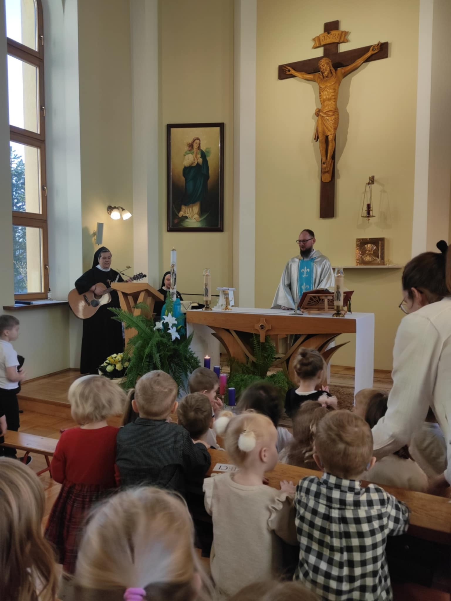 Dzieci z Przedszkola Niepublicznego Zgromadzenia Sióstr Św. Jòzefa w Tuchowie wspólnie z Seniorami z Domu Pogodnej Jesieni uczestniczyli w adwentowej Mszy Świętej, którą odprawił ojciec Grzegorz Gut CSsR.