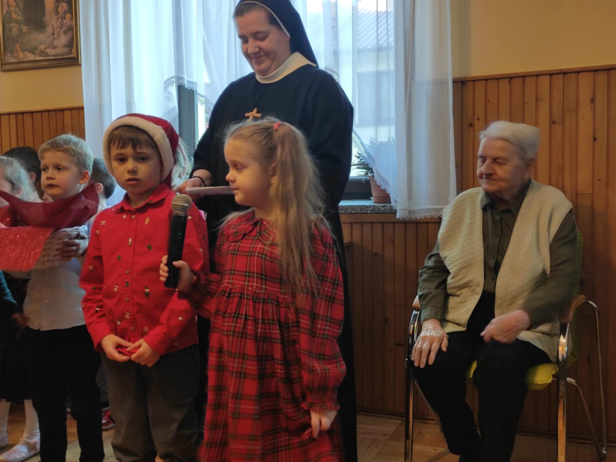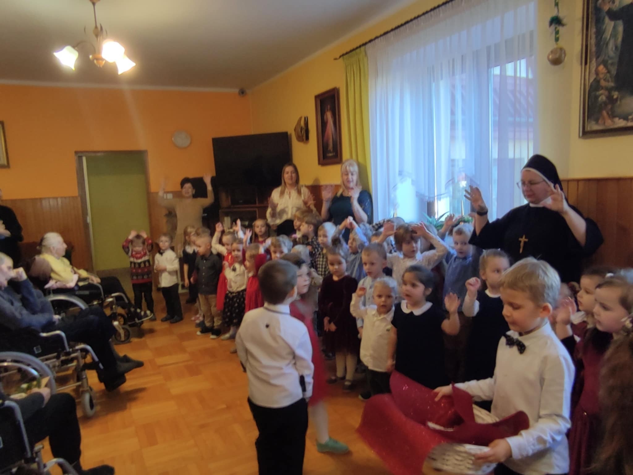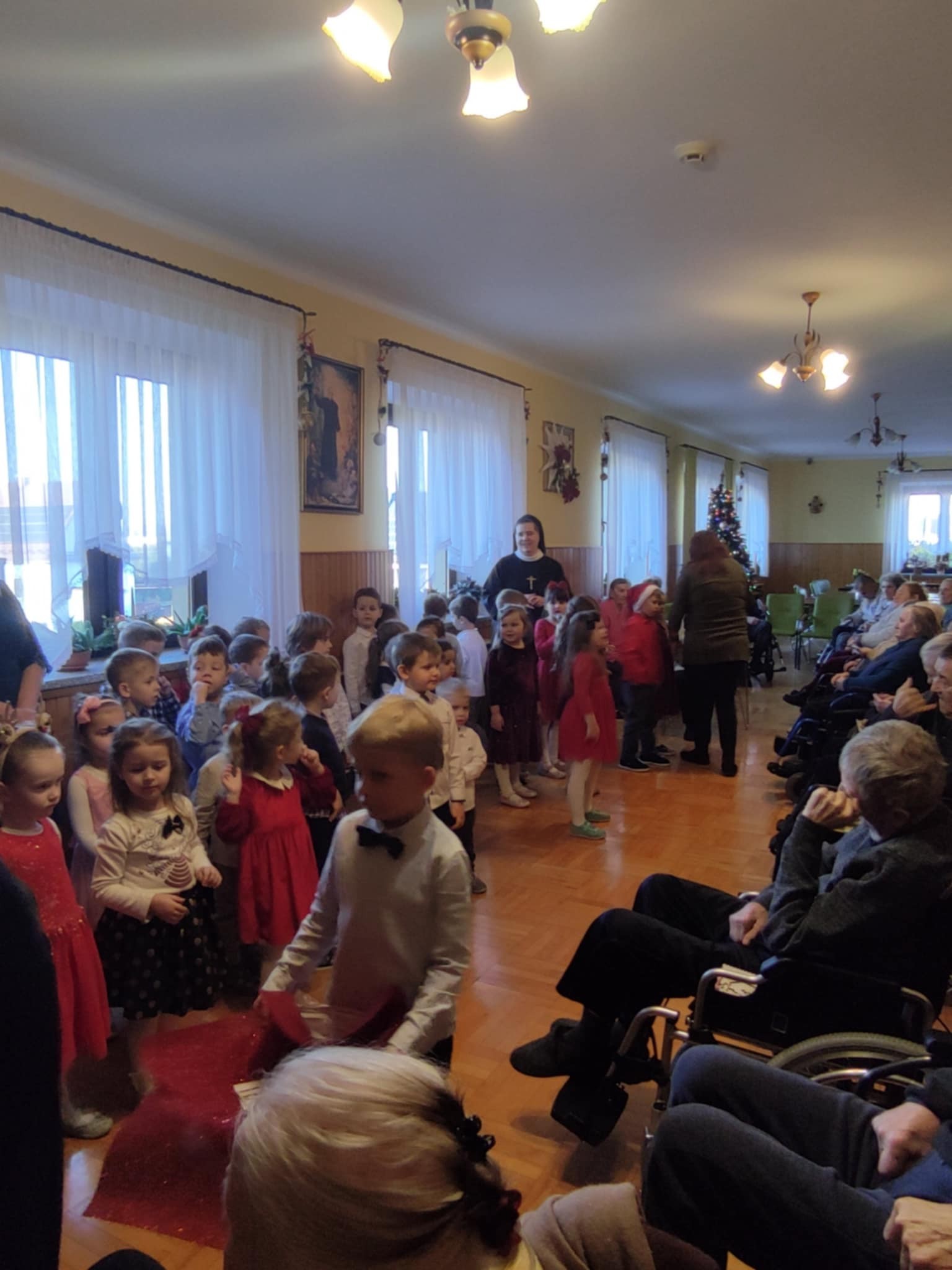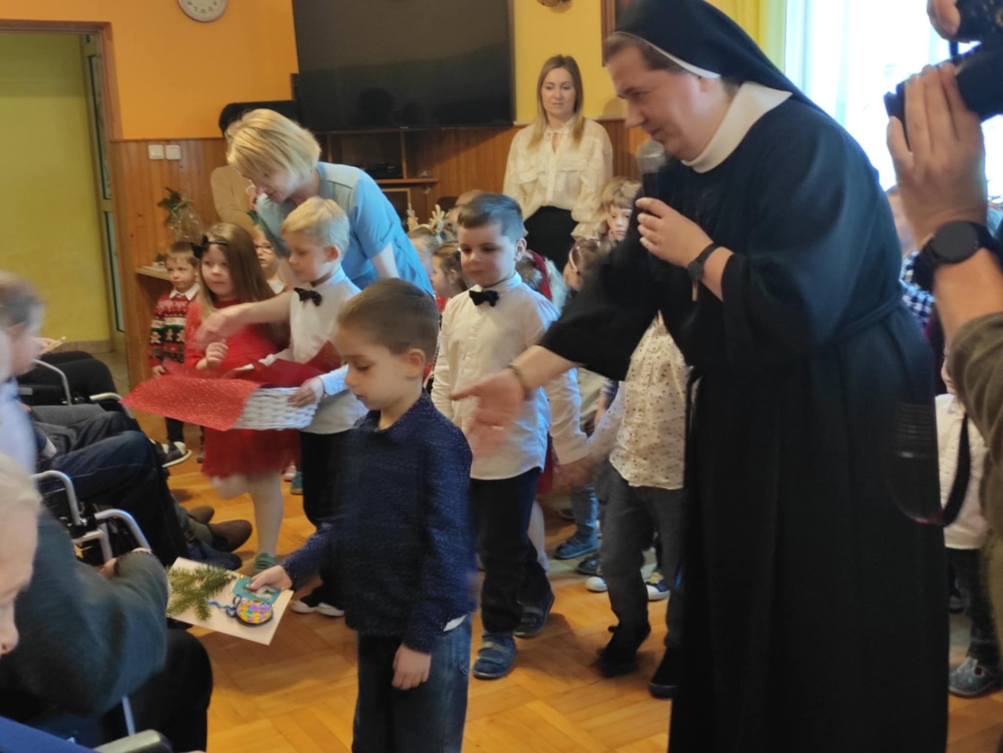 W przedświątecznym czasie dzieci z Przedszkola Niepublicznego Zgromadzenia Sióstr Świętego Józefa w Tuchowie wraz z dyrektor – S Joela Magdalena Cisek, swoimi wychowawcami i pracownikami Przedszkola odwiedziły mieszkańców DPJ, aby wspólnie przeżyć radosne chwile związane ze zbliżającymi się Świętami Bożego Narodzenia.