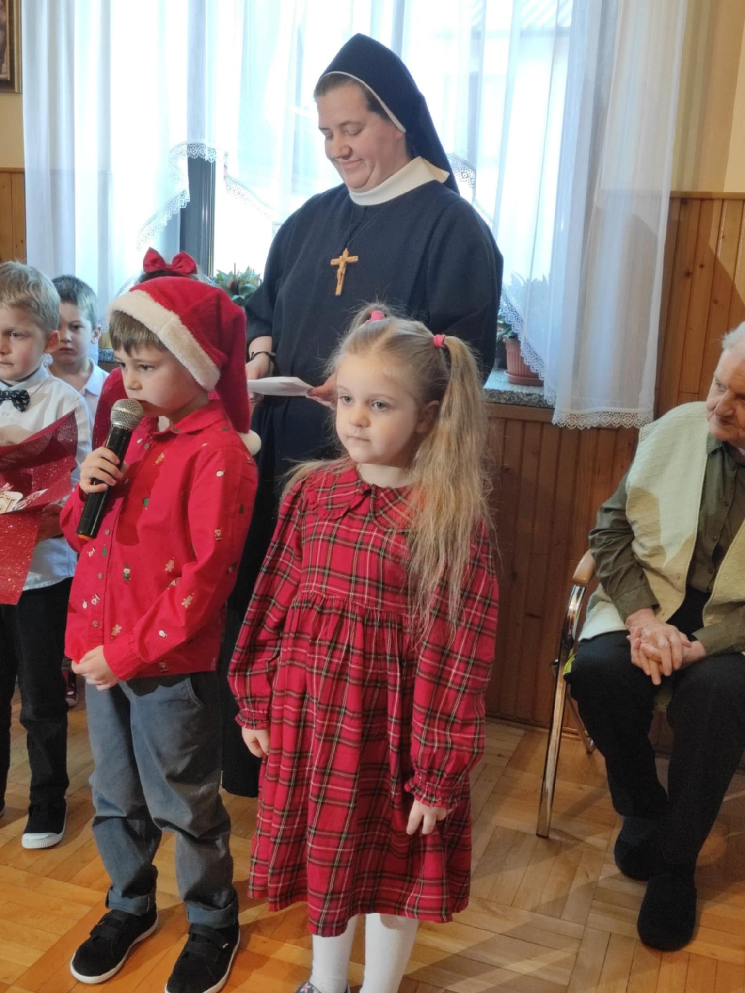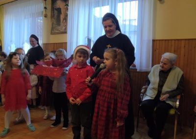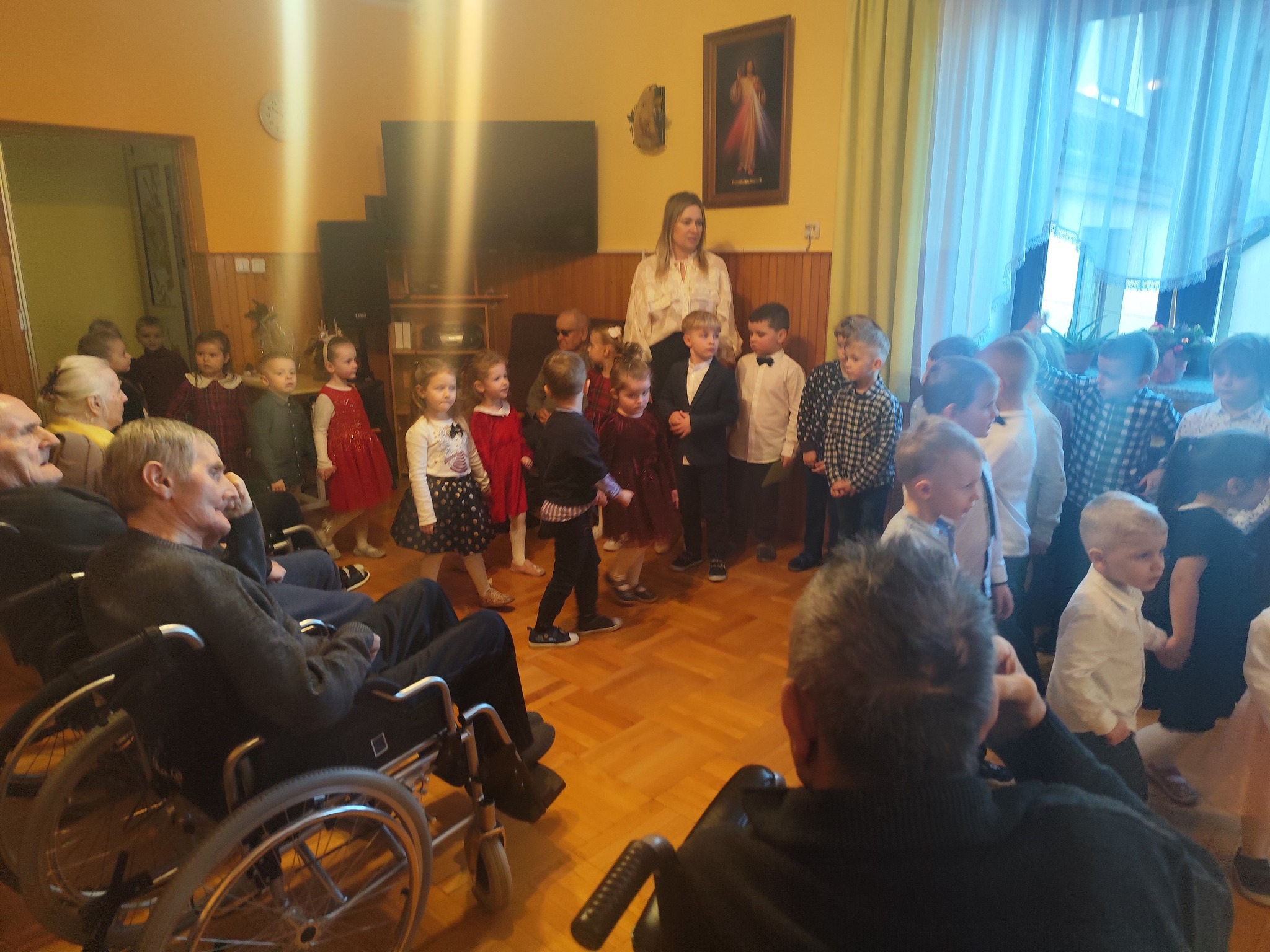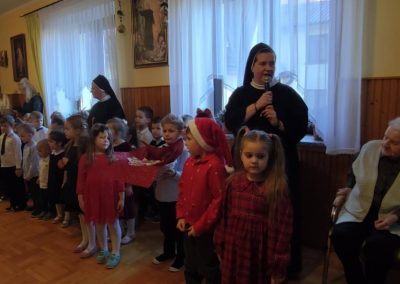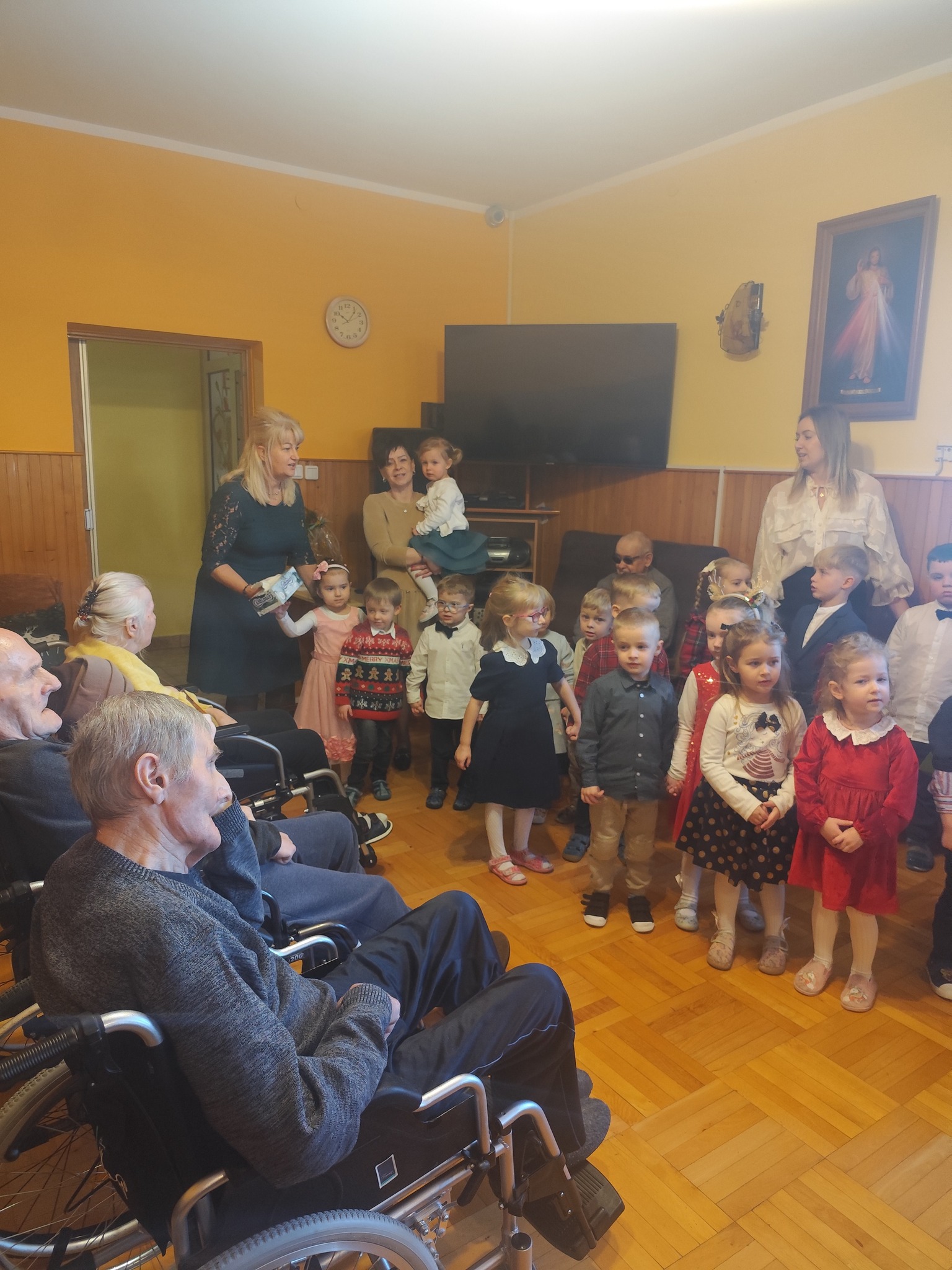 W przedświątecznym czasie dzieci z Przedszkola Niepublicznego Zgromadzenia Sióstr Świętego Józefa w Tuchowie wraz z dyrektor – S Joela Magdalena Cisek, swoimi wychowawcami i pracownikami Przedszkola odwiedziły mieszkańców DPJ, aby wspólnie przeżyć radosne chwile związane ze zbliżającymi się Świętami Bożego Narodzenia.