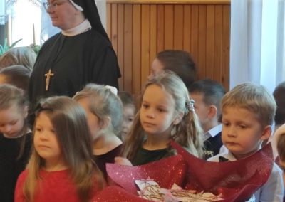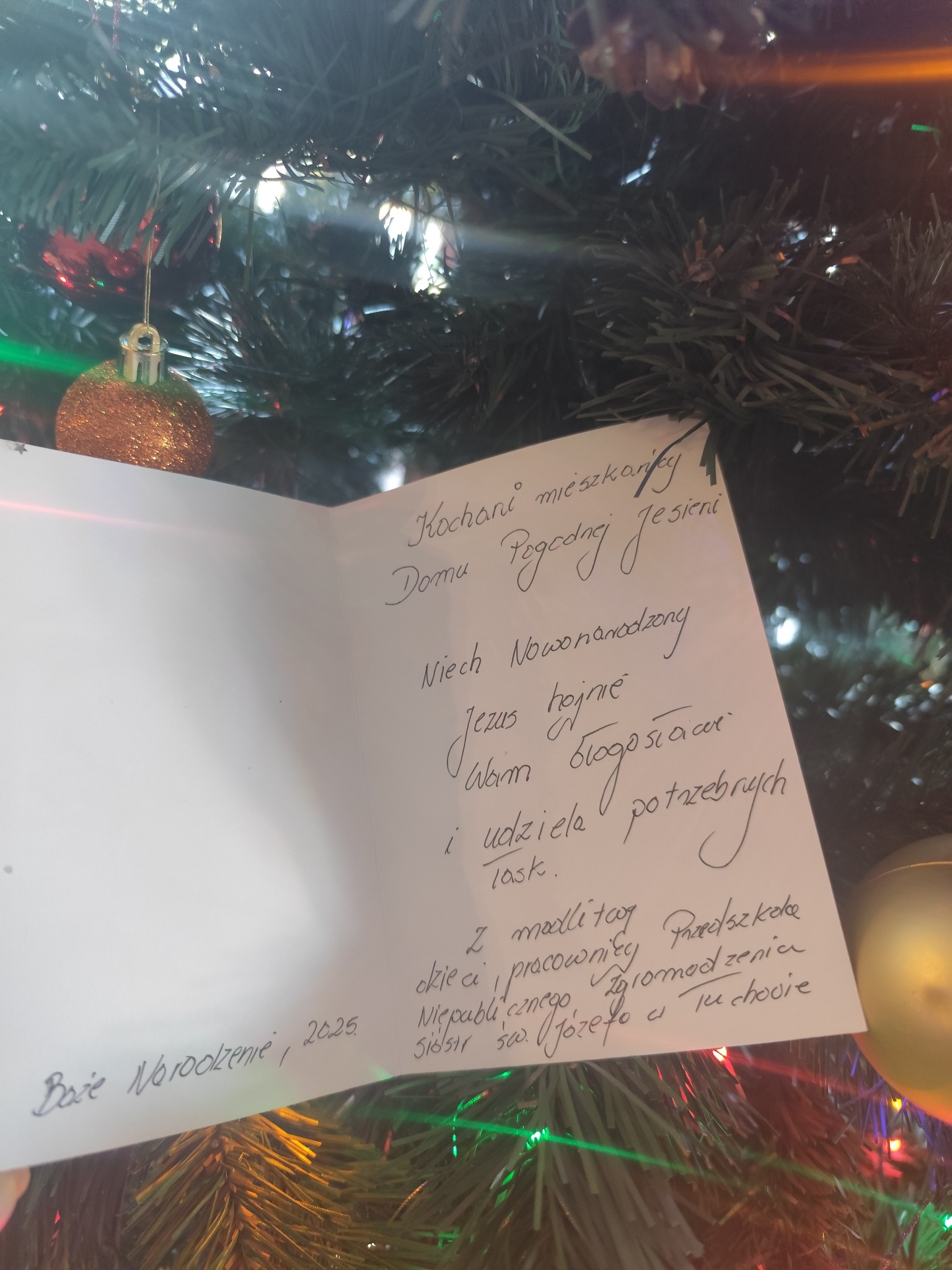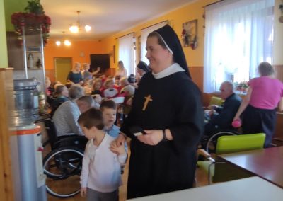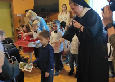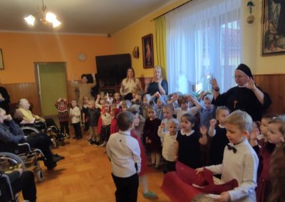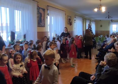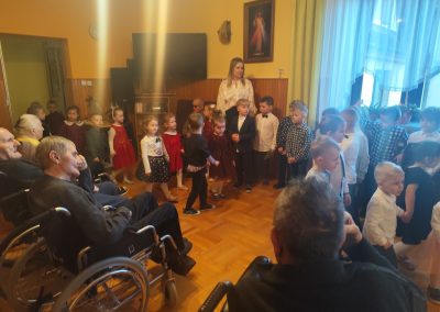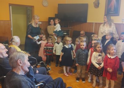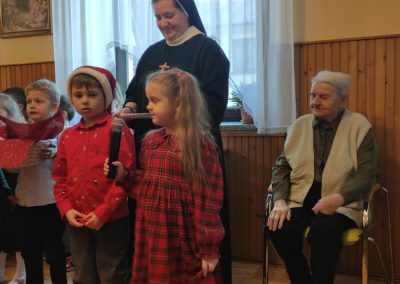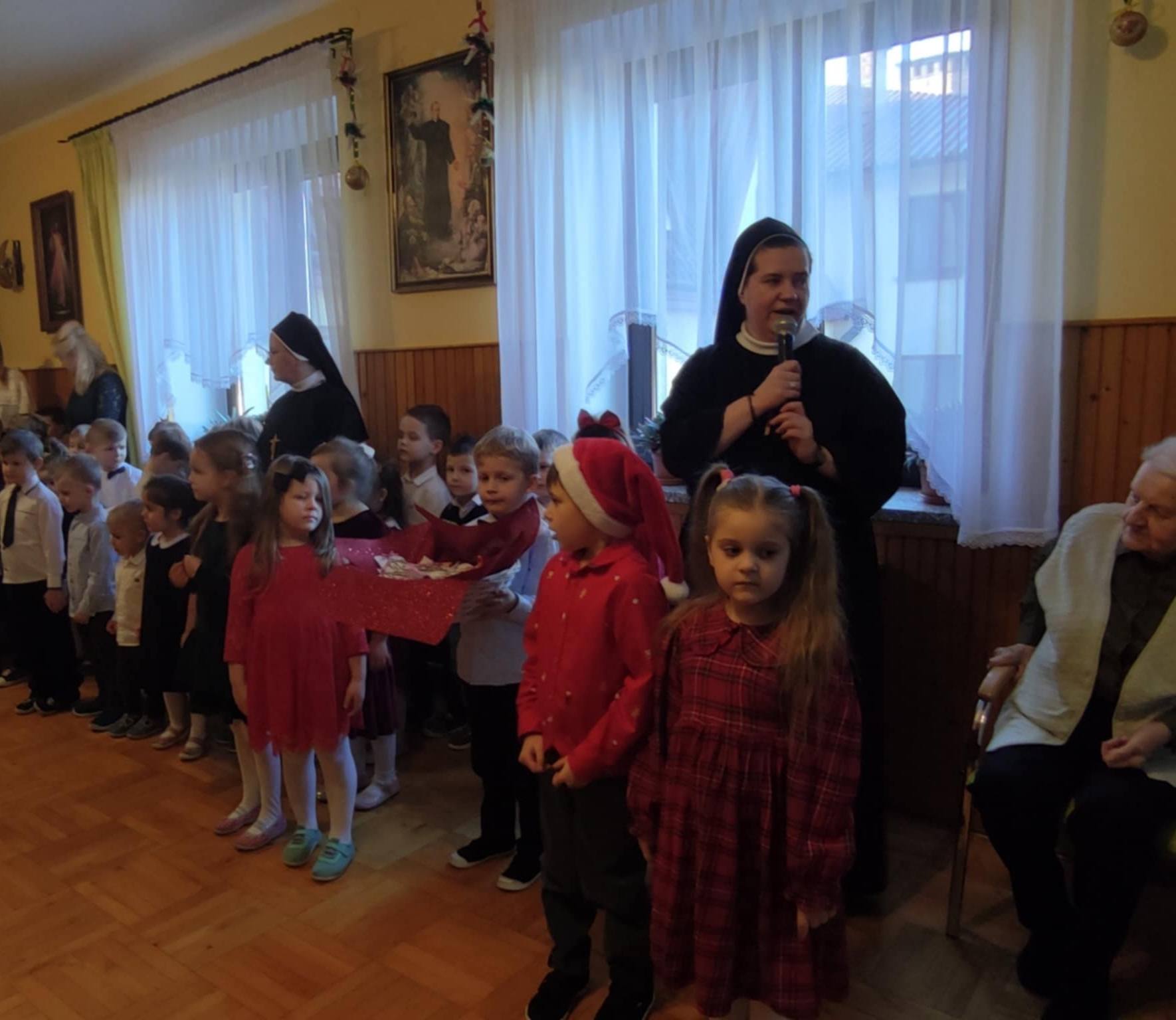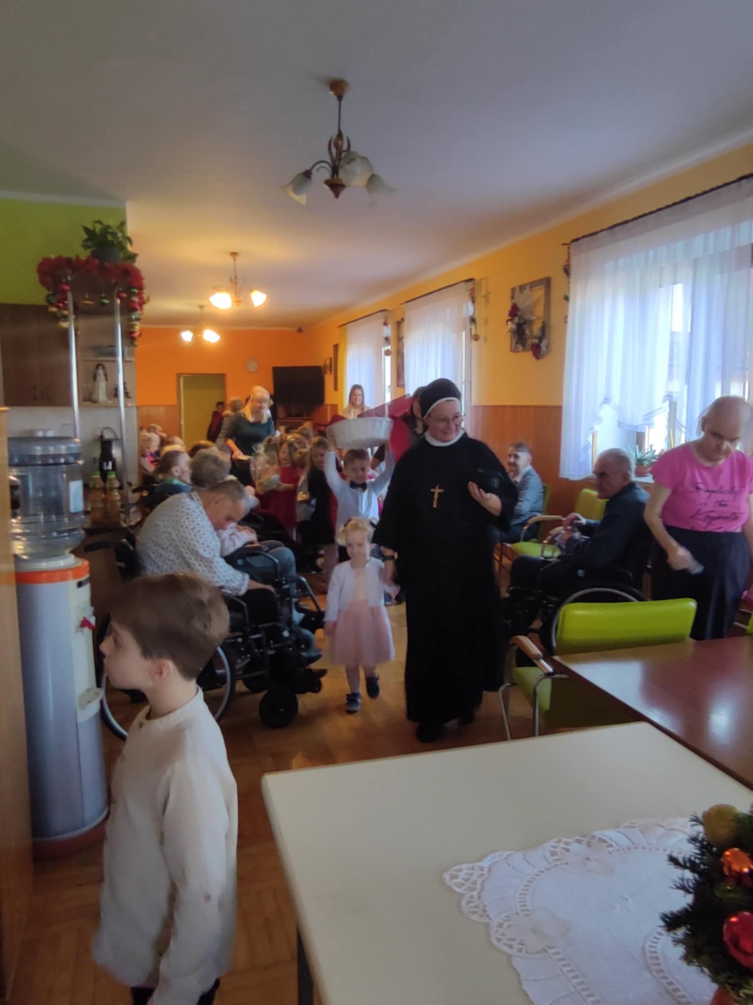 W przedświątecznym czasie dzieci z Przedszkola Niepublicznego Zgromadzenia Sióstr Świętego Józefa w Tuchowie wraz z dyrektor – S Joela Magdalena Cisek, swoimi wychowawcami i pracownikami Przedszkola odwiedziły mieszkańców DPJ, aby wspólnie przeżyć radosne chwile związane ze zbliżającymi się Świętami Bożego Narodzenia.