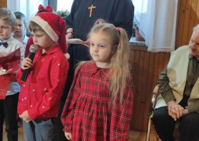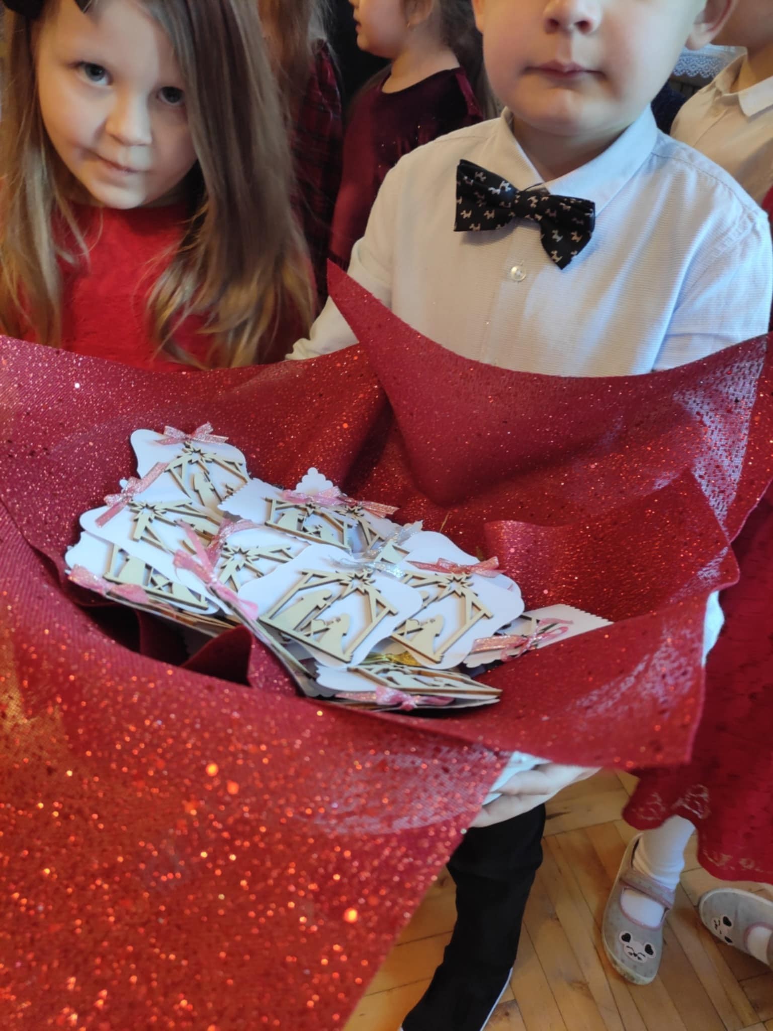 Dzieci z wielkim zaangażowaniem składały świąteczne życzenia, śpiewały kolędy i pastorałki, wprowadzając wszystkich w wyjątkowy, świąteczny nastrój.