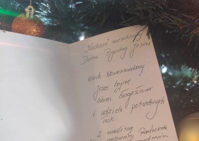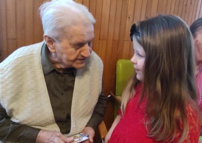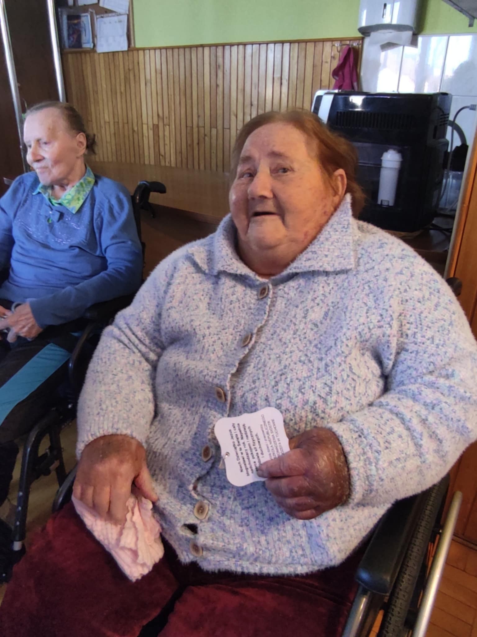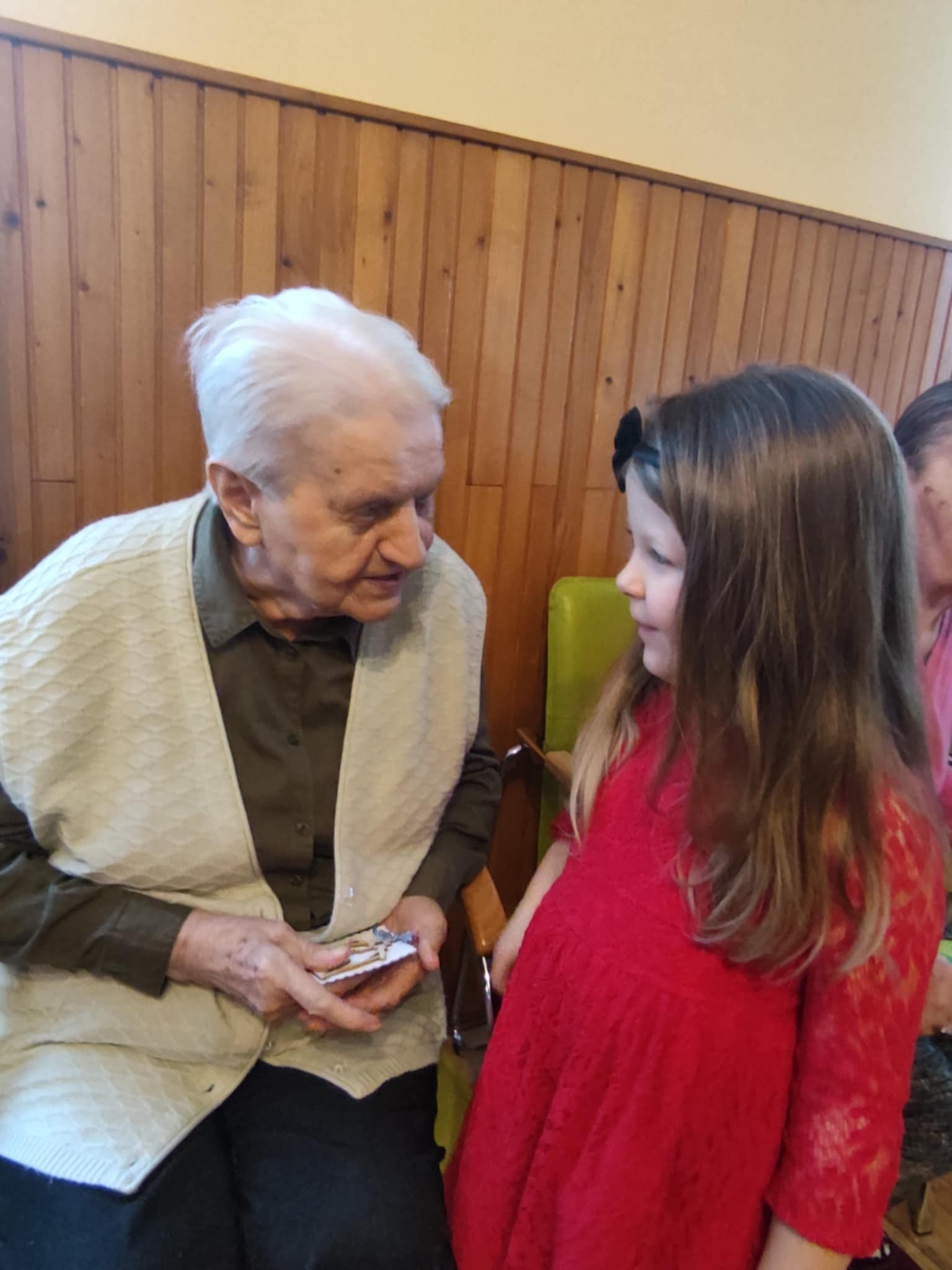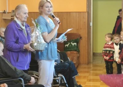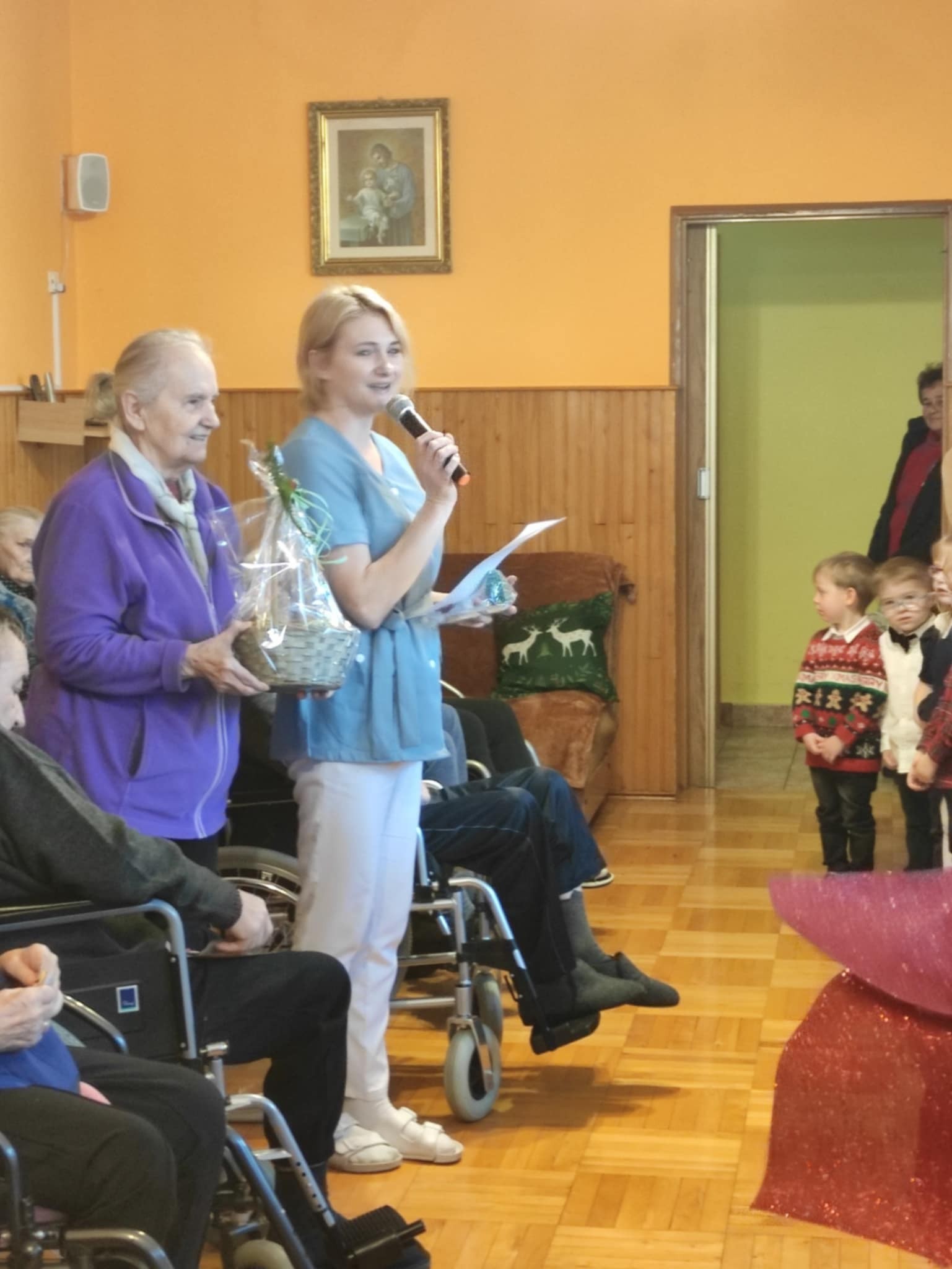 Nie zabrakło także pięknie recytowanych wierszyków oraz własnoręcznie przygotowanych karteczek, które mali goście wręczyli mieszkańcom.