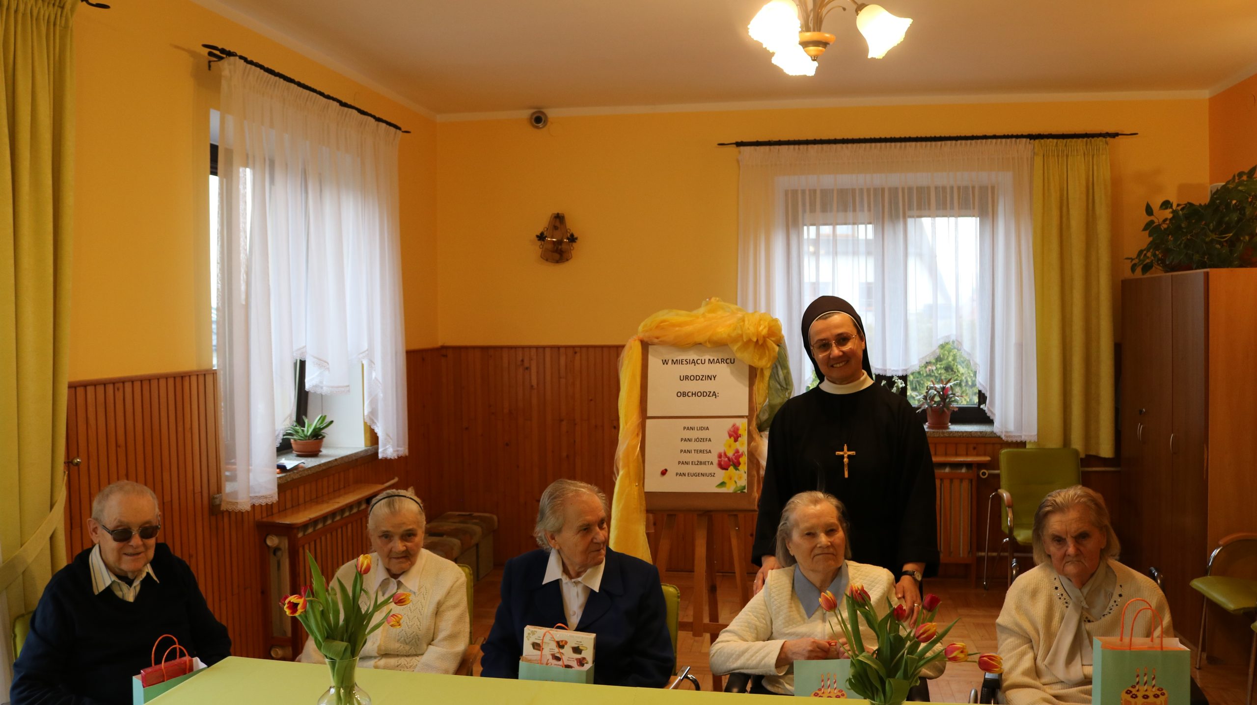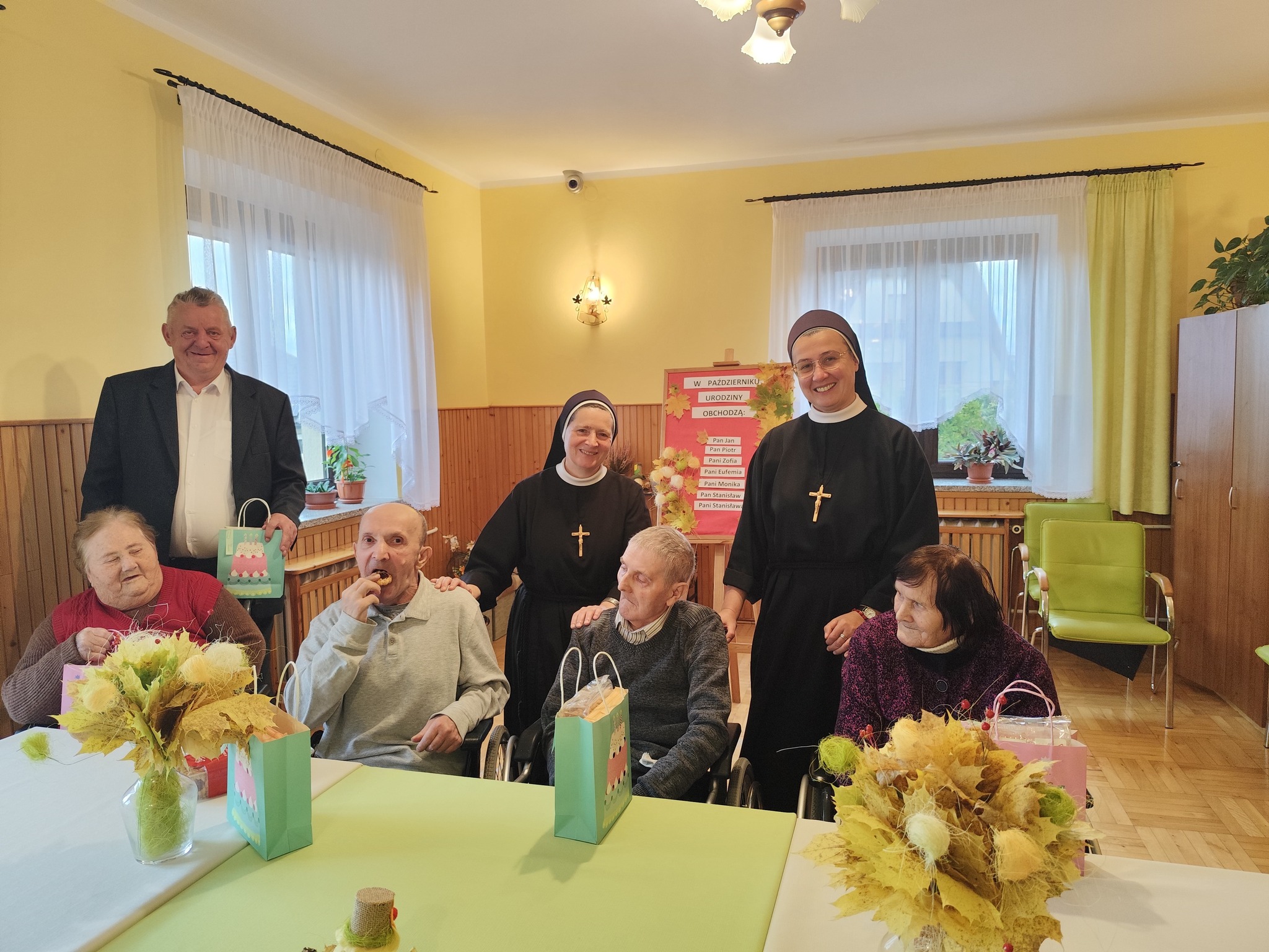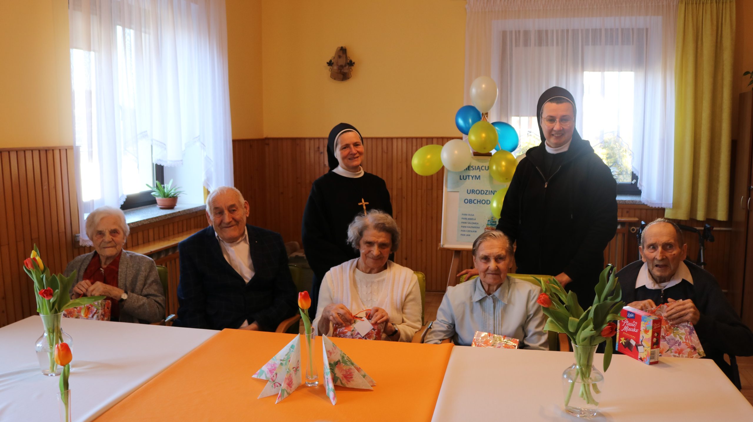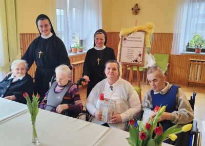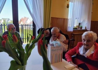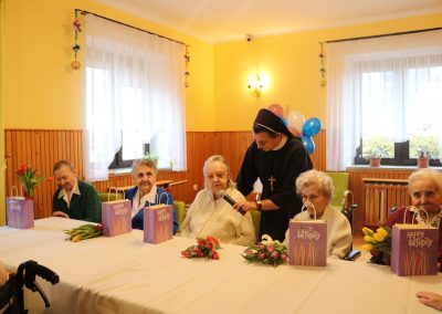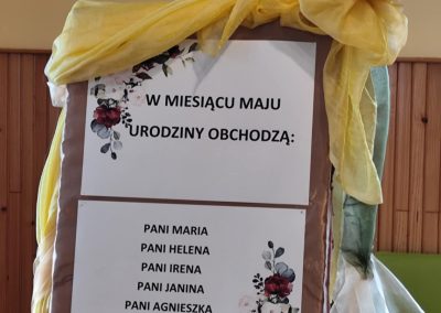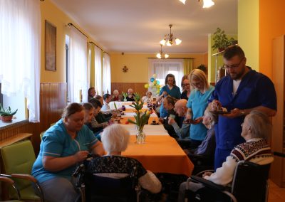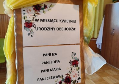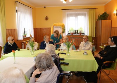 Przez cały rok, każdego miesiąca, w naszym Domu odbywały się tzw. Urodziny Miesiąca. Był to wyjątkowy czas, w którym Jubilaci z danego miesiąca świętowali swoje urodziny wspólnie ze wszystkimi mieszkańcami, a także z dyrektor DPJ – s. Bogusławą Katarzyną Podrazą oraz siostrą Alfonsą Grybel – pracownikiem socjalnym.