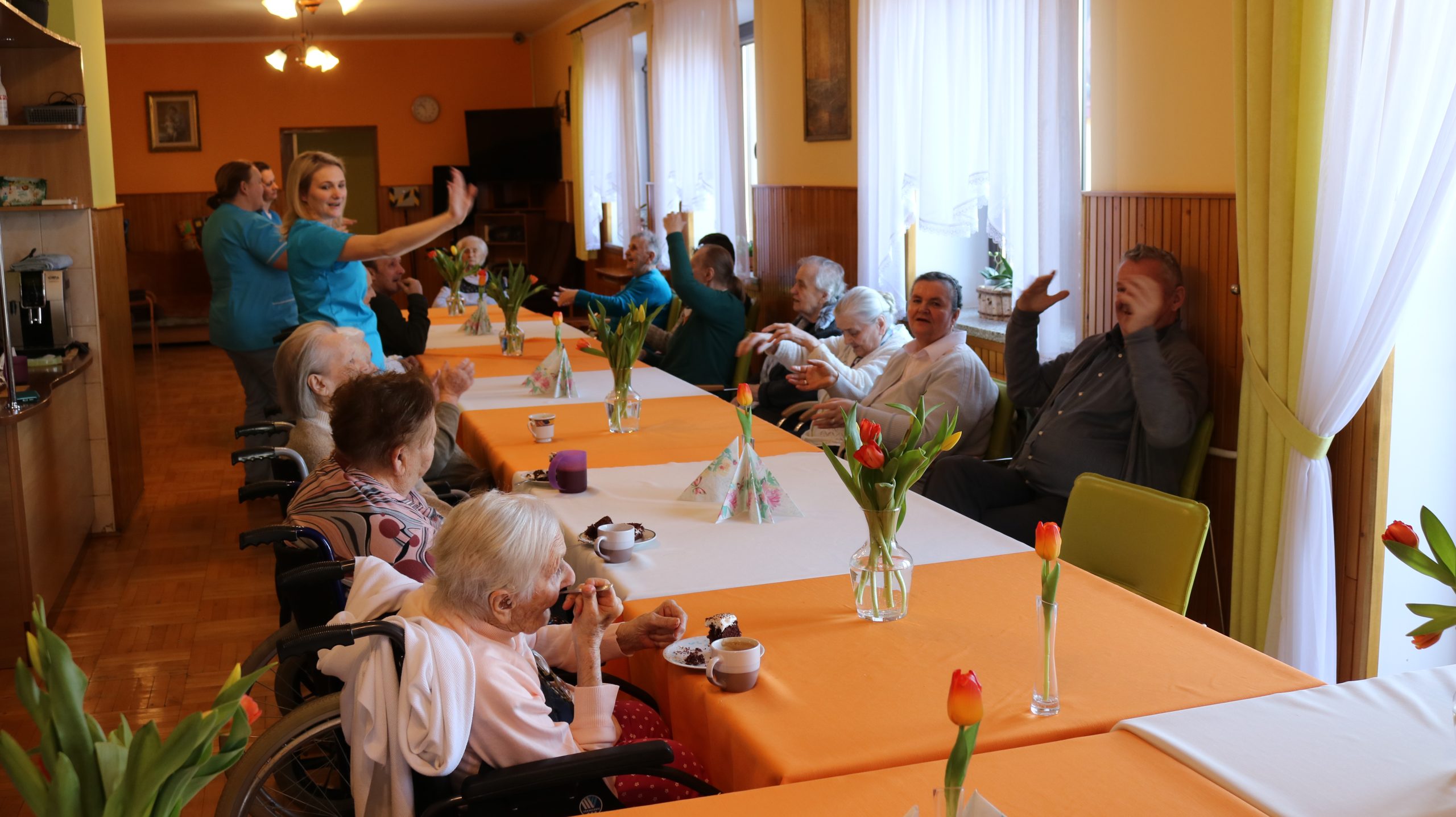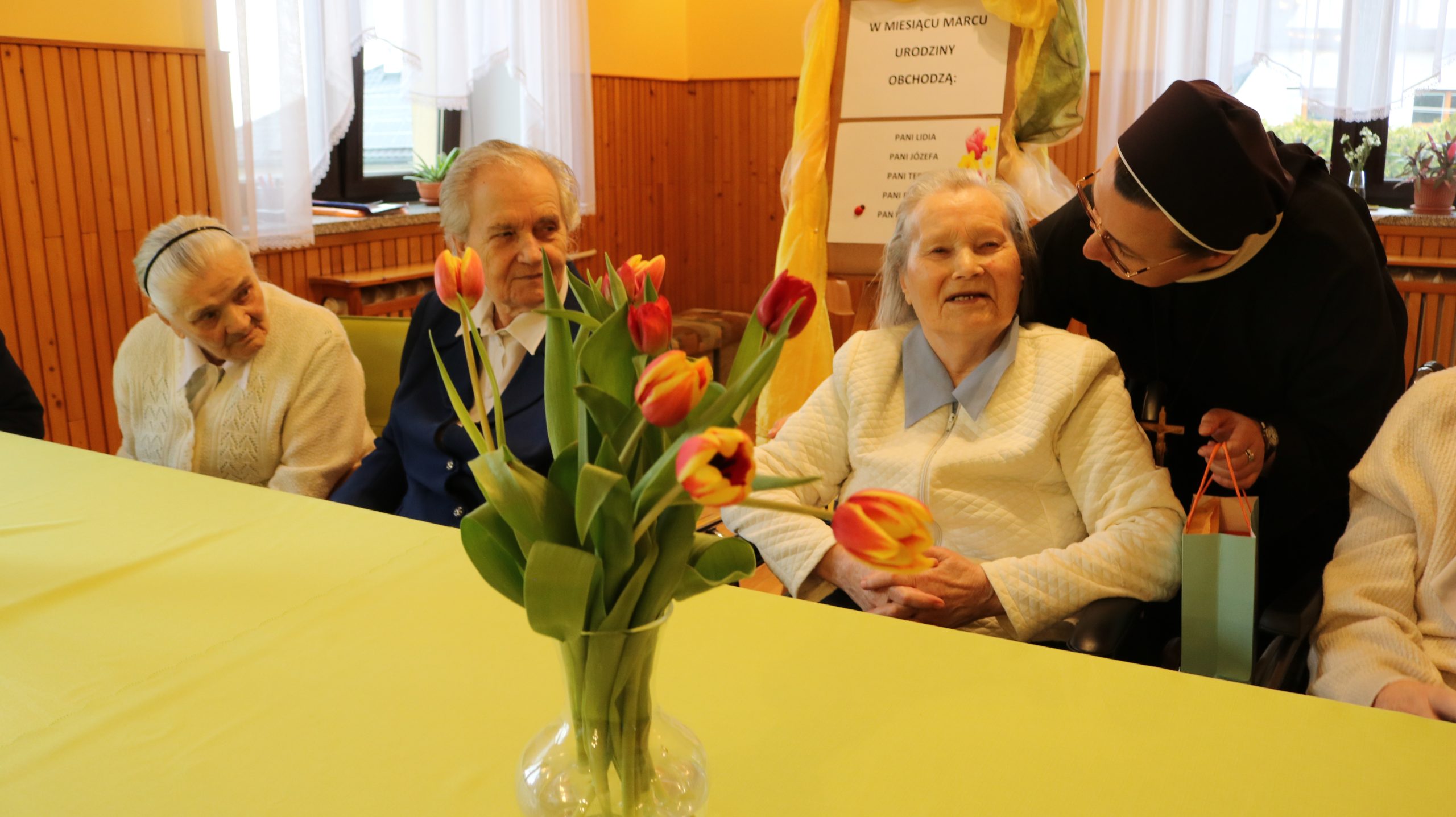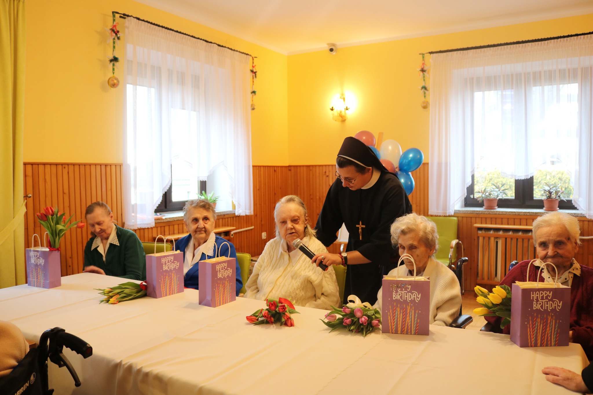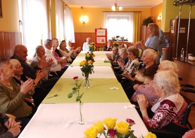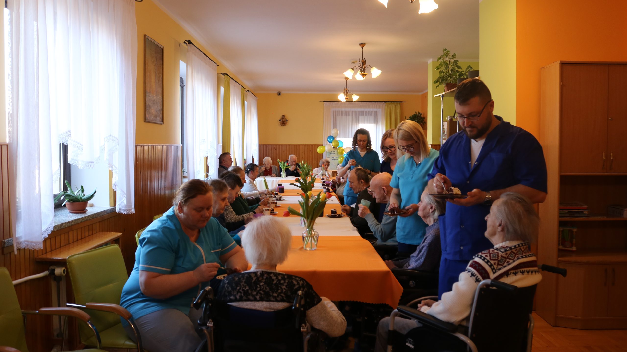 Przez cały rok, każdego miesiąca, w naszym Domu odbywały się tzw. Urodziny Miesiąca. Był to wyjątkowy czas, w którym Jubilaci z danego miesiąca świętowali swoje urodziny wspólnie ze wszystkimi mieszkańcami, a także z dyrektor DPJ – s. Bogusławą Katarzyną Podrazą oraz siostrą Alfonsą Grybel – pracownikiem socjalnym.