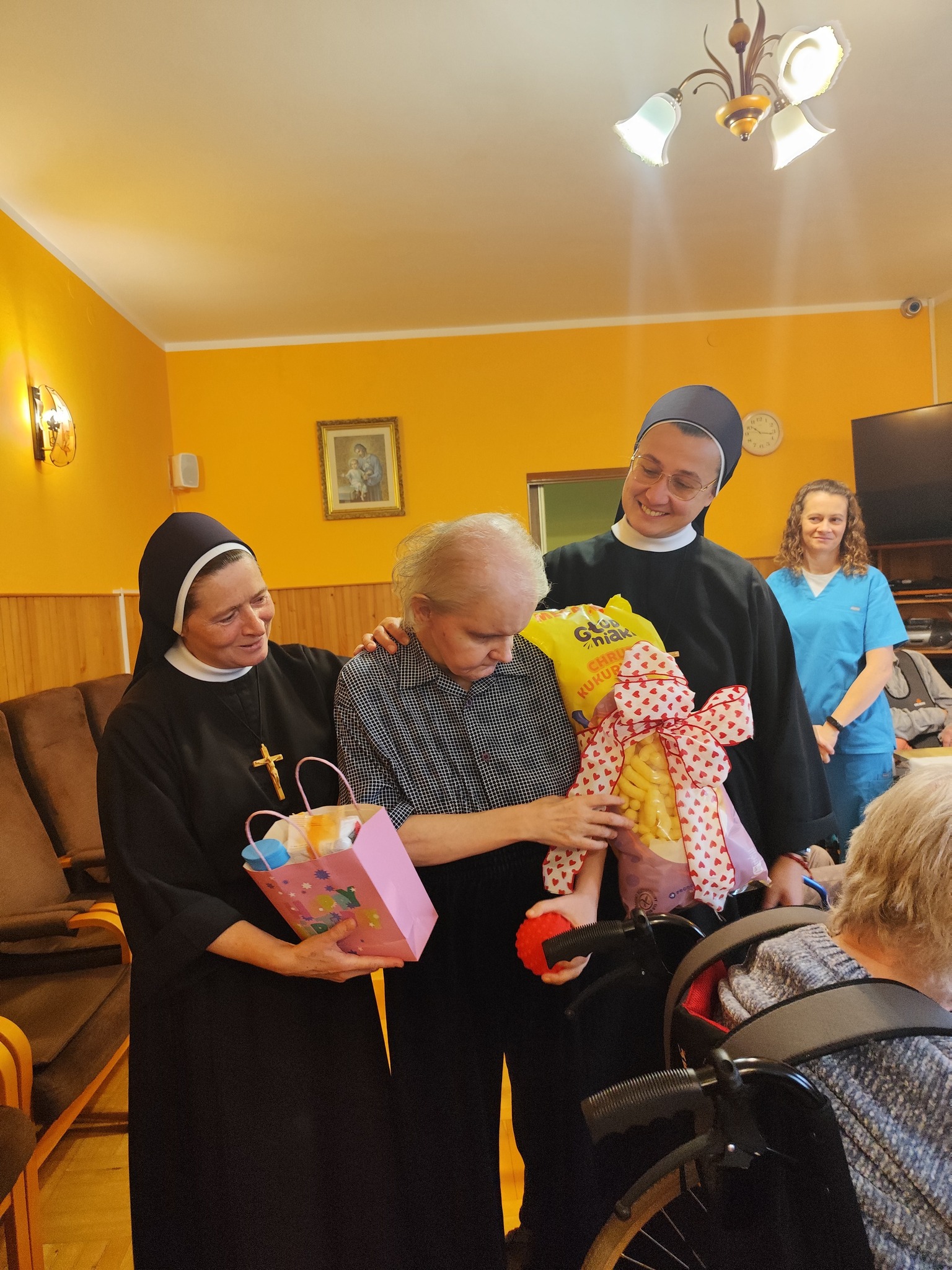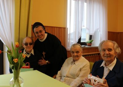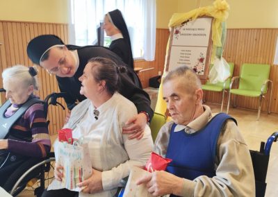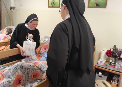 Osoby, które ze względu na stan zdrowia pozostawały w łóżkach w swoich pokojach, również nie były pomijane w tym wyjątkowym dniu. Siostry zawsze odwiedzały je osobiście, składając serdeczne życzenia oraz wręczając drobne upominki, aby każdy Jubilat mógł poczuć się zauważony i ważny.