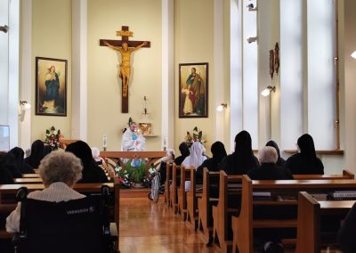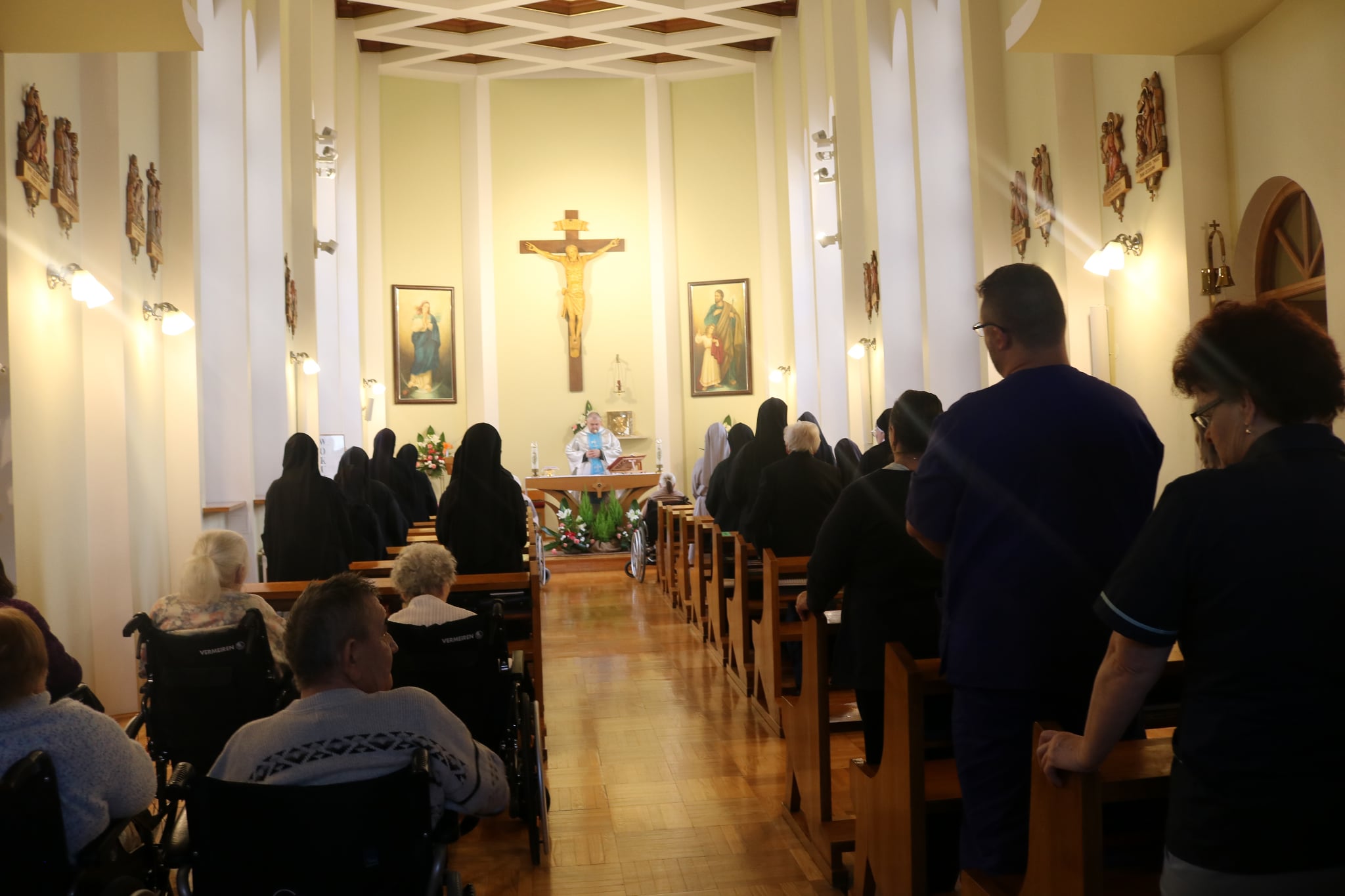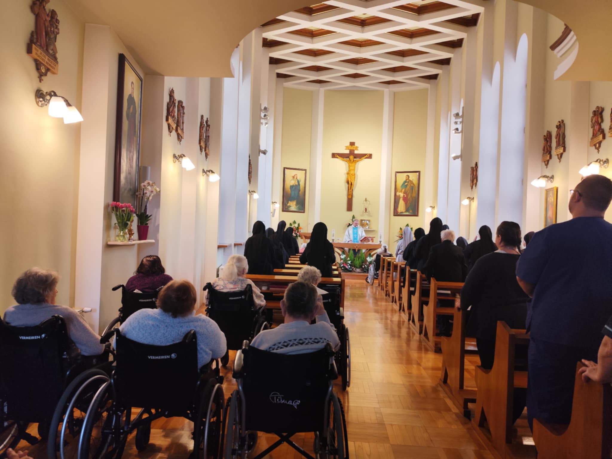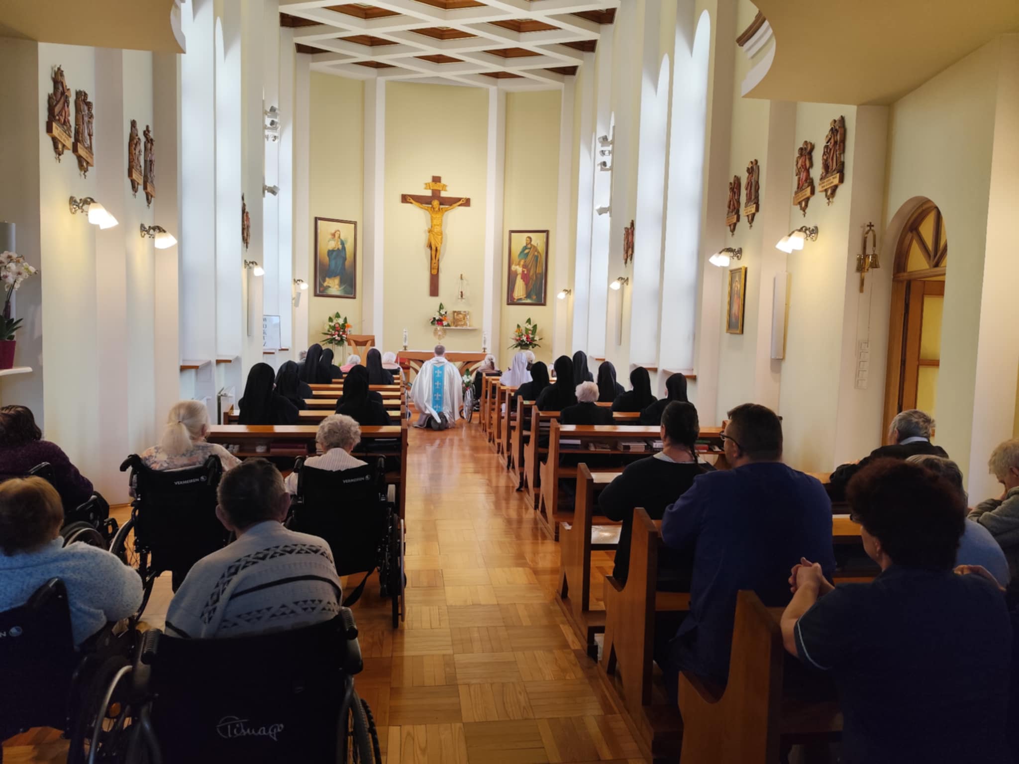 O godz. 10.30 odbyła się Msza Święta podczas której modlono się w intencji wszystkich mieszkańców Domu Pogodnej Jesieni. Liturgia miała szczególnie podniosły i pełen nadziei charakter. W homilii o. Ludwik Łabuda- kapelan DPJ podkreślił, że cierpienie, choć trudne i często niezrozumiałe, może stać się przestrzenią spotkania z Bogiem i drugim człowiekiem. Zwrócił uwagę na to, jak ważne jest wsparcie duchowe oraz zwykła ludzka obecność.