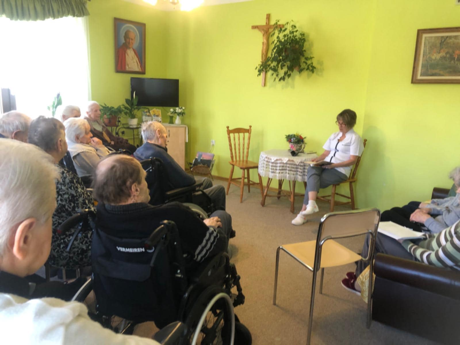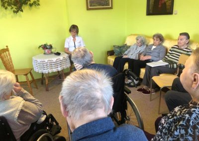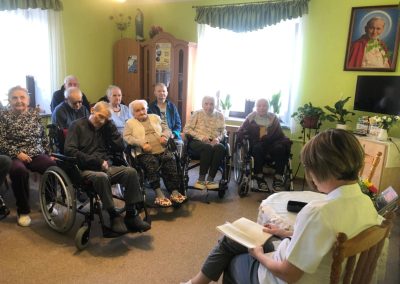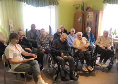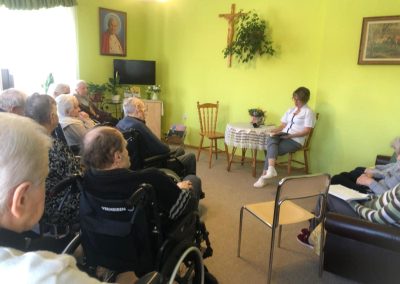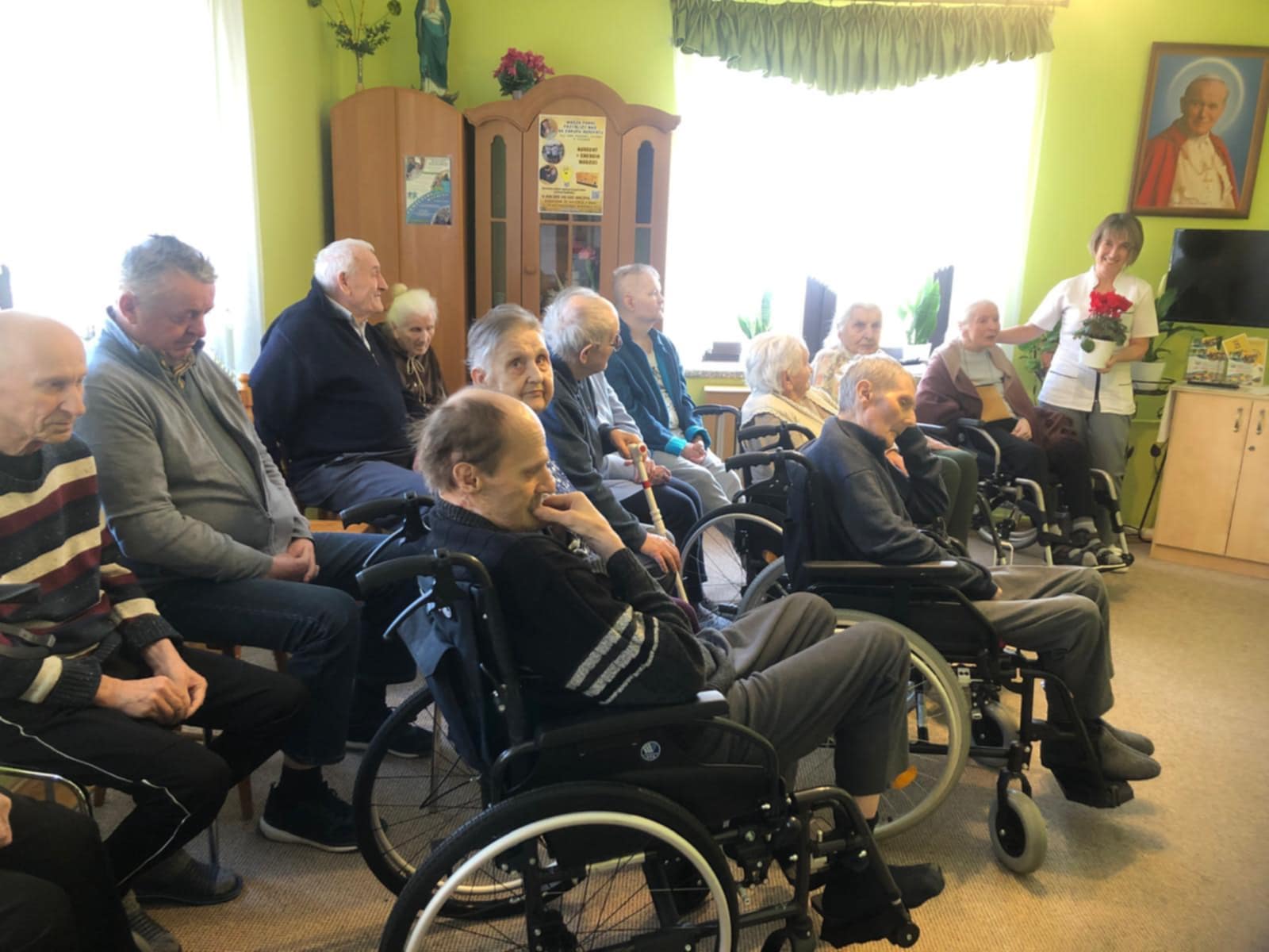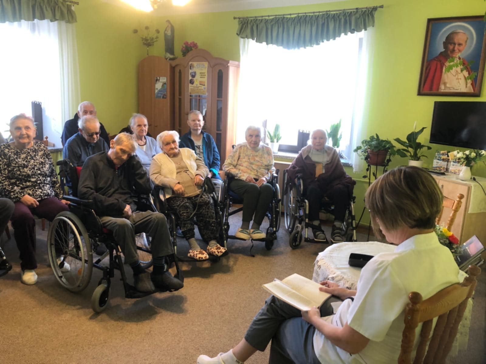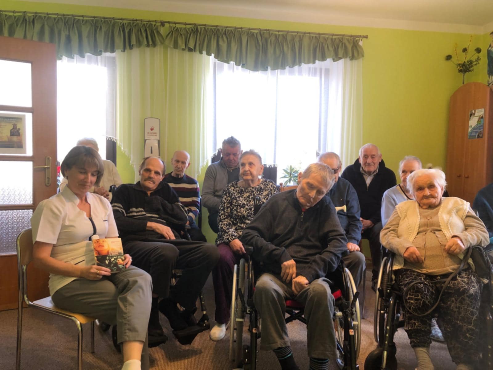 PokĂłj odwiedzin zamieniony w lutowe soboty na przytulnÄ czytelniÄ zgromadziĆ kilkunastu mieszkaĆcĂłw, ktĂłrzy z wdziÄcznoĆciÄ i sympatiÄ chcieli spotkaÄ siÄ z pielÄgniarkÄ oddziaĆowÄ , tym razemâŠbardziej towarzysko. PodejmujÄ c rozmowÄ skorzystali z okazji, by lepiej poznaÄ pielÄgniarkÄ darzonÄ wielkim zaufaniem, ktĂłra od lat troszczy siÄ o ich stan zdrowia, a takĆŒe dzieliÄ siÄ osobistym doĆwiadczeniem przeĆŒywania chorĂłb i ograniczeĆ . MotywacjÄ stanowiĆa lektura ksiÄ ĆŒki „âSkafander i motylâ Jeana-Dominique Bauby, ktĂłrej fragmenty czytaĆa Iwona Chwistek.