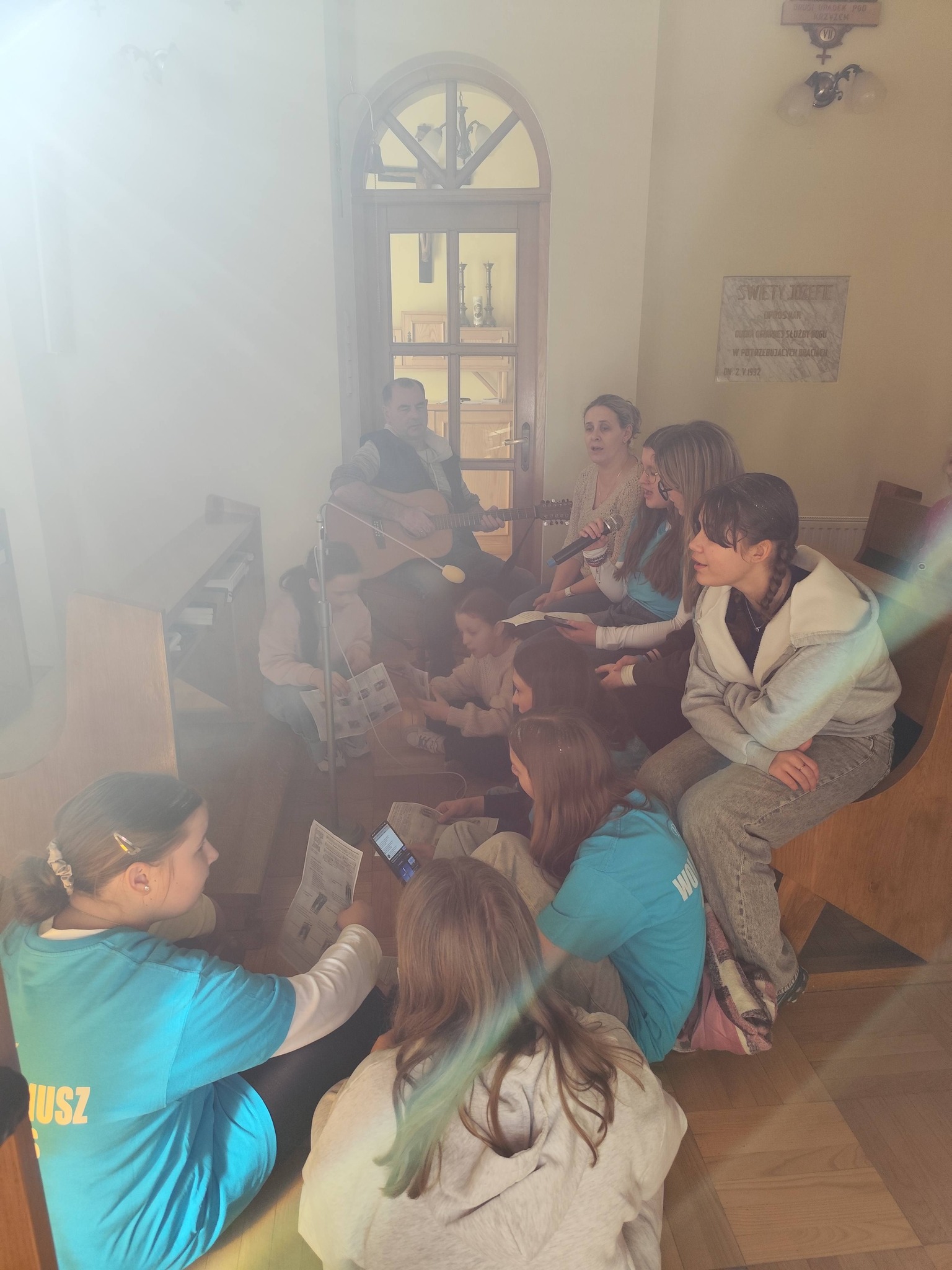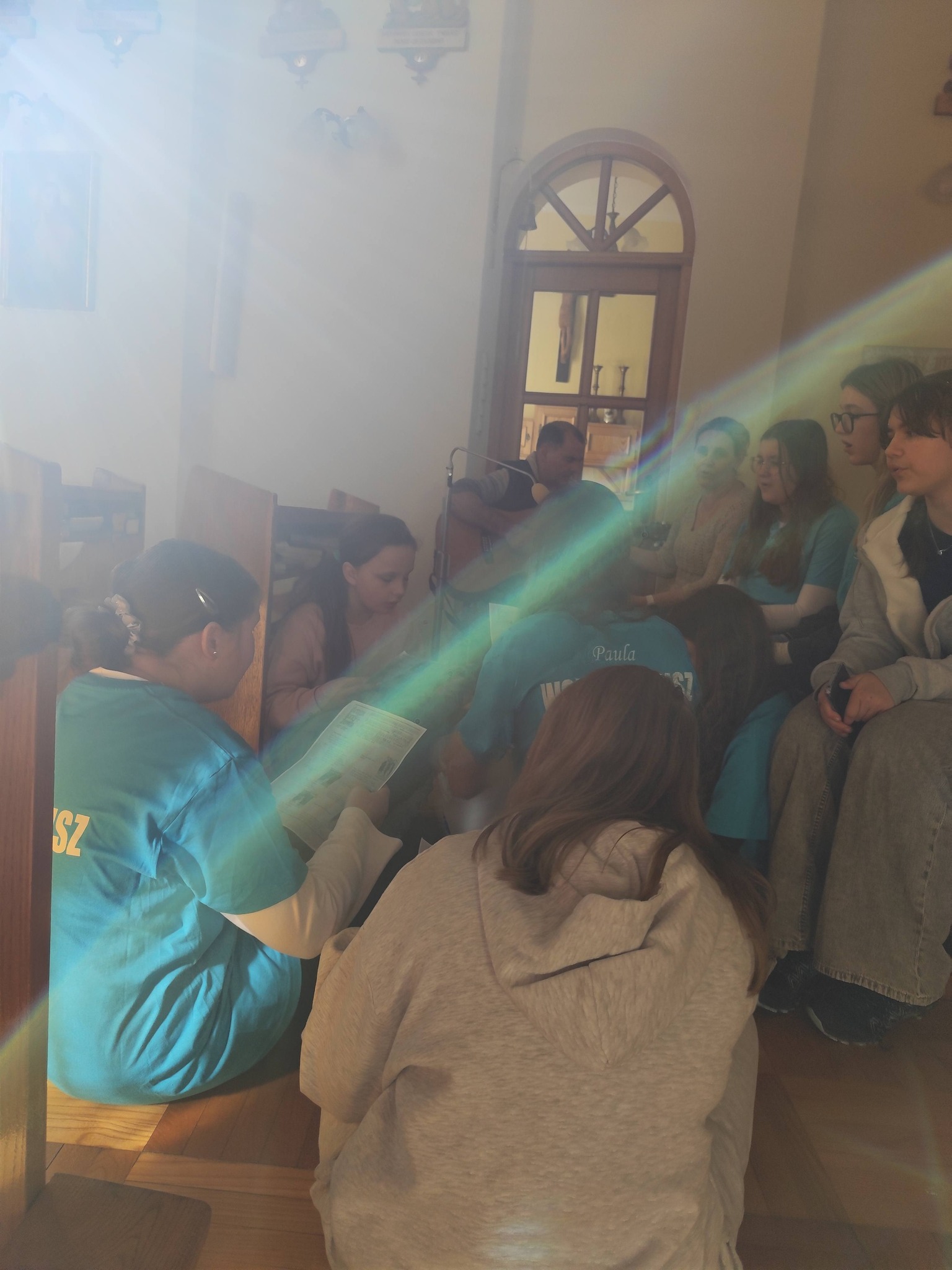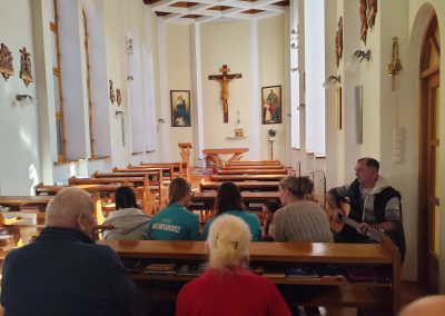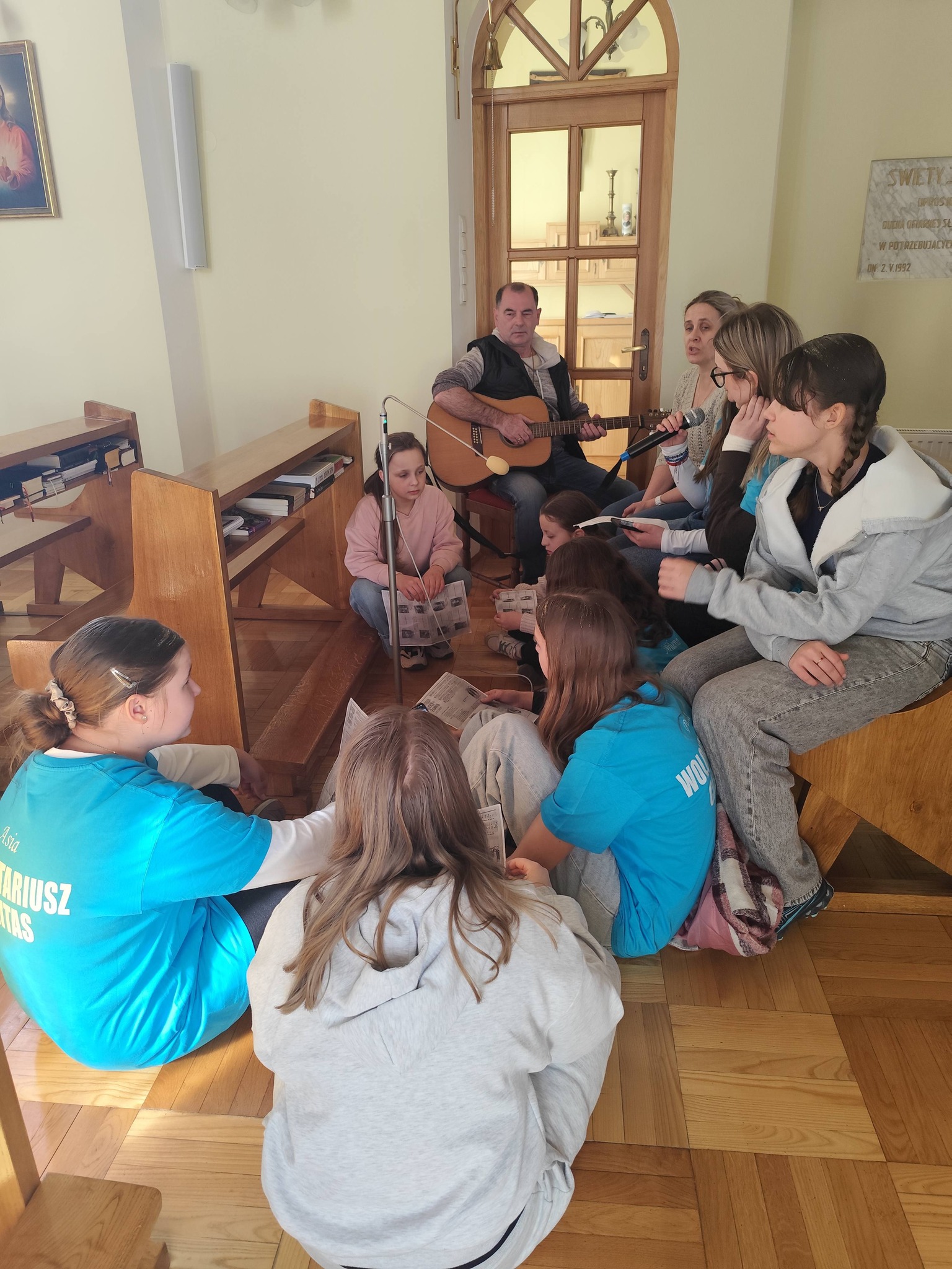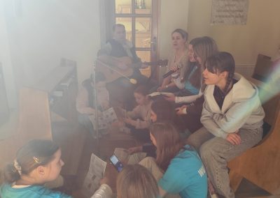 Nasi goście przygotowali piękną, śpiewaną Drogę Krzyżową, która poruszyła serca wszystkich obecnych. Pan Piotr akompaniował na gitarze, a wspólny śpiew stworzył niezwykłą, modlitewną atmosferę. Każda stacja była przeżywana bardzo uroczyście, a po niej rozbrzmiewał refren: