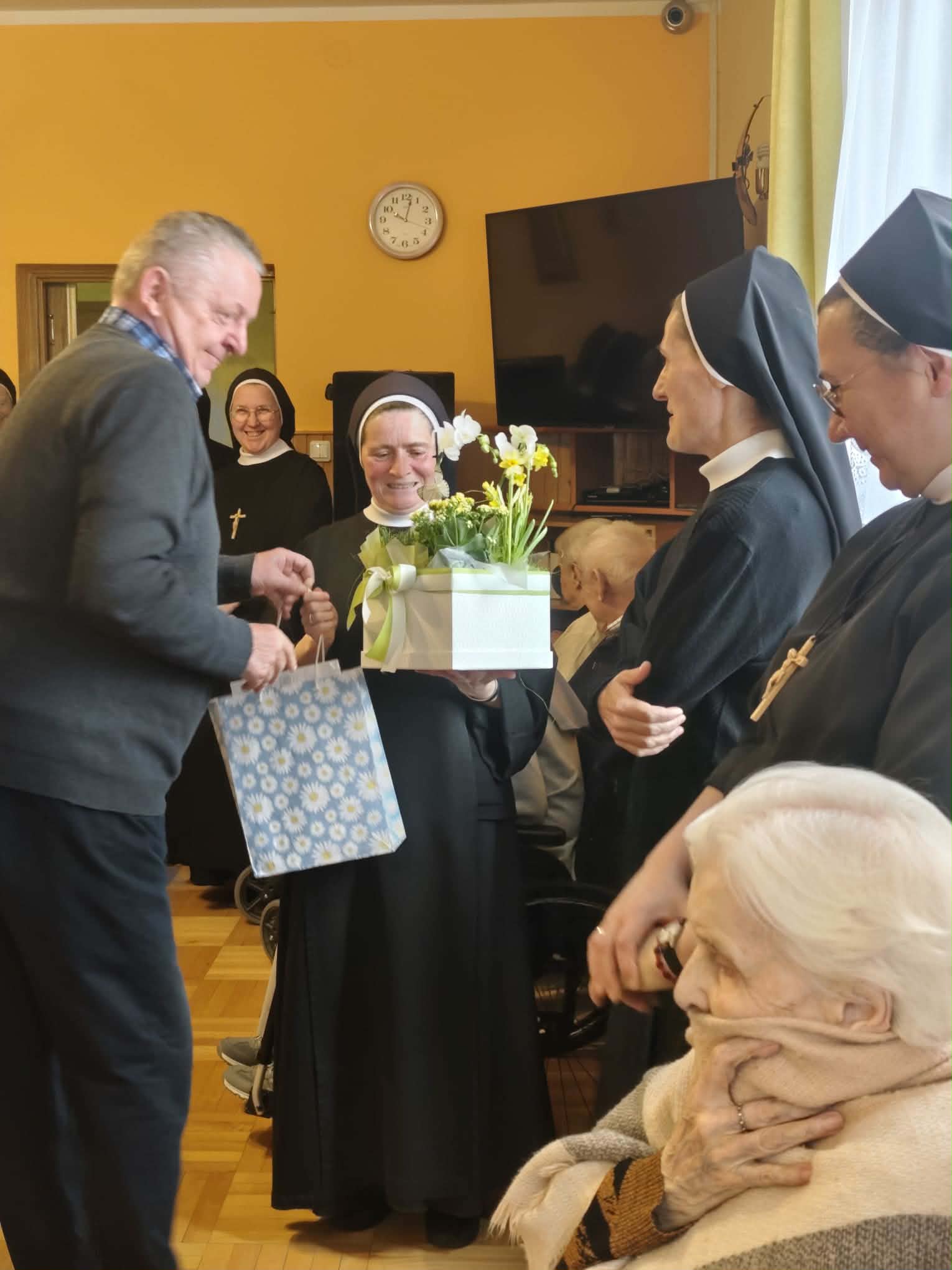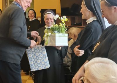 Z tej okazji w DPJ mieszkańcy oraz pracownicy złożyli serdeczne życzenia na ręce s. Alfonsy Grybel – przełożonej Tuchowskiego Zgromadzenia. Był to czas pełen wdzięczności za codzienną troskę, poświęcenie i obecność, która daje poczucie bezpieczeństwa i wsparcia. Składając życzenia, podkreślano, aby św. Józef – patron cichej, wytrwałej służby – nieustannie dodawał sił w codziennej pracy, umacniał w chwilach trudności oraz prowadził drogą dobra i miłości wobec drugiego człowieka.